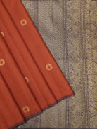The body is rust color with floral Kamalam Butta and the Palla is dense pure zaro Palla in Kanchana blue color and blouse