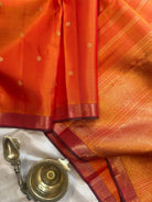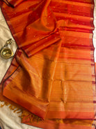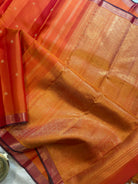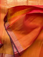 The body is orangish rust color with pink araimadam pet green slevedge and dense pure Zari Palla.