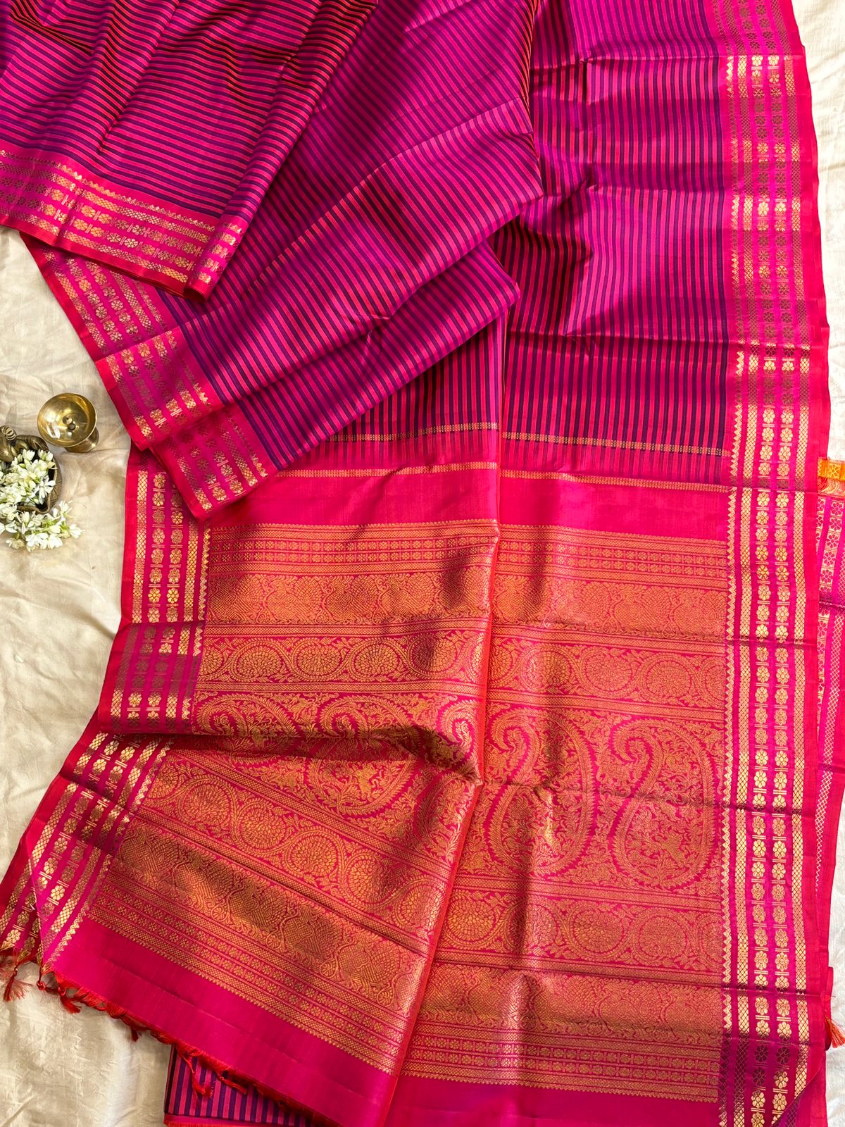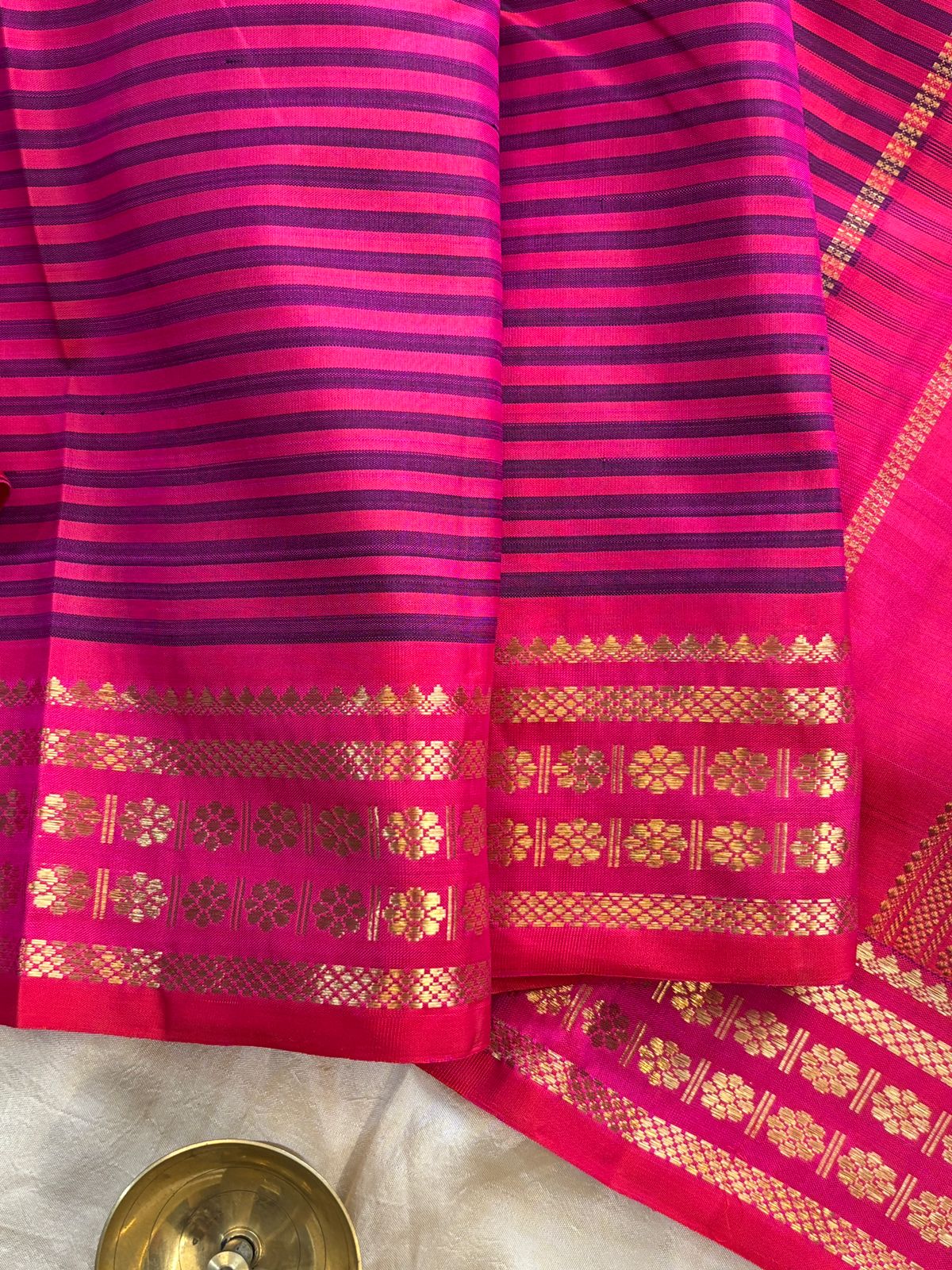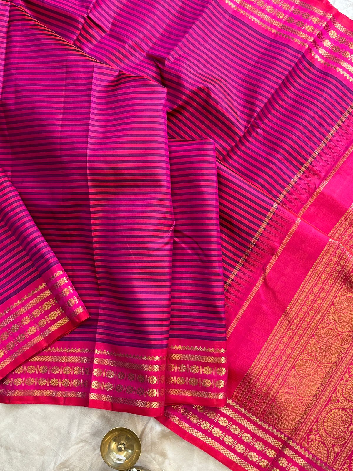 4g pure Zari Vintage pink and blue (valappu saavuku lines ) adai woven / kanjipuram silk