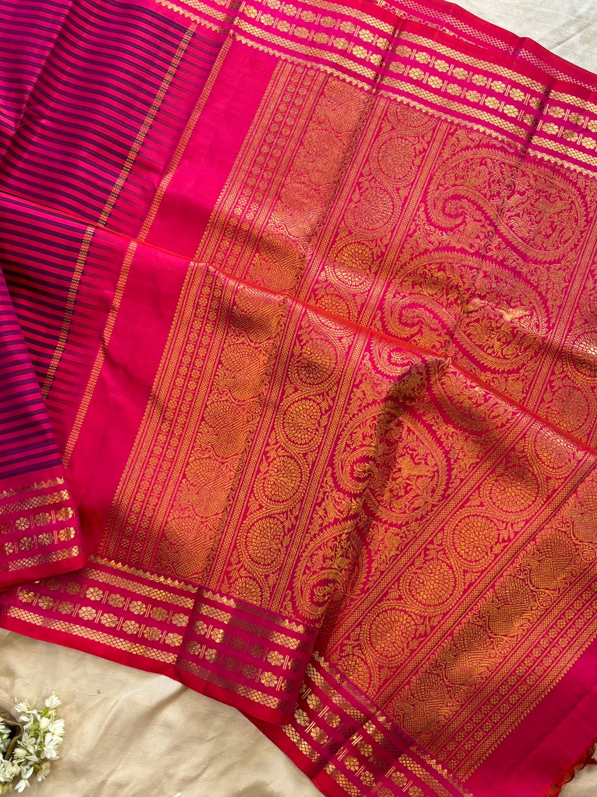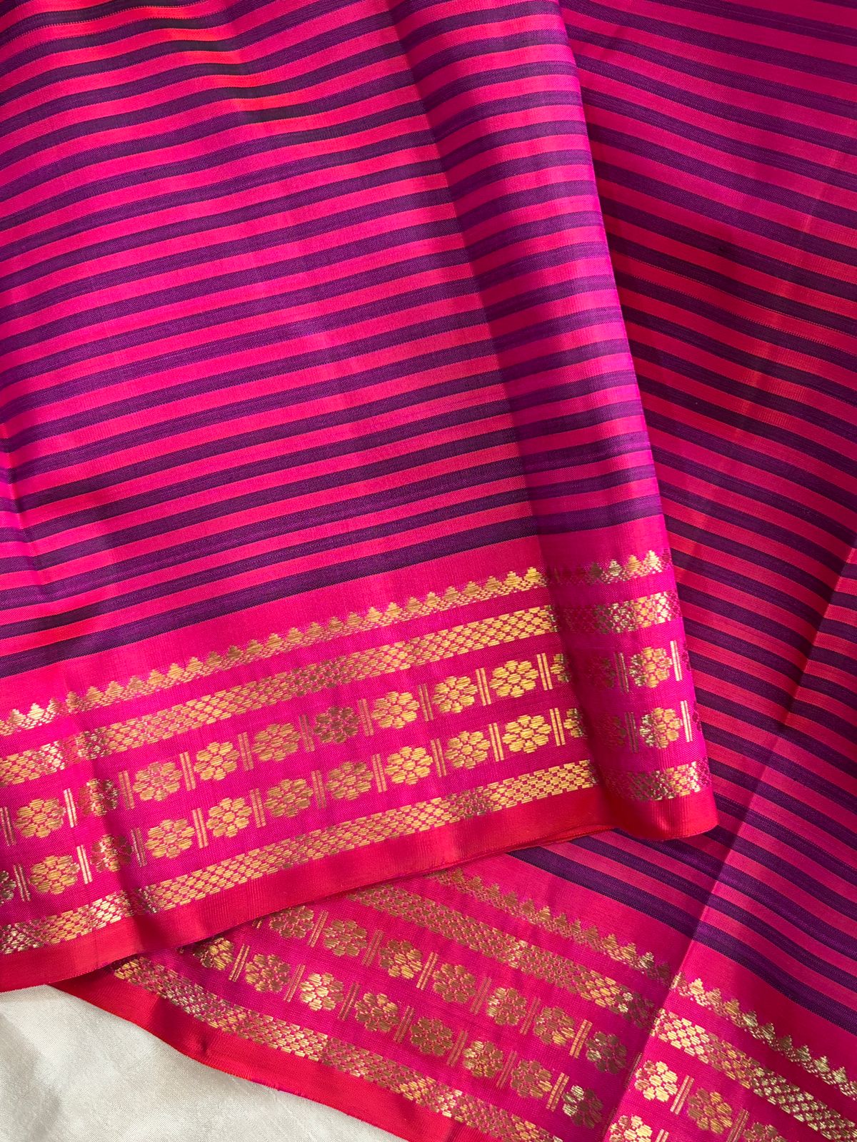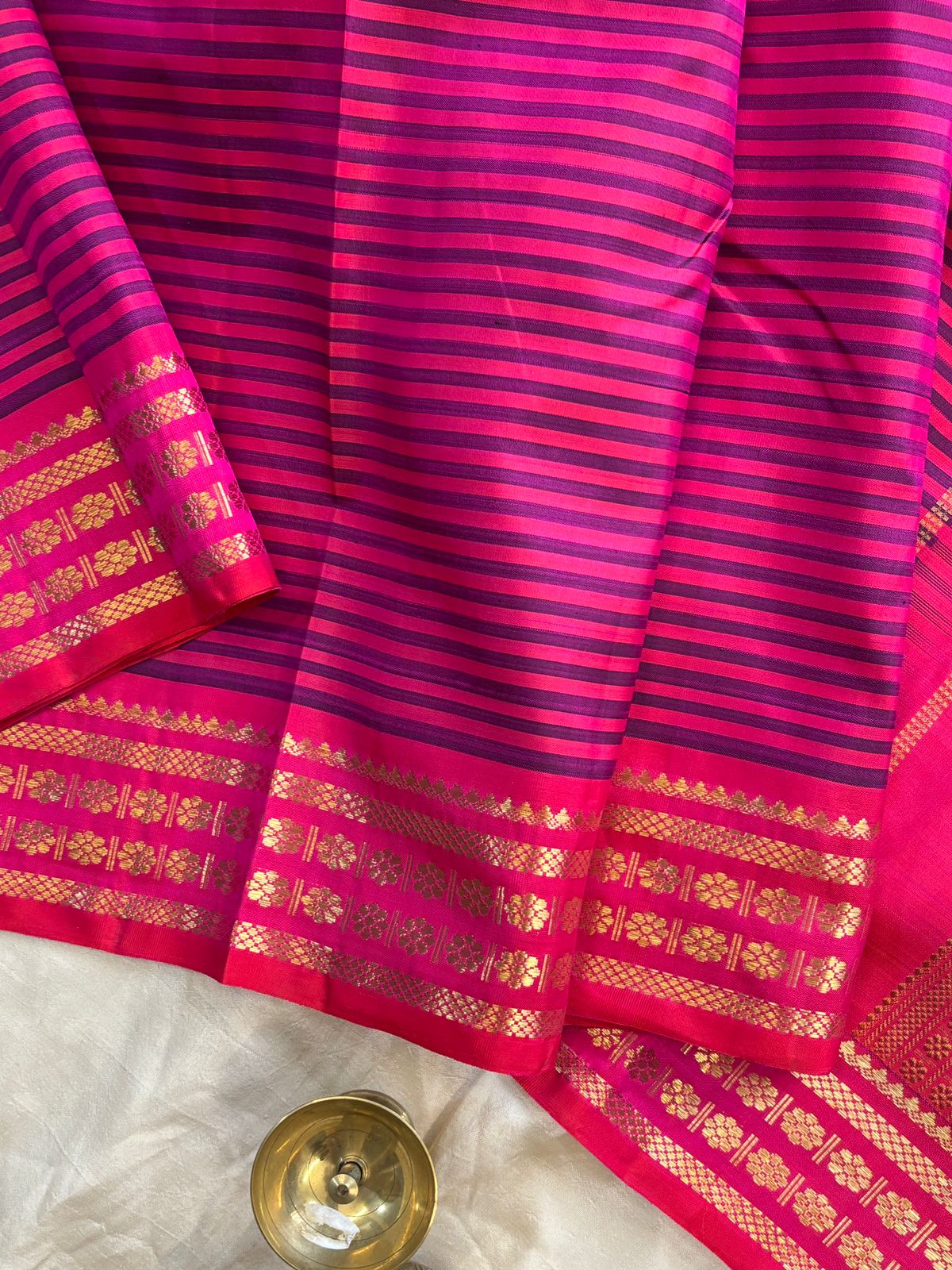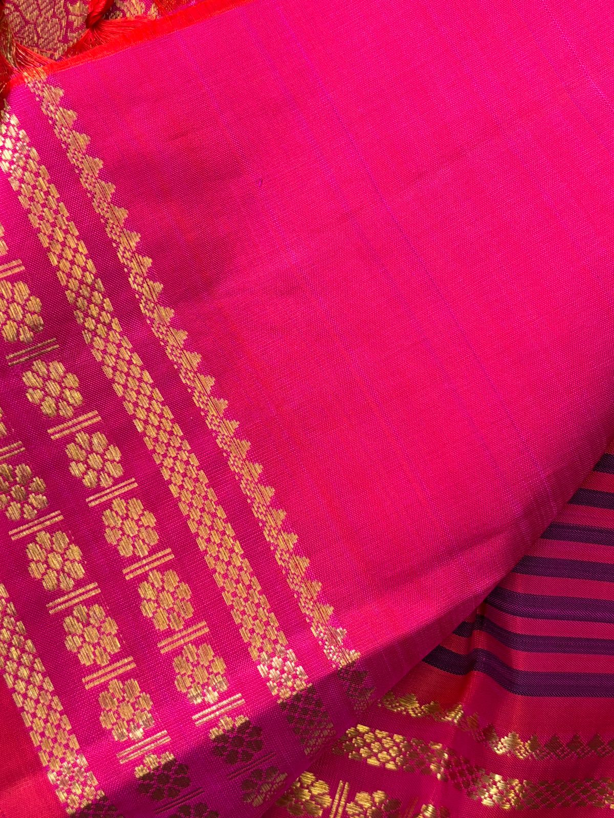 4g pure Zari Vintage pink and blue (valappu saavuku lines ) adai woven / kanjipuram silk
