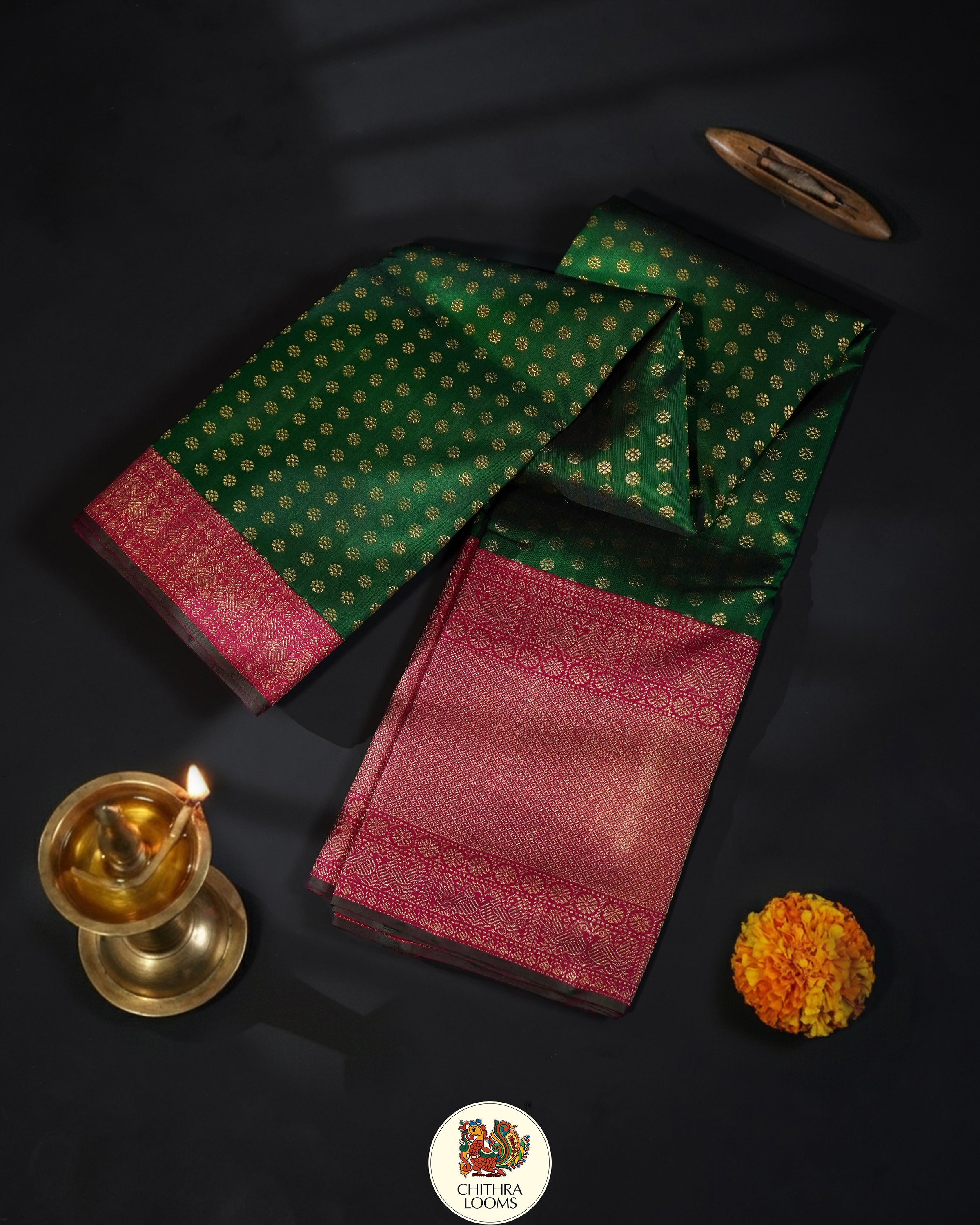 Alankar: Dark green and pink kanjipuram silk CLSA2120