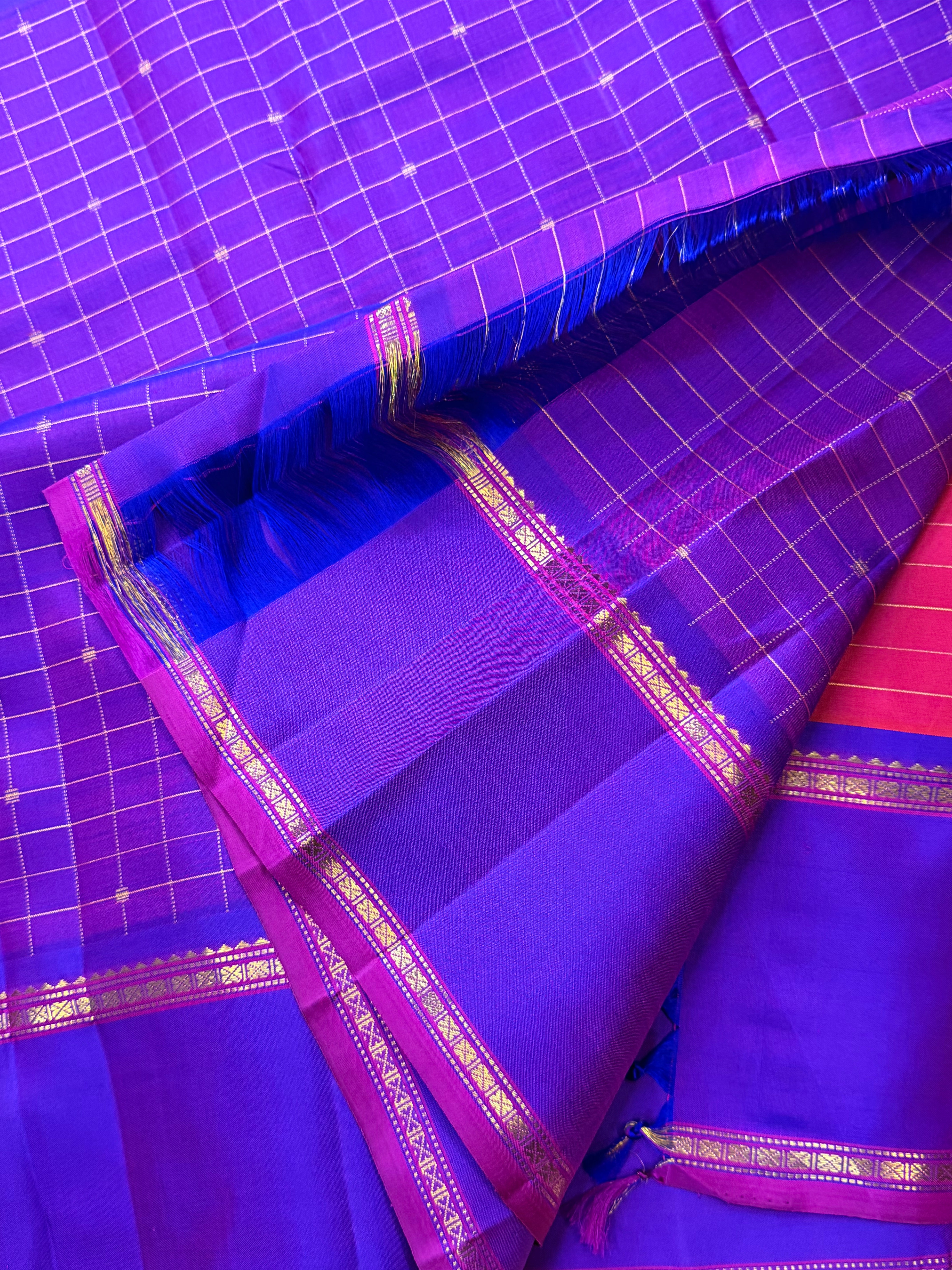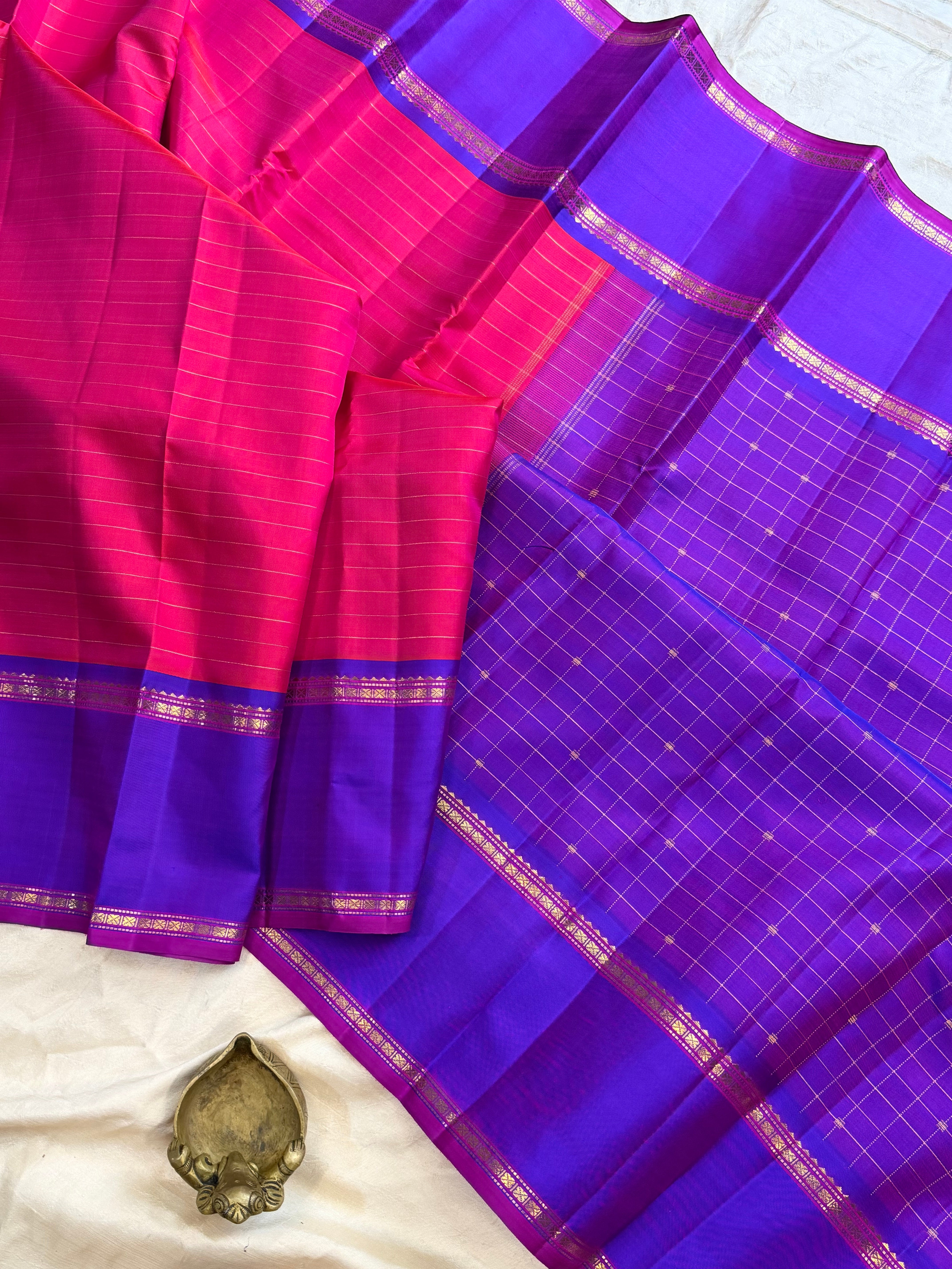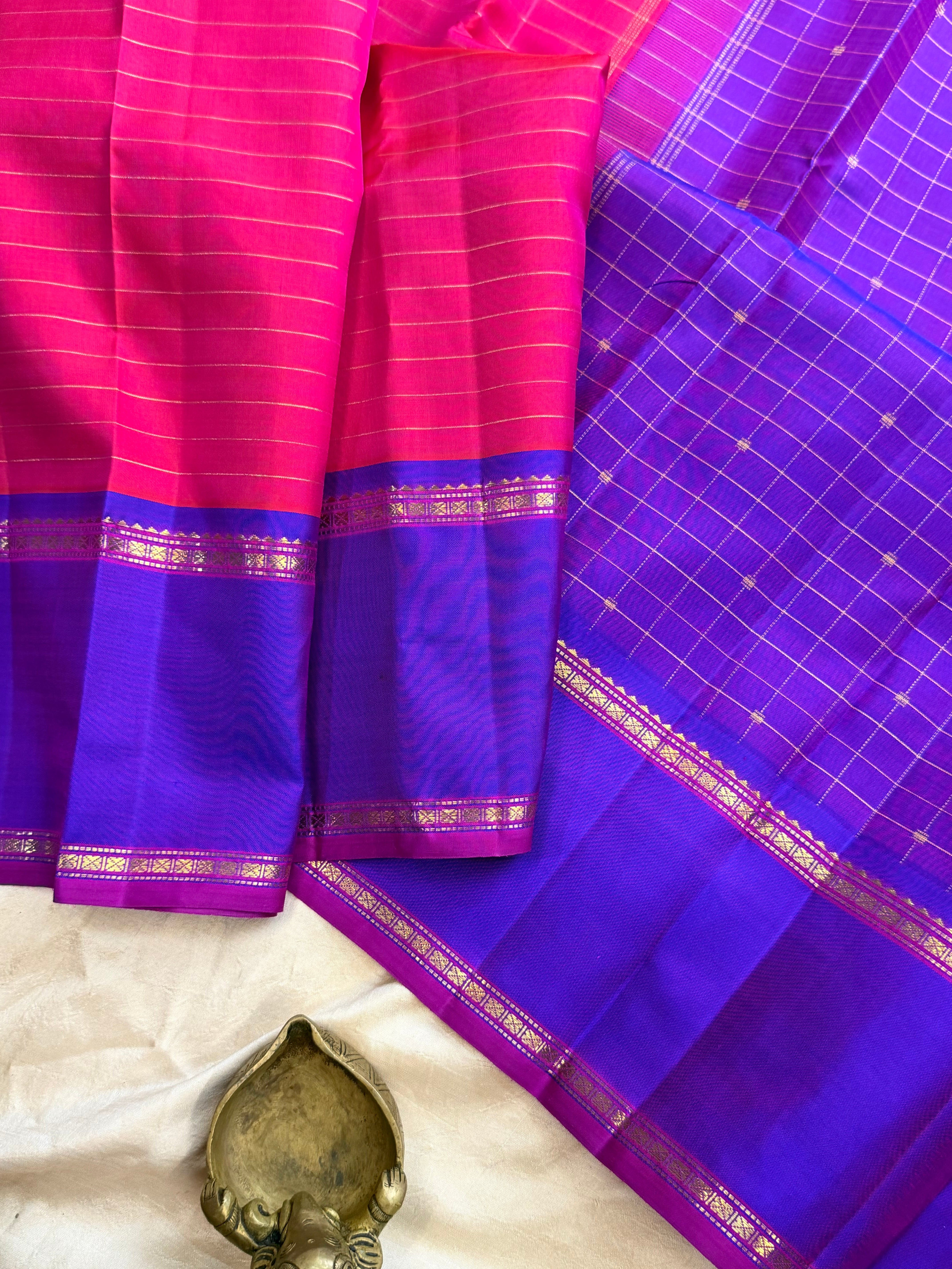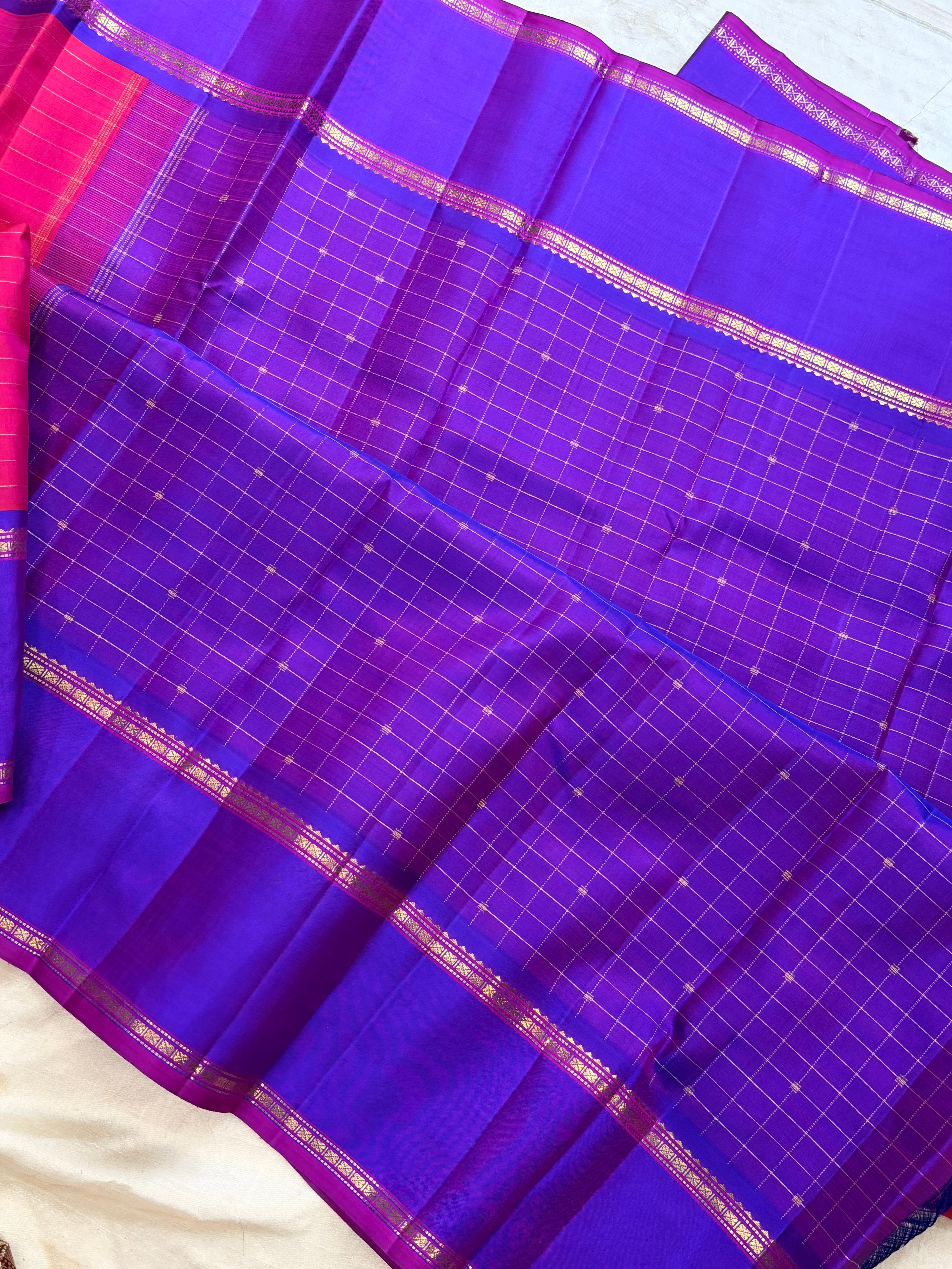 Fuschia pink with purple Zari Kattam Butta / Arani silk