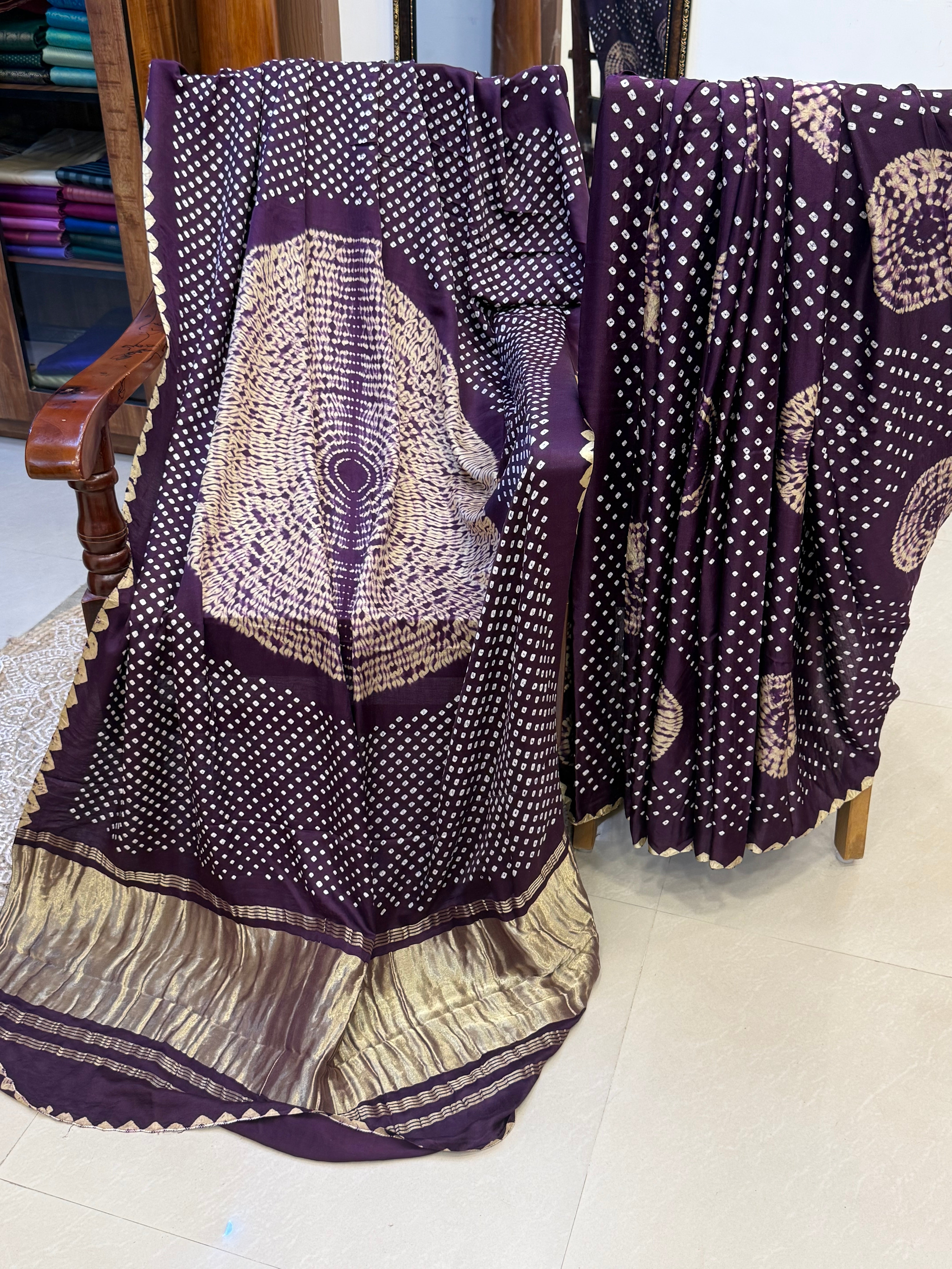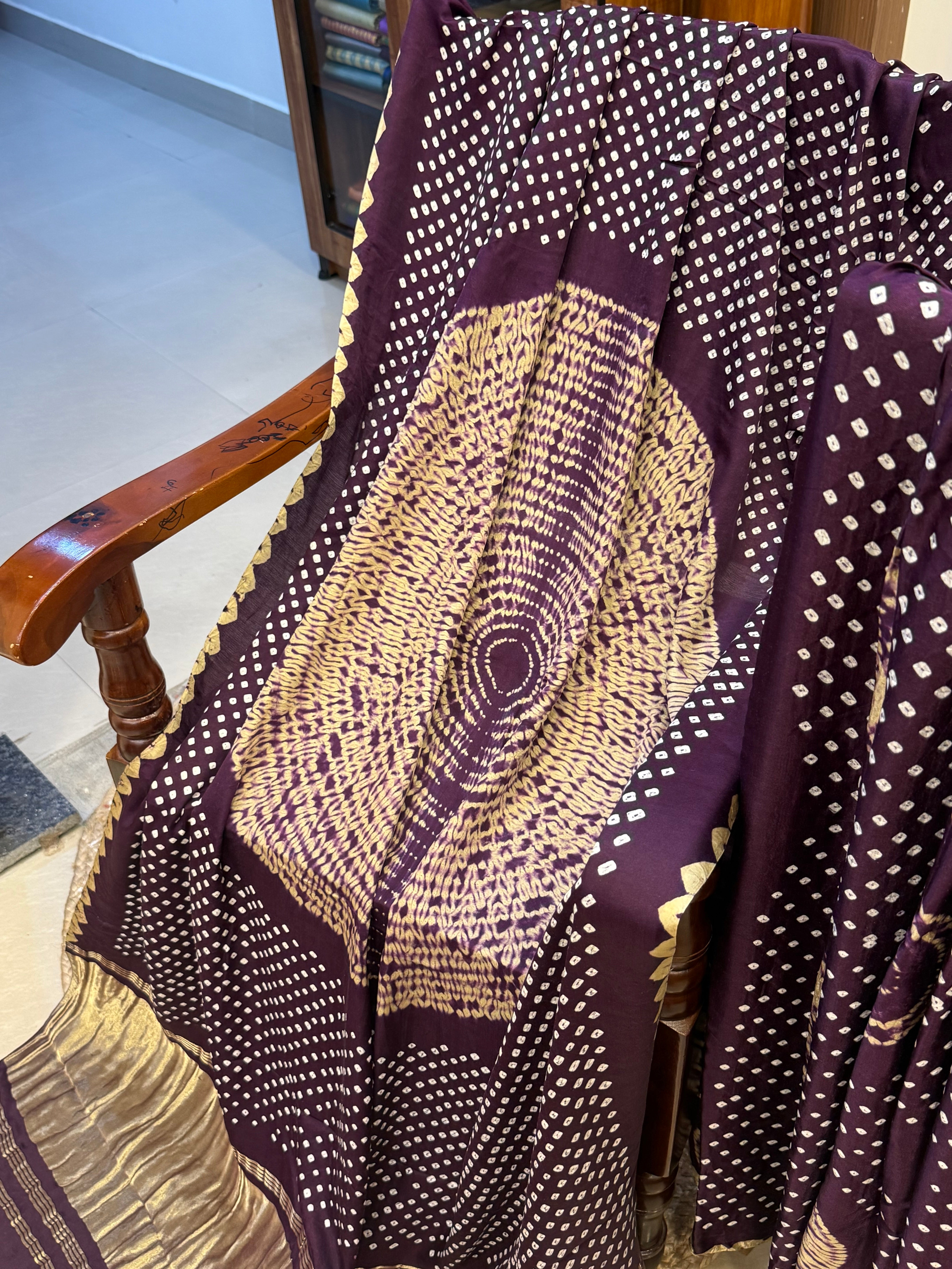 Deep purple and off white bandhini and Shibori gajji silk