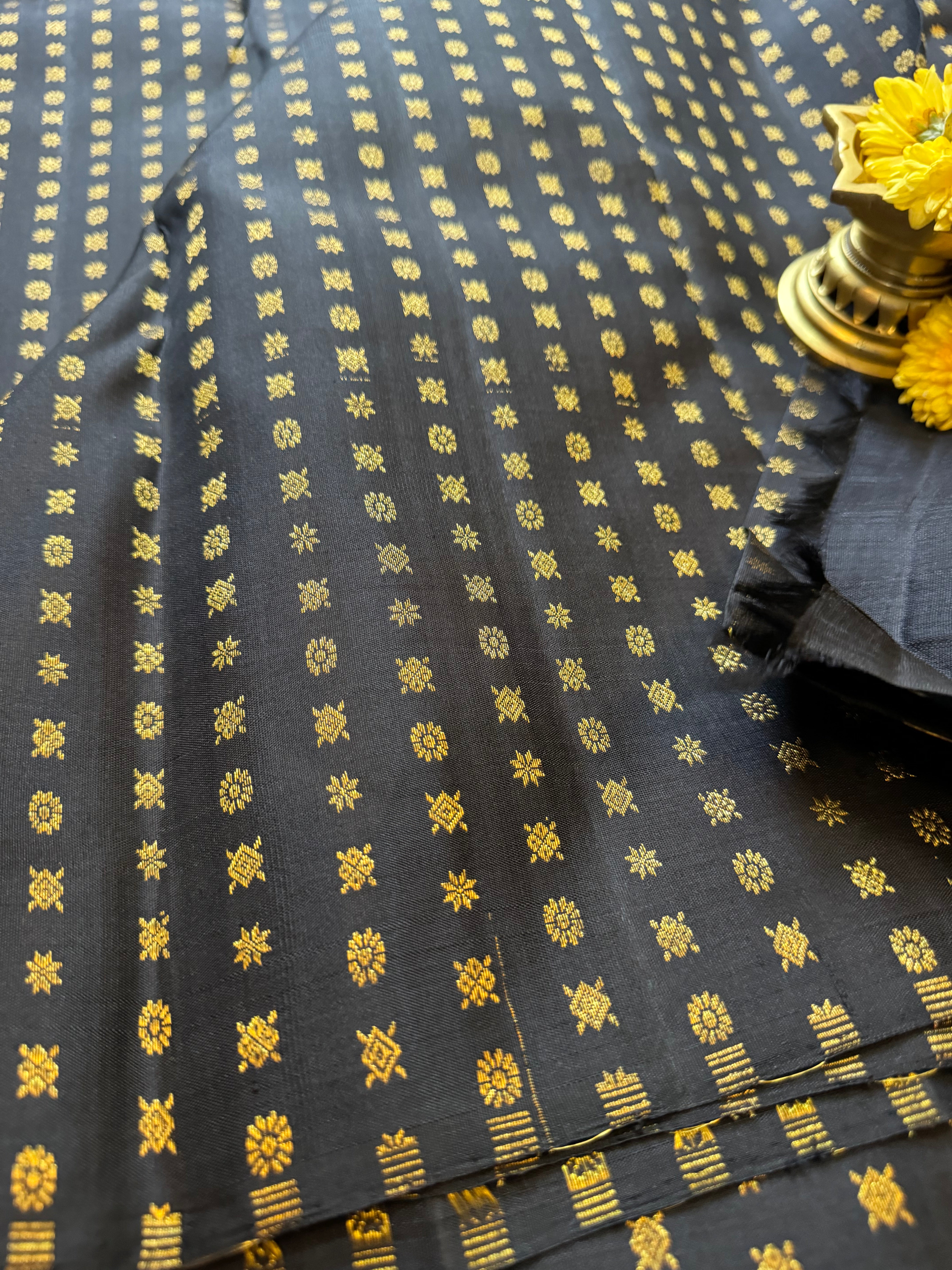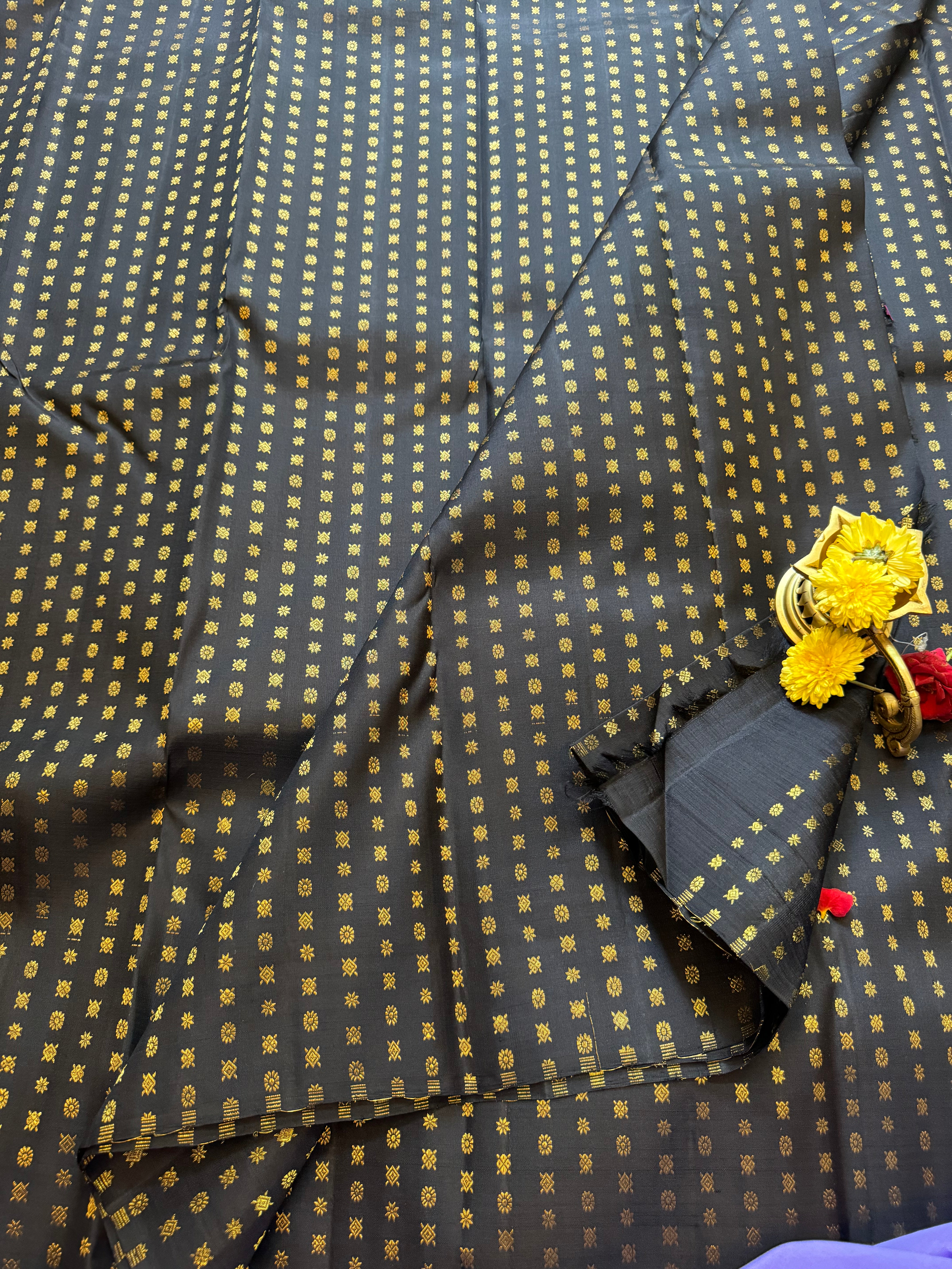 The blouse fabric in zari butta in black . The price is for one metre .not a pure zari