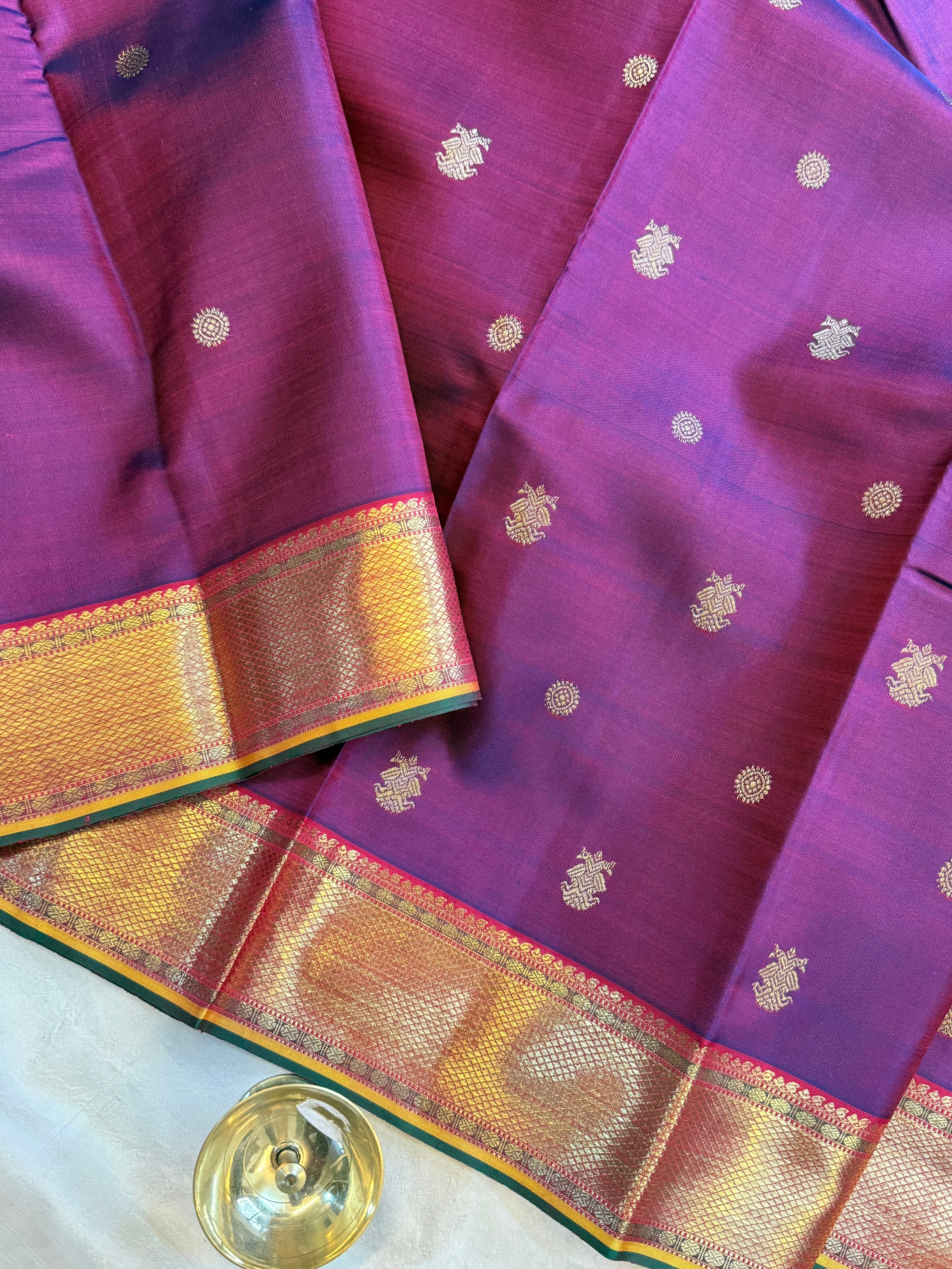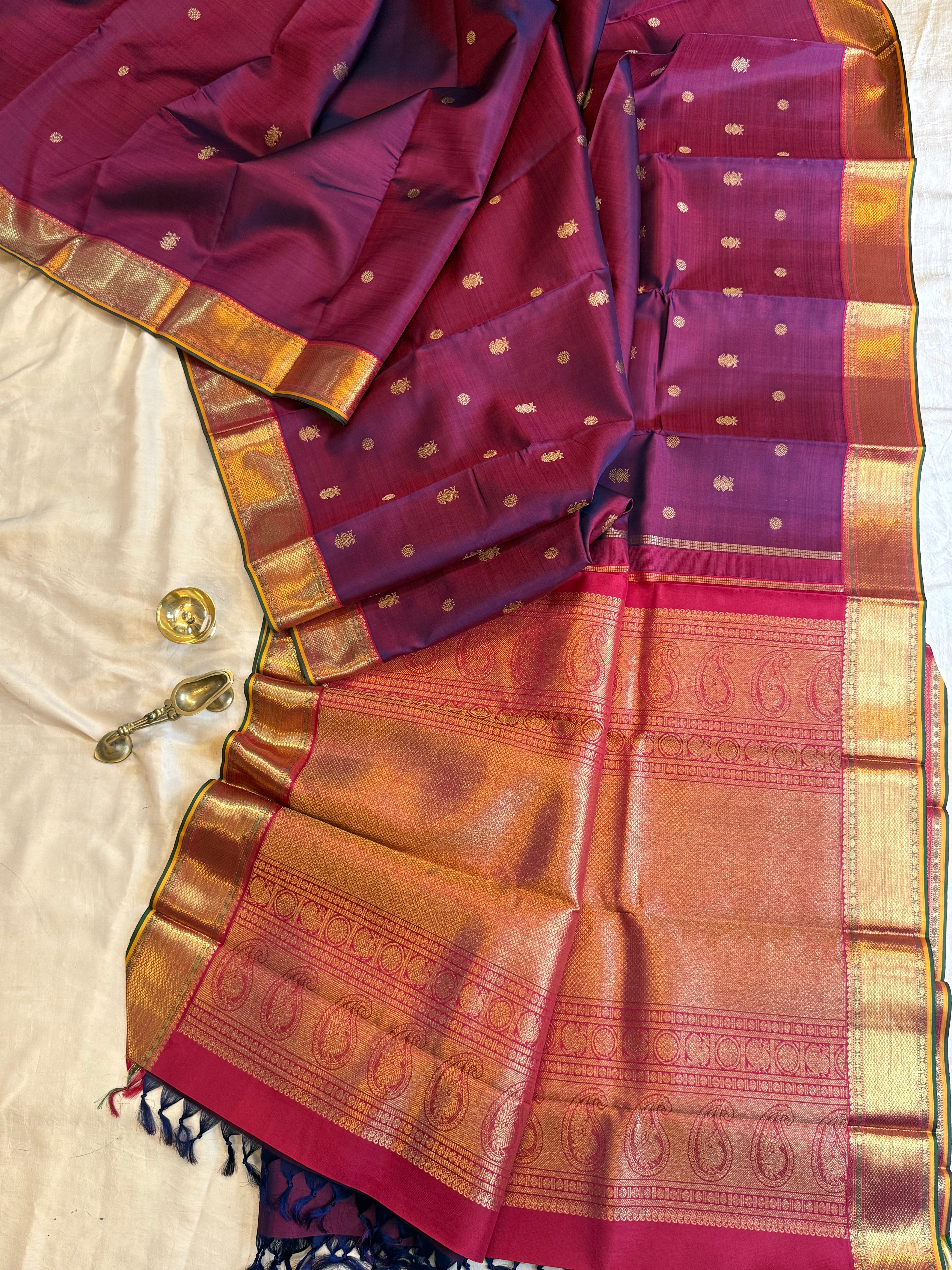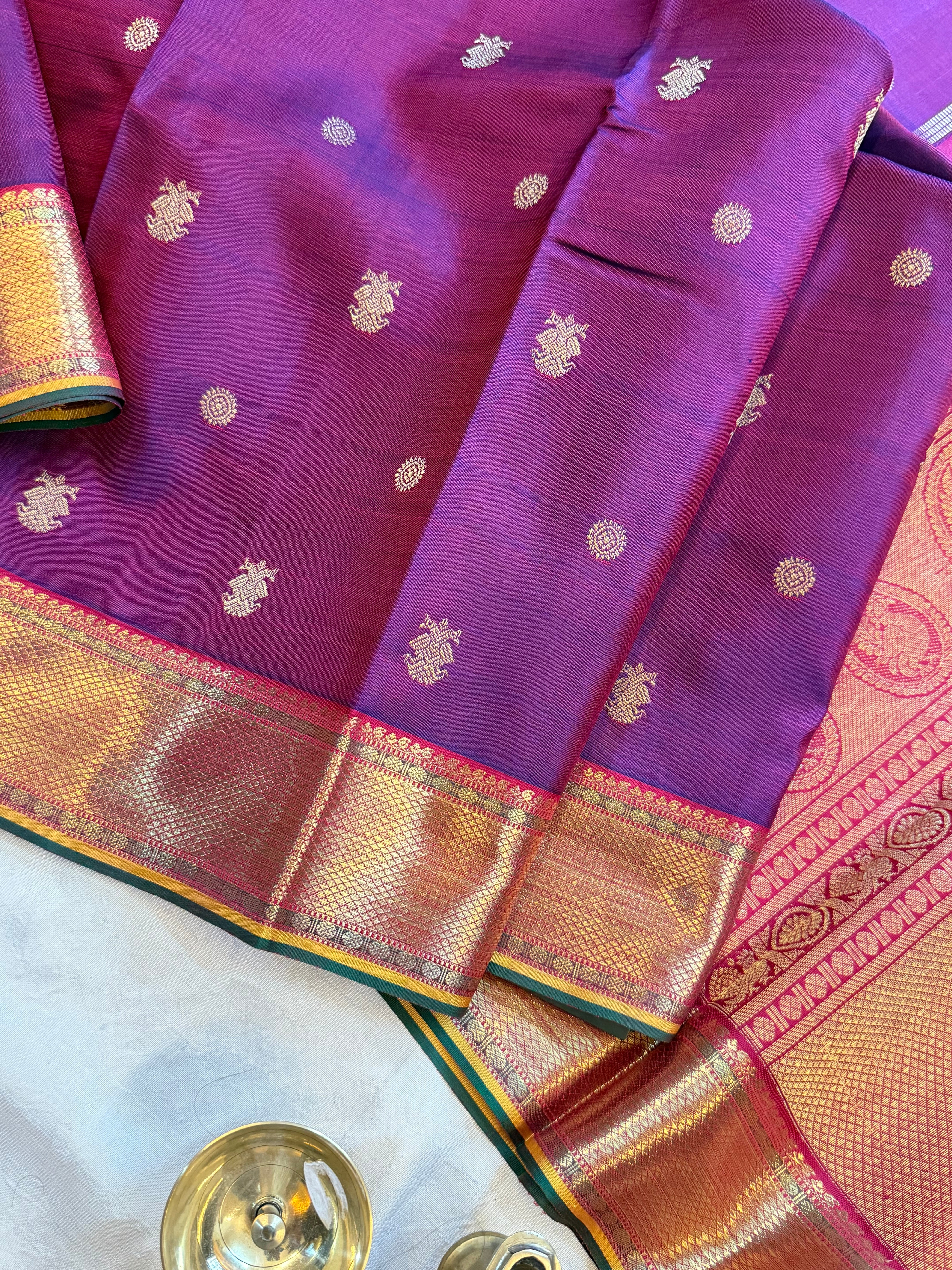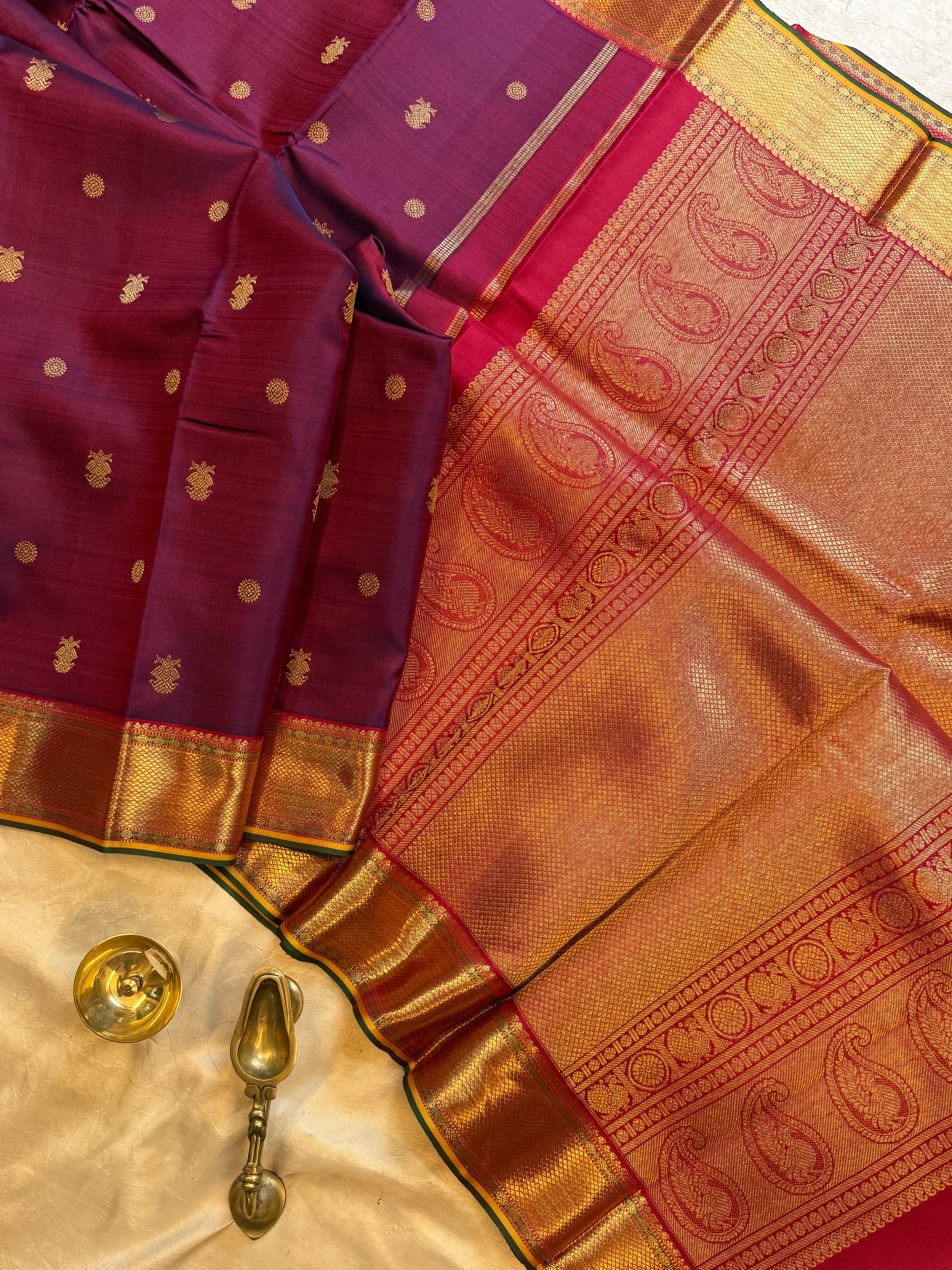 Aubergine irutalaipakshi Butta / kanjipuram silk
