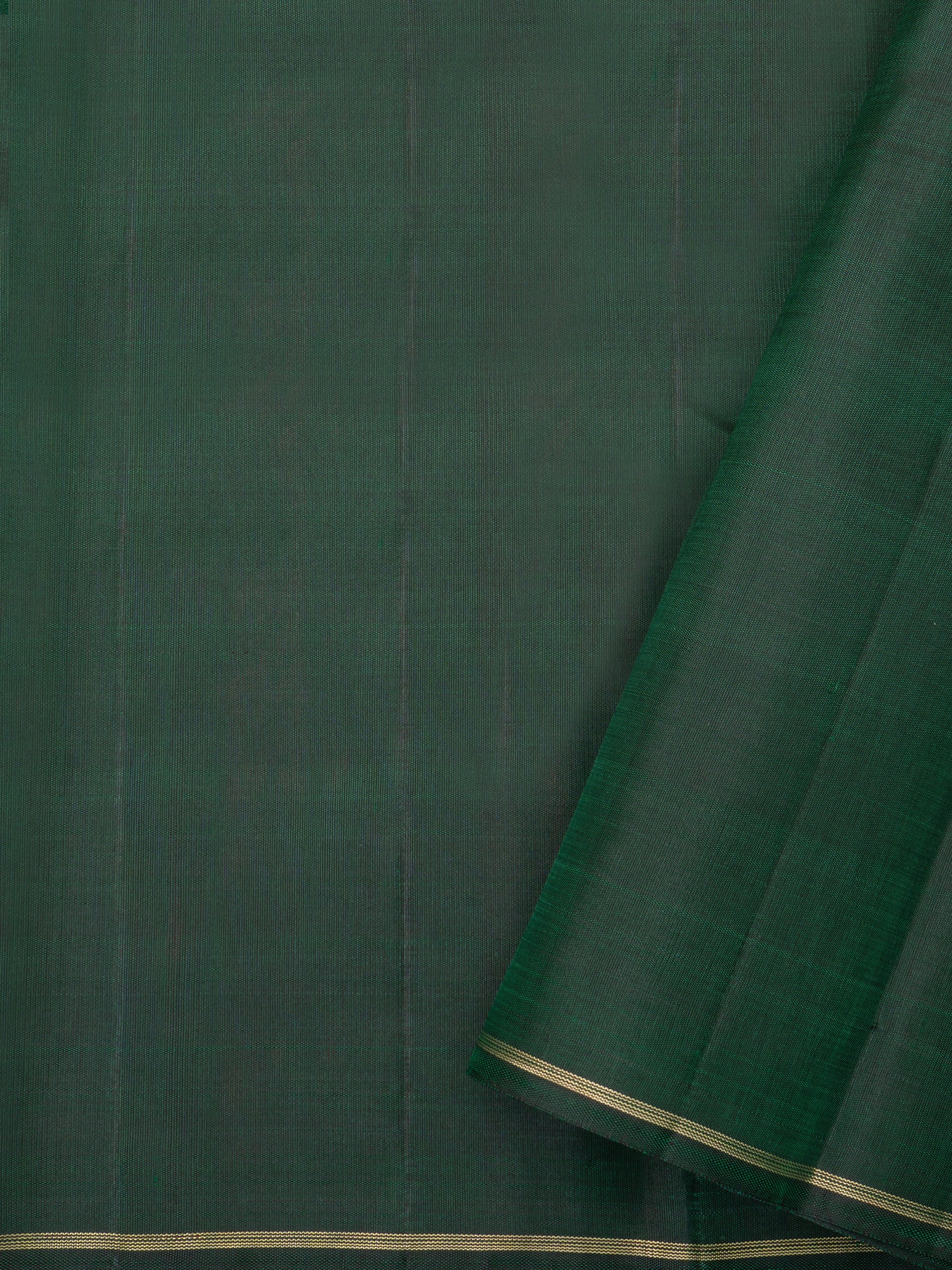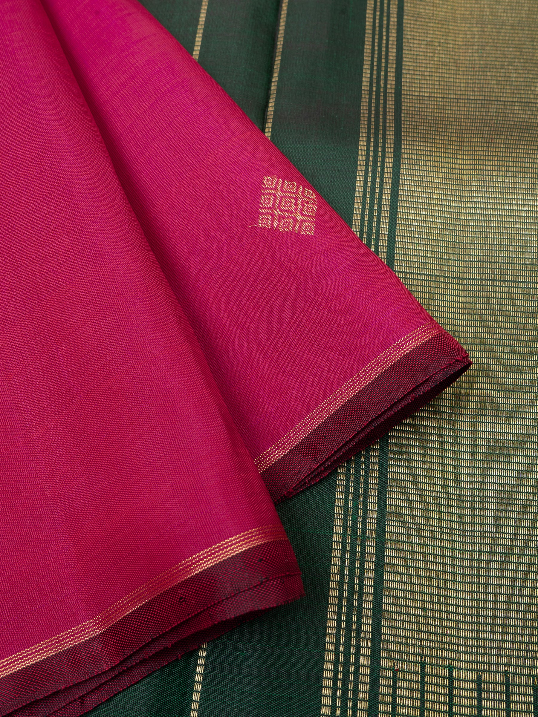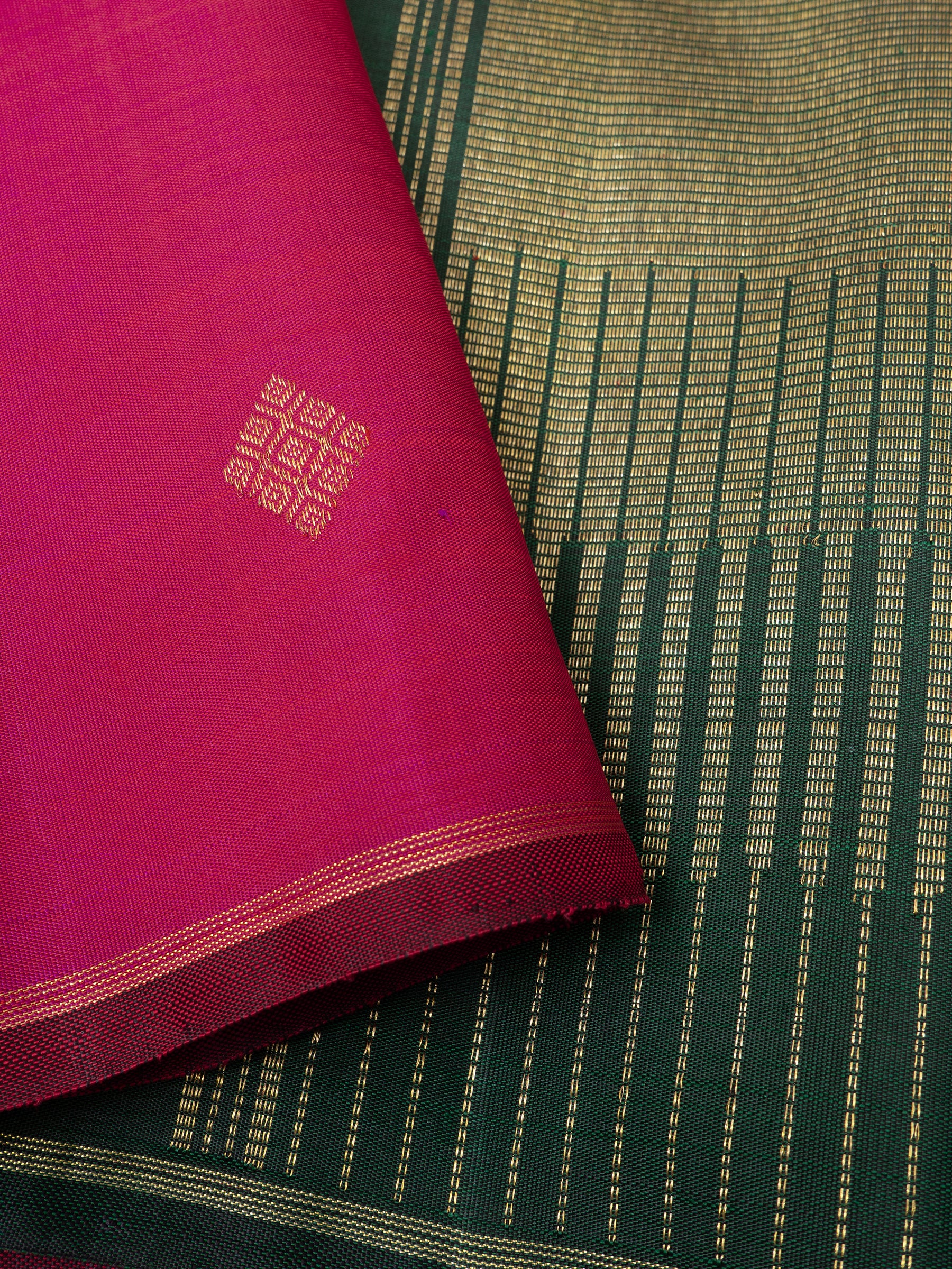 The body is deep pink with star Kasuti Butta and the Palla is dark green Zari Palla and blouse