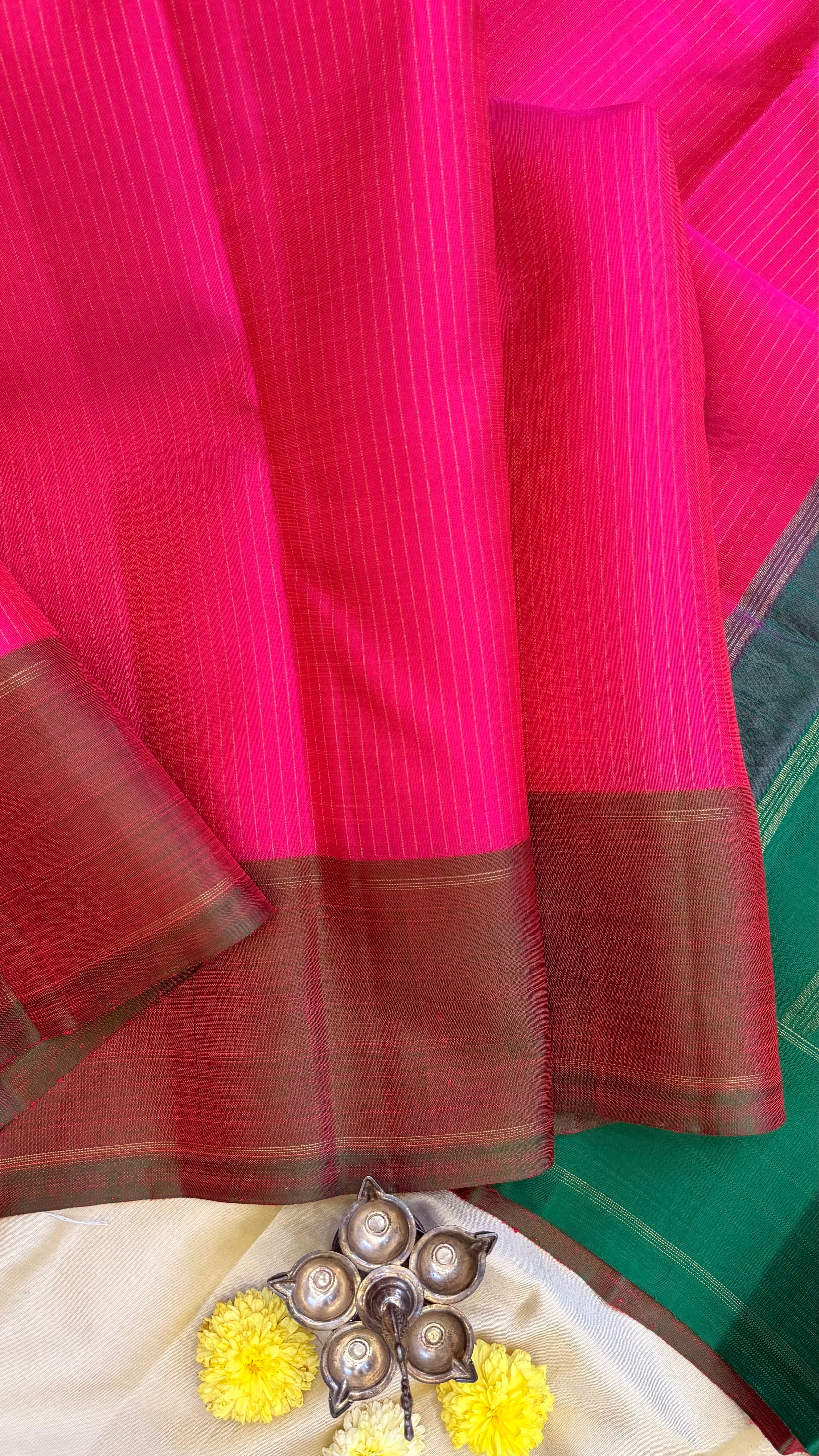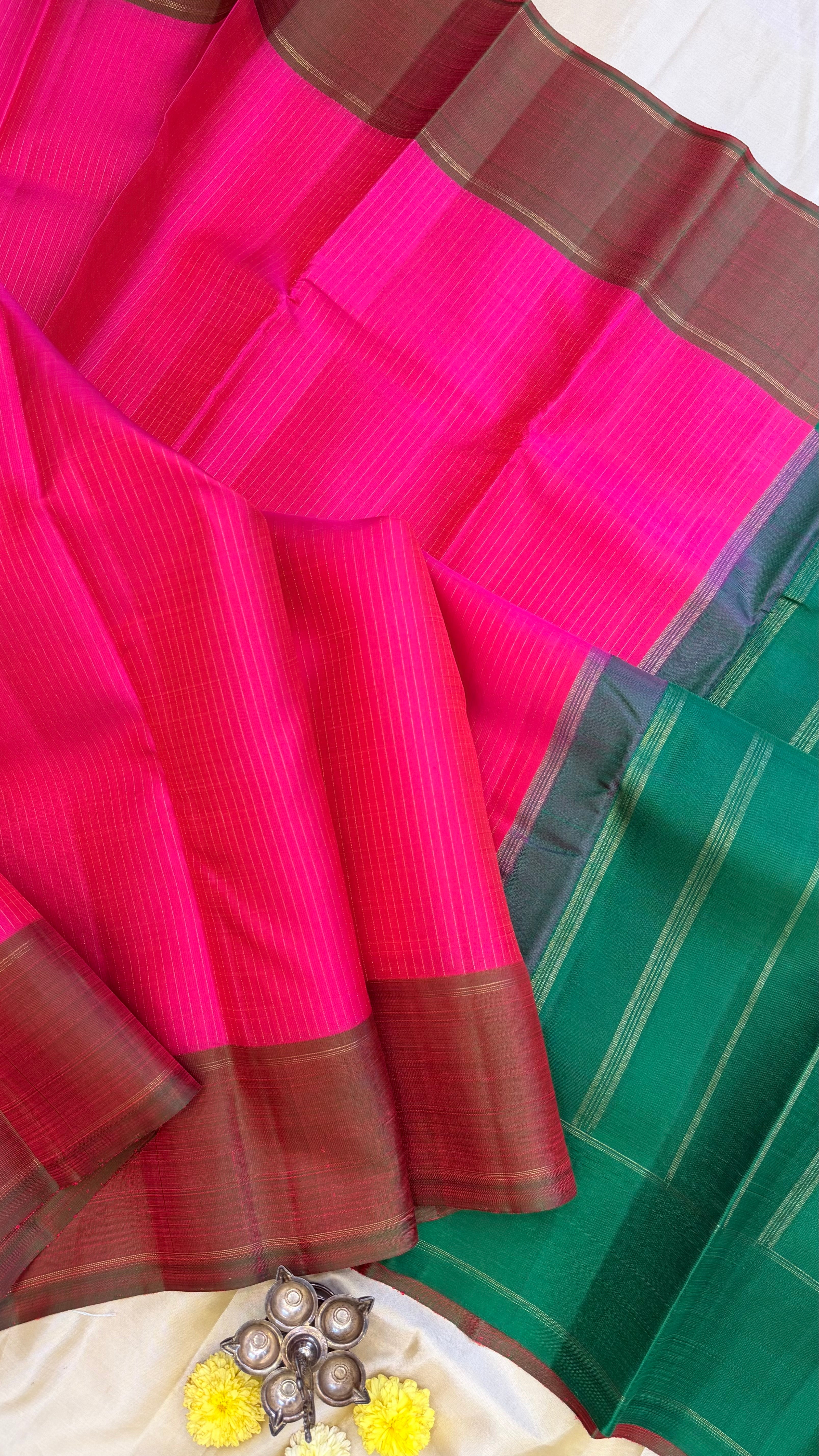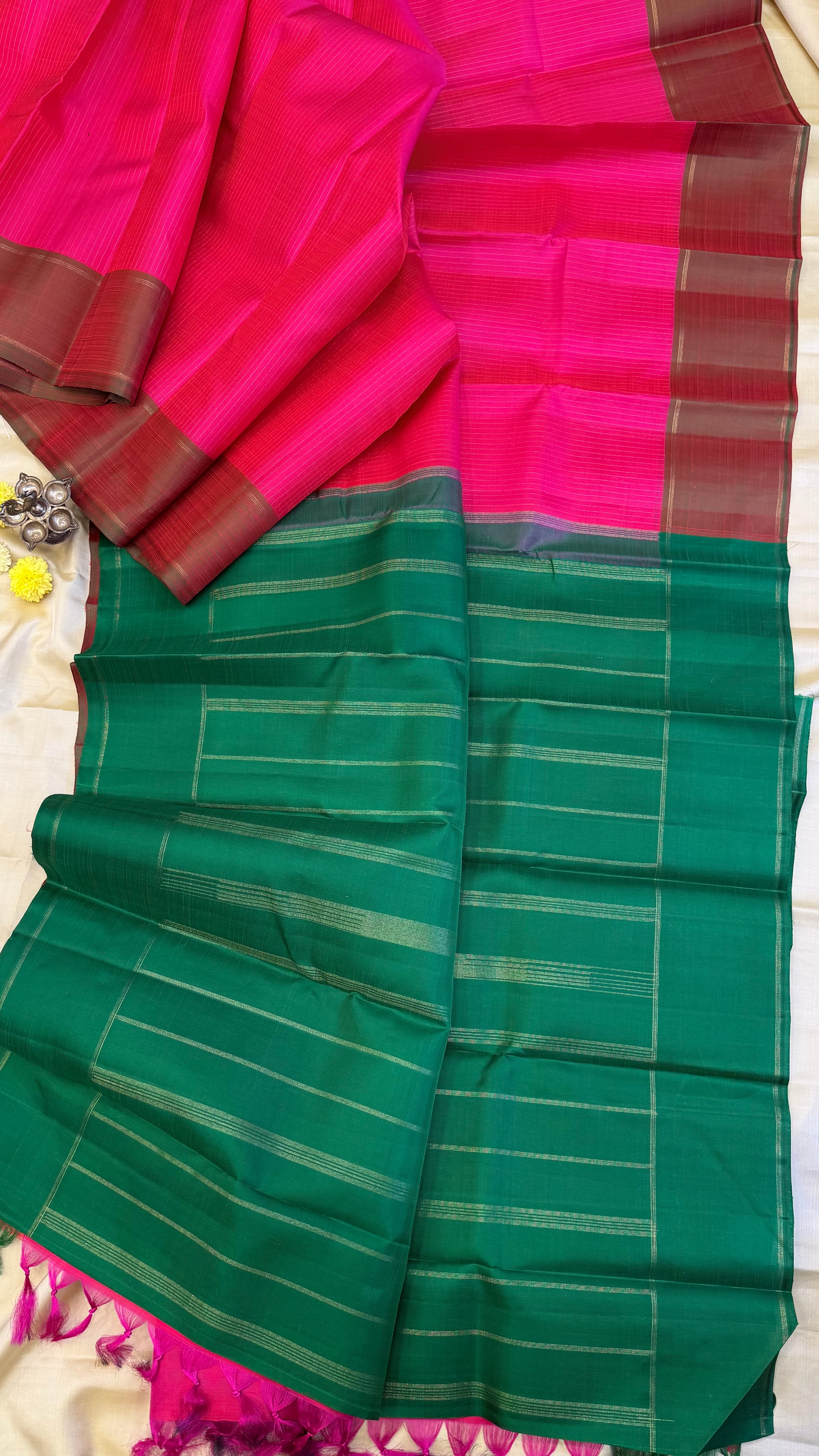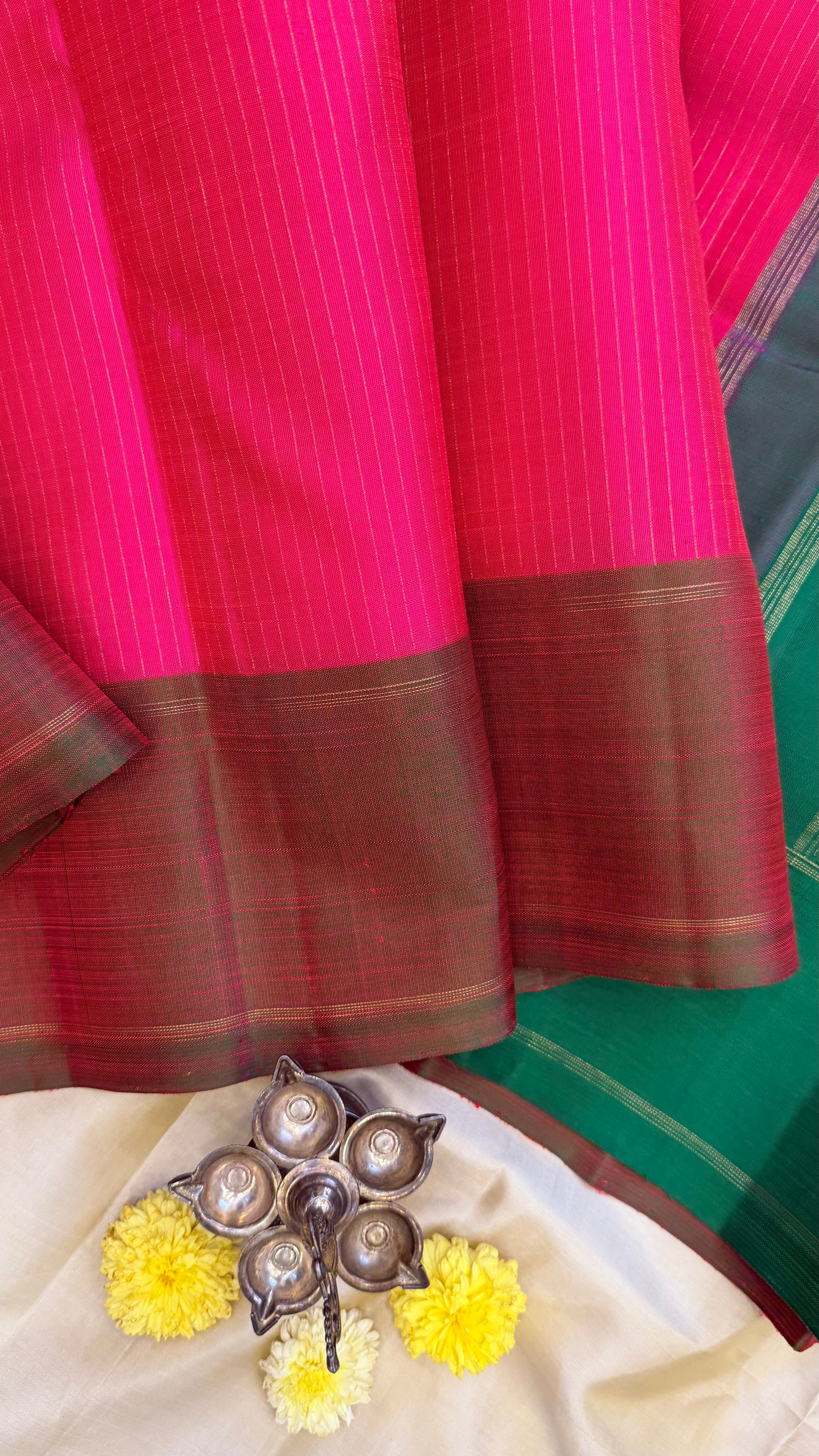 Bright pink zari lines / kanjipuram silk