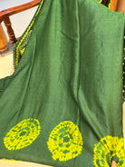 The saree is gajji silk roll pressed , attached blouse , the bandhini in the saree is hand knotted
