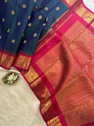 Dark Mayilkazhuthu blue - meenakari border kai korvai/ kanjipuram silk