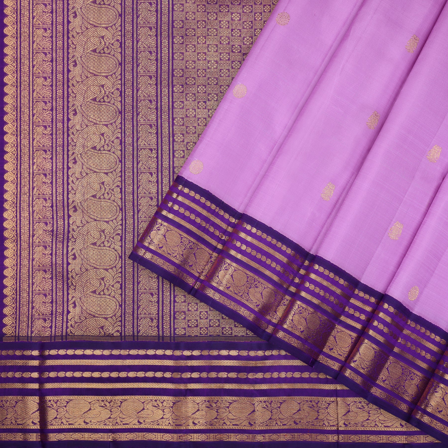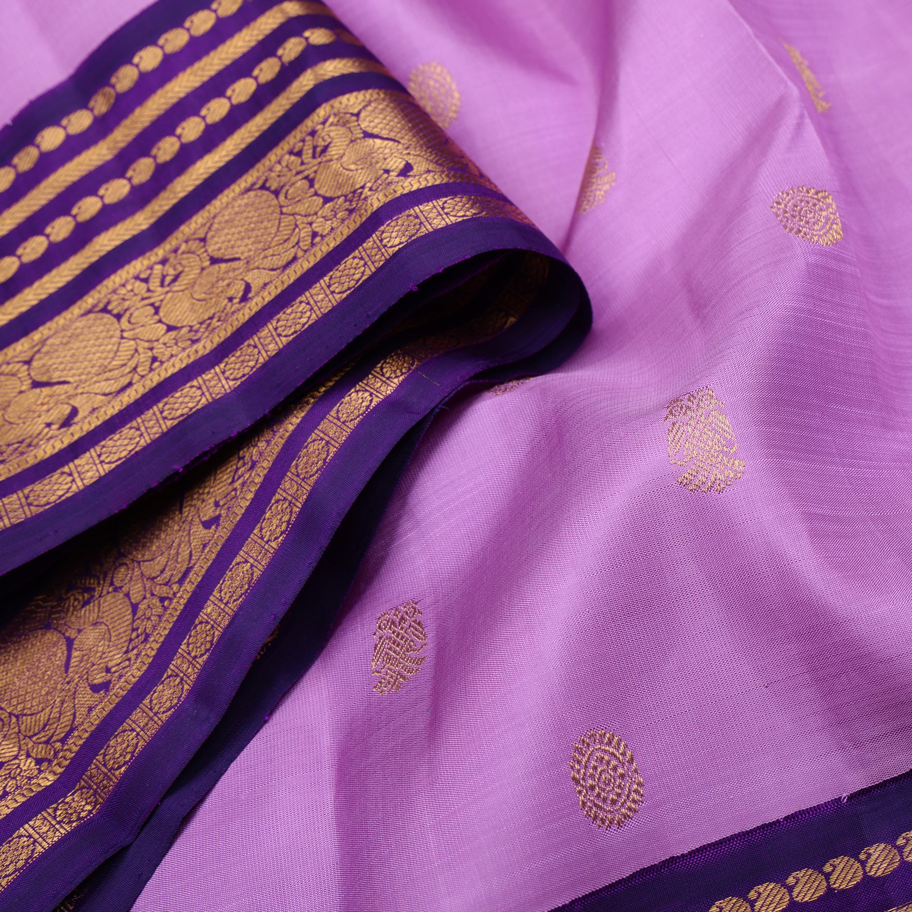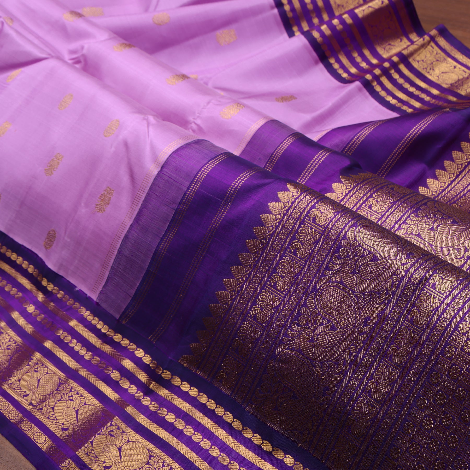 The body of the saree is Dec poo colour with irutalaipakshi and chakram Butta and kai korvai border and Palla with dense pure zari Palla and blouse