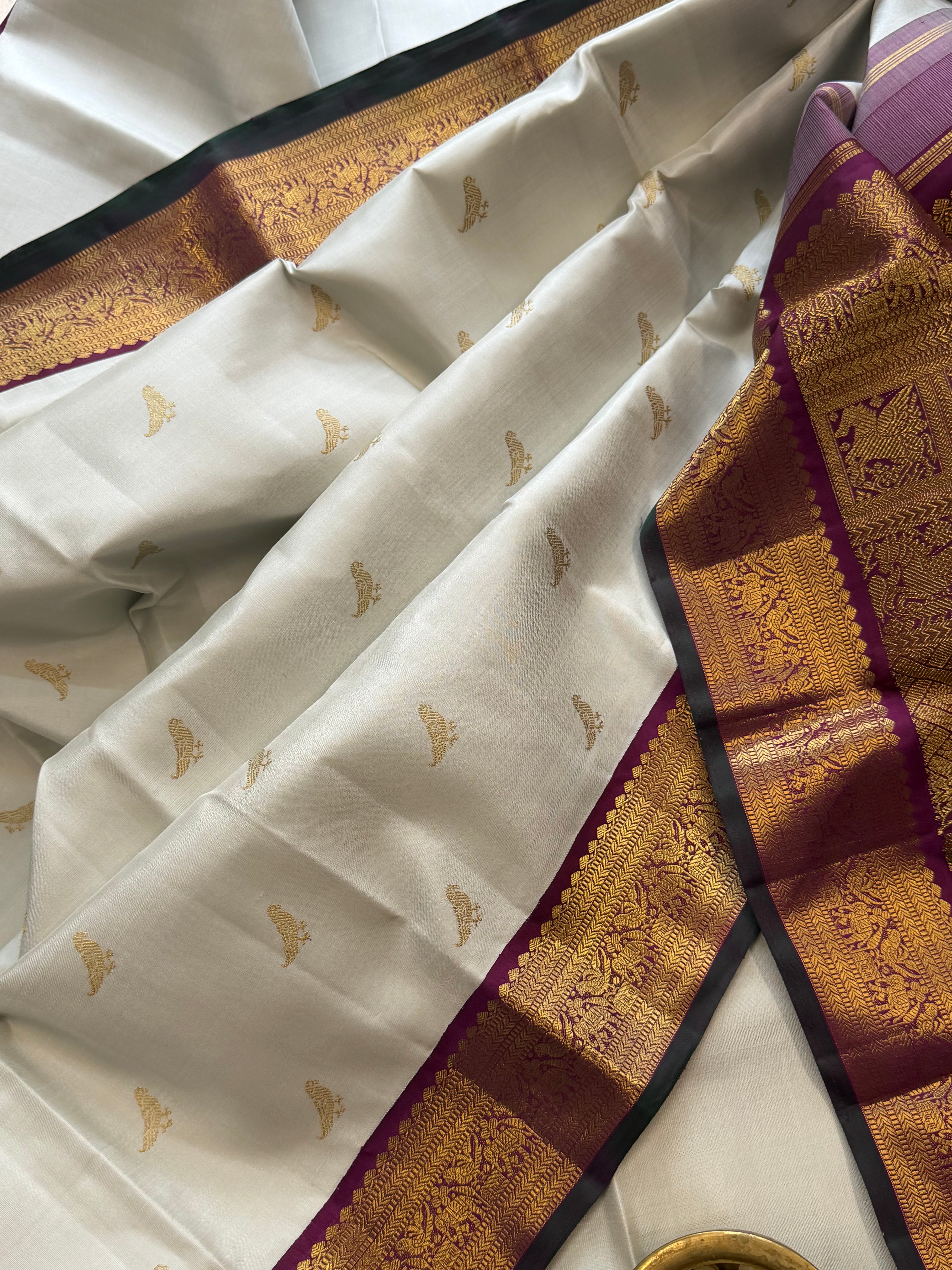 Eeyam colour kuruvi Butta Korvai Kanjipuram silk