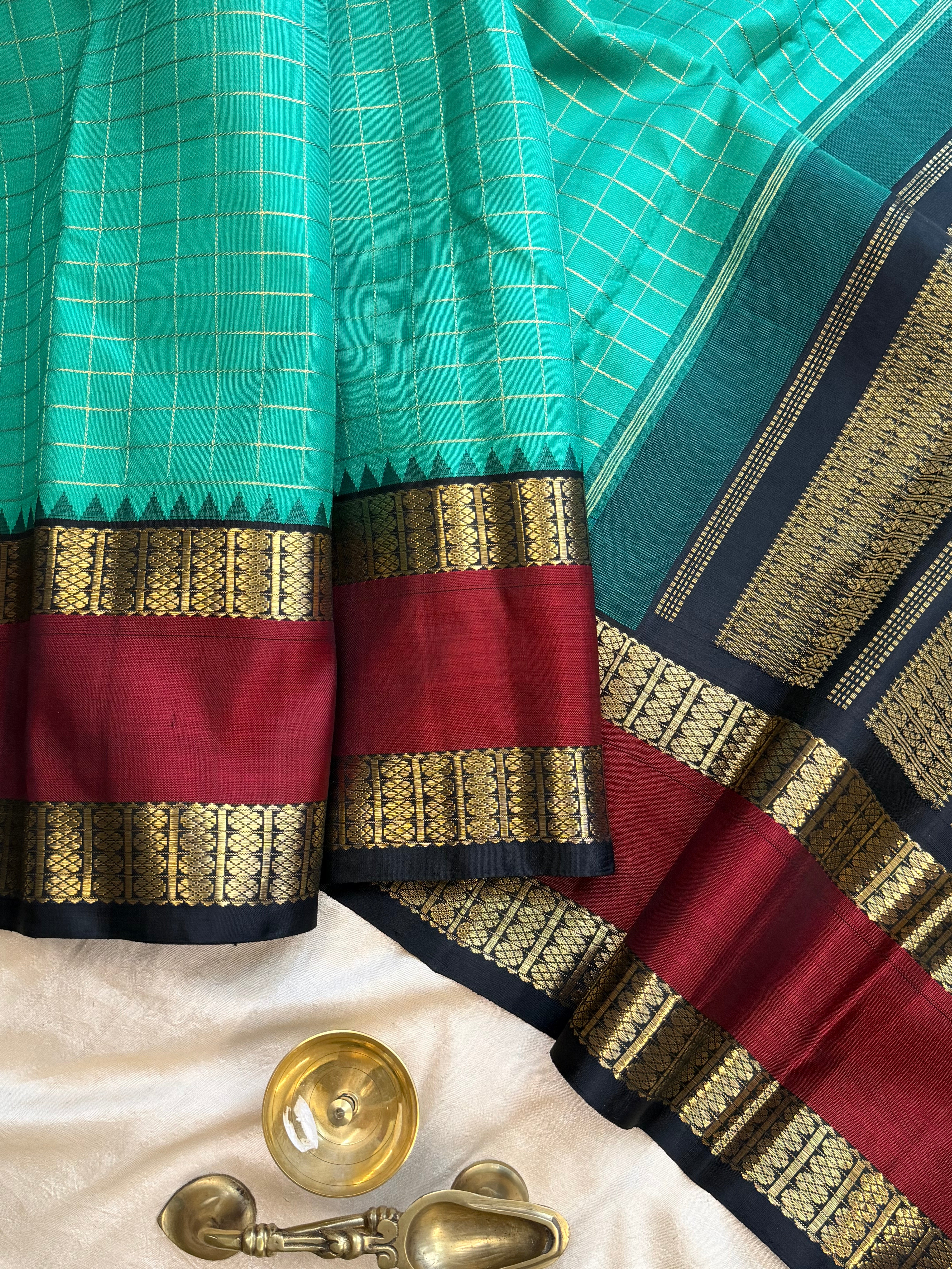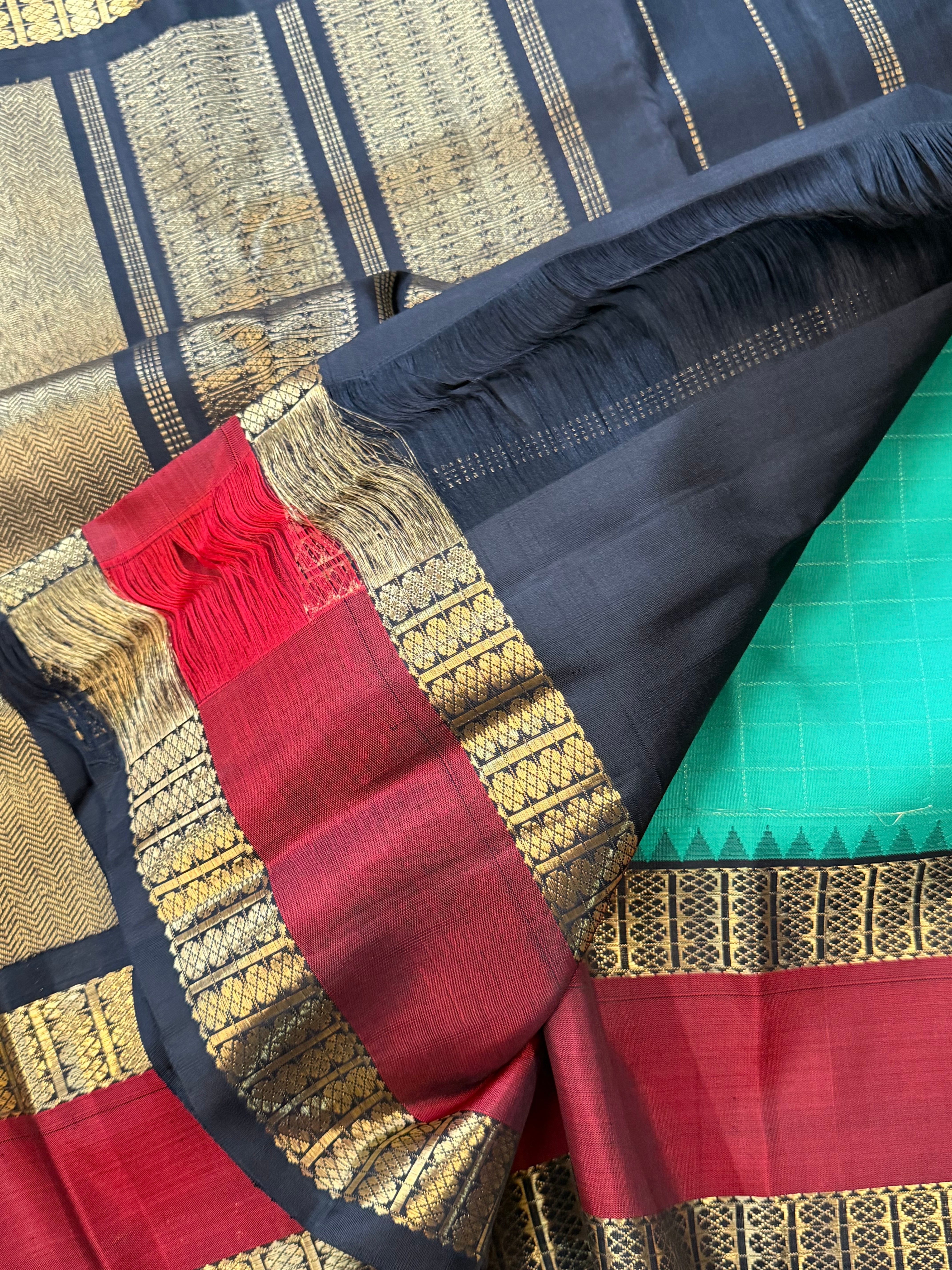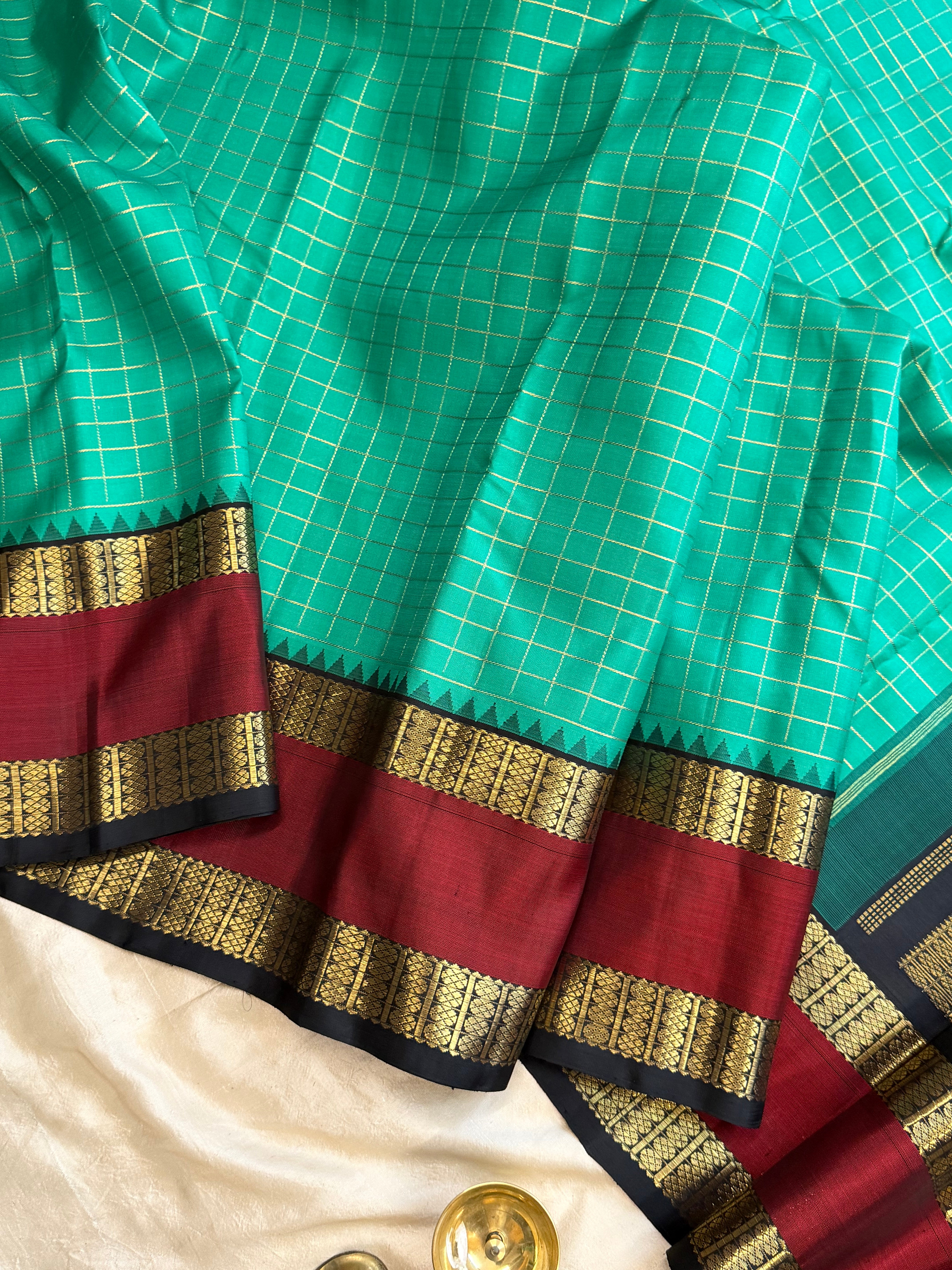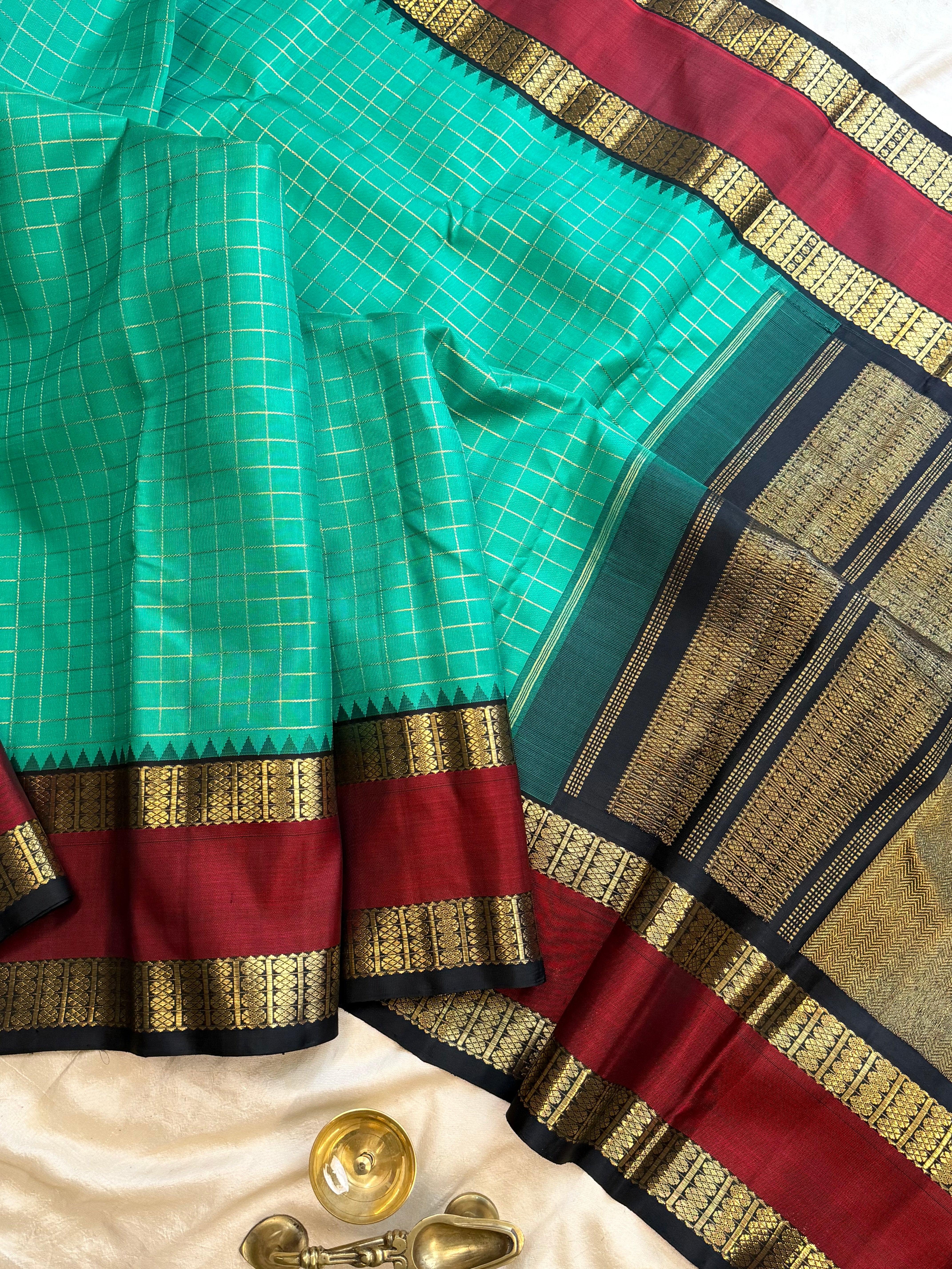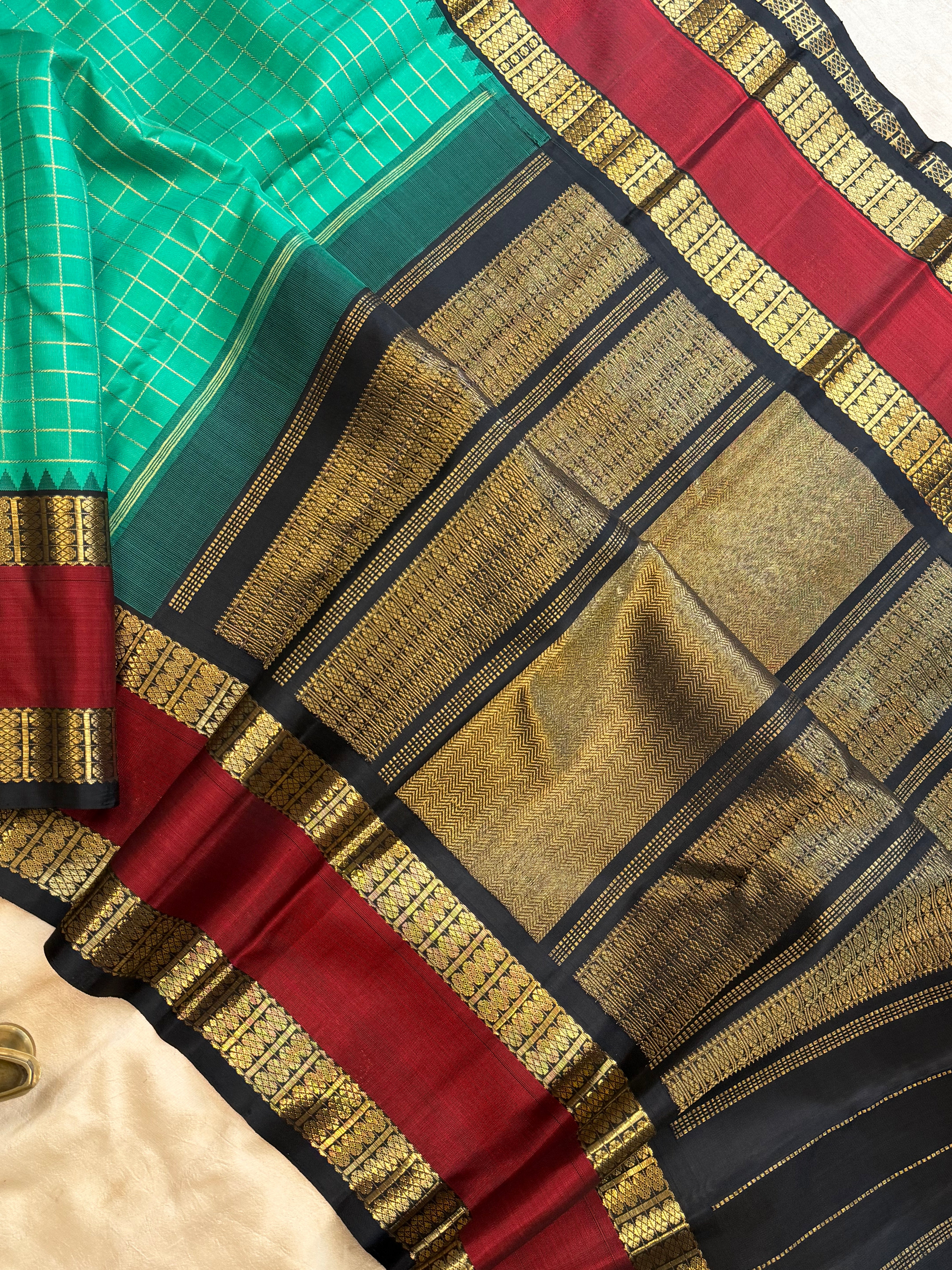 Emerald green Zari Kattam Korvai / Kanjipuram silk