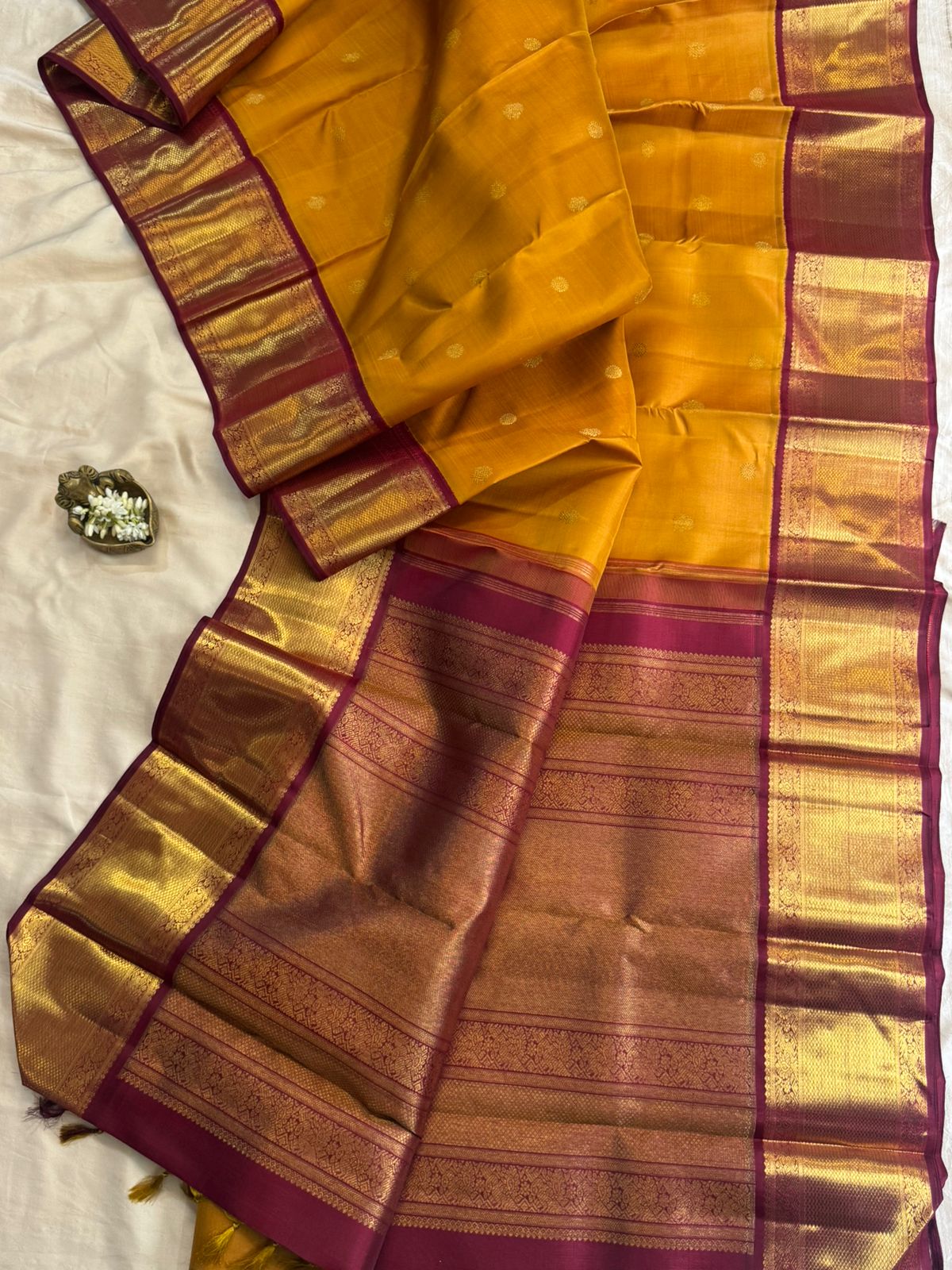 Golden mustard kai korvai / kanjipuram silk