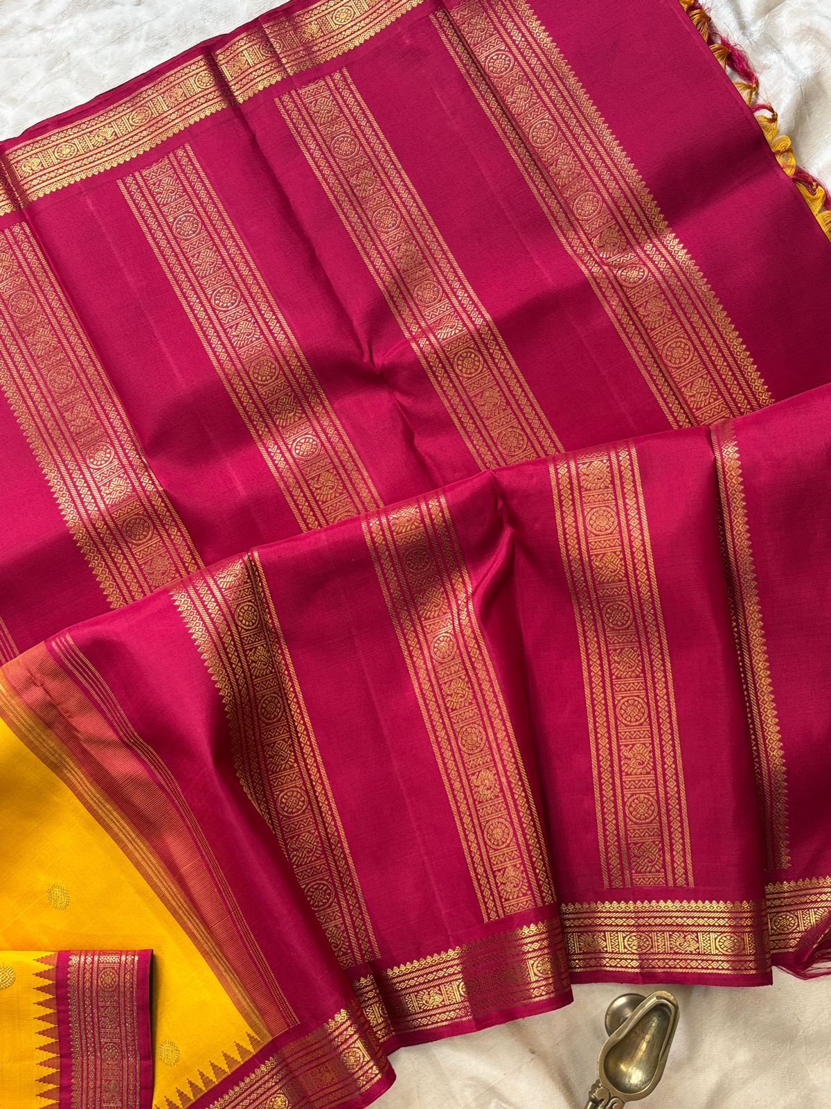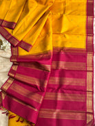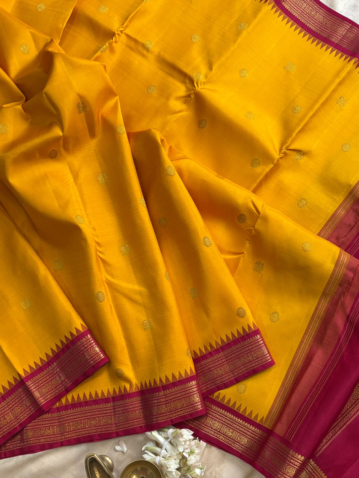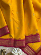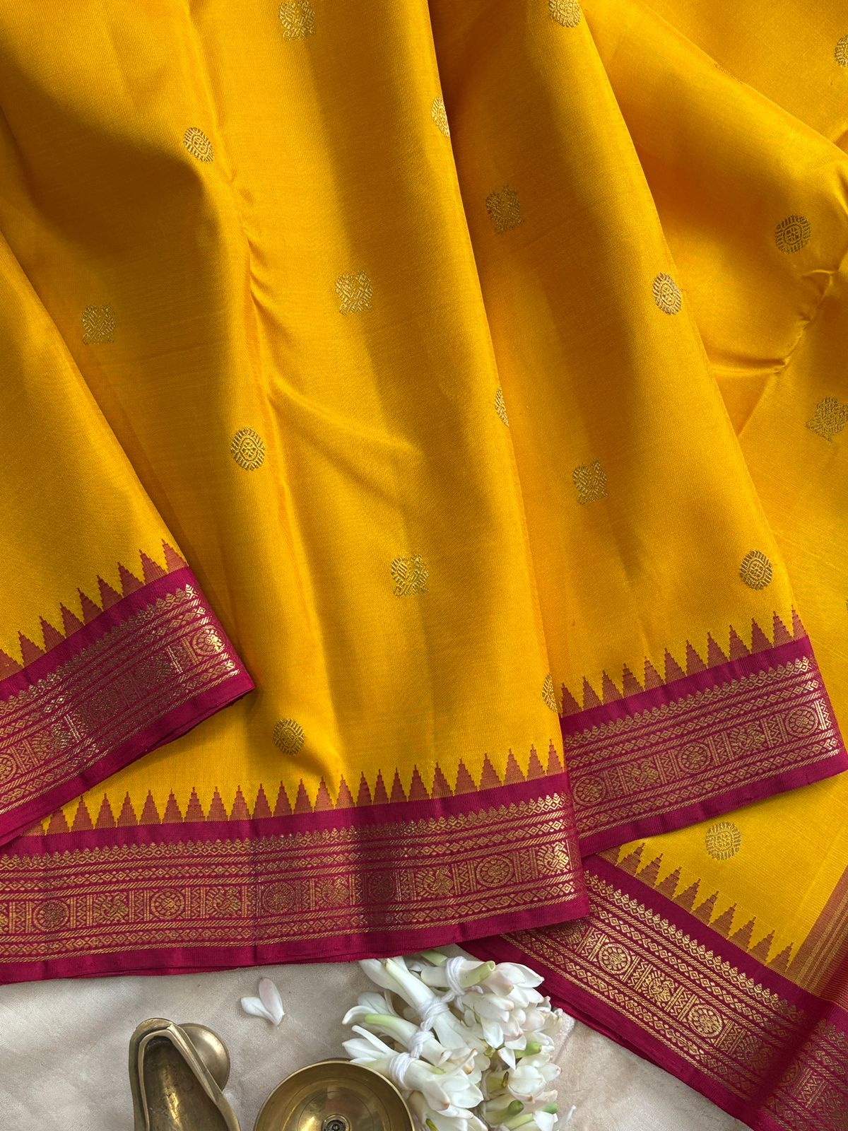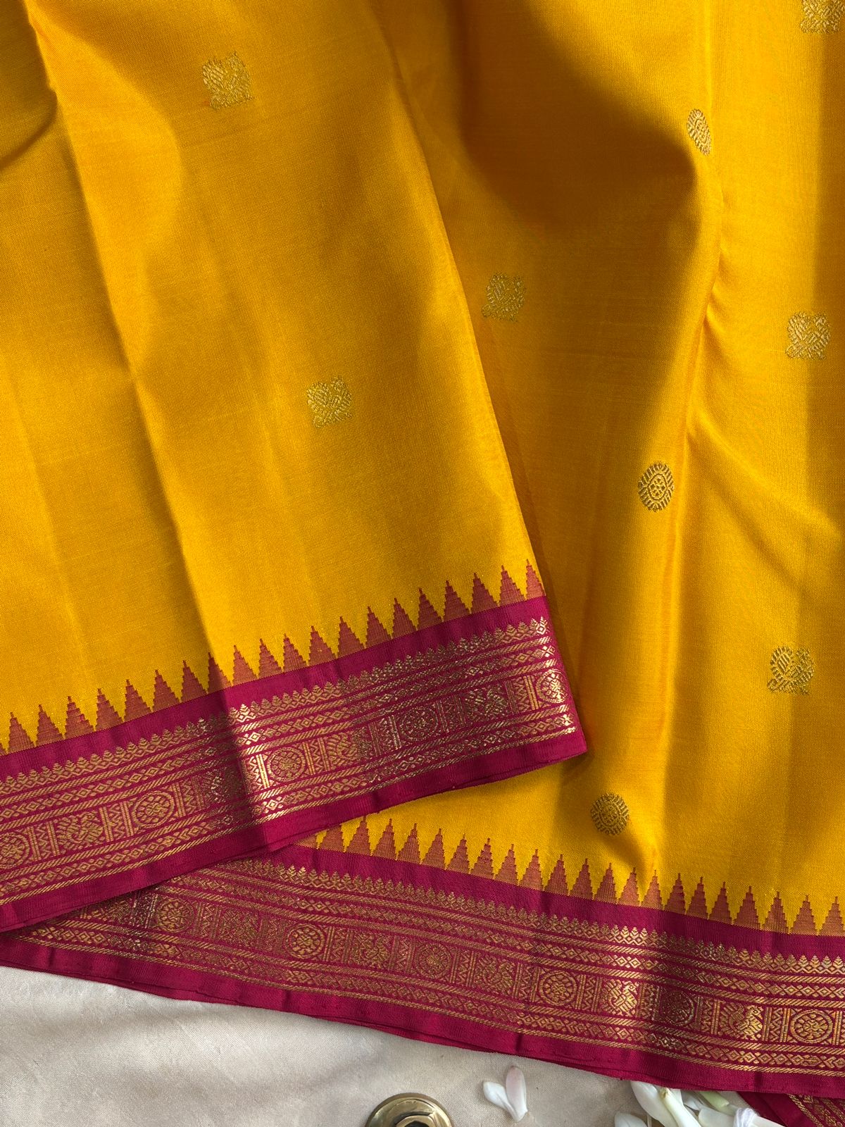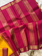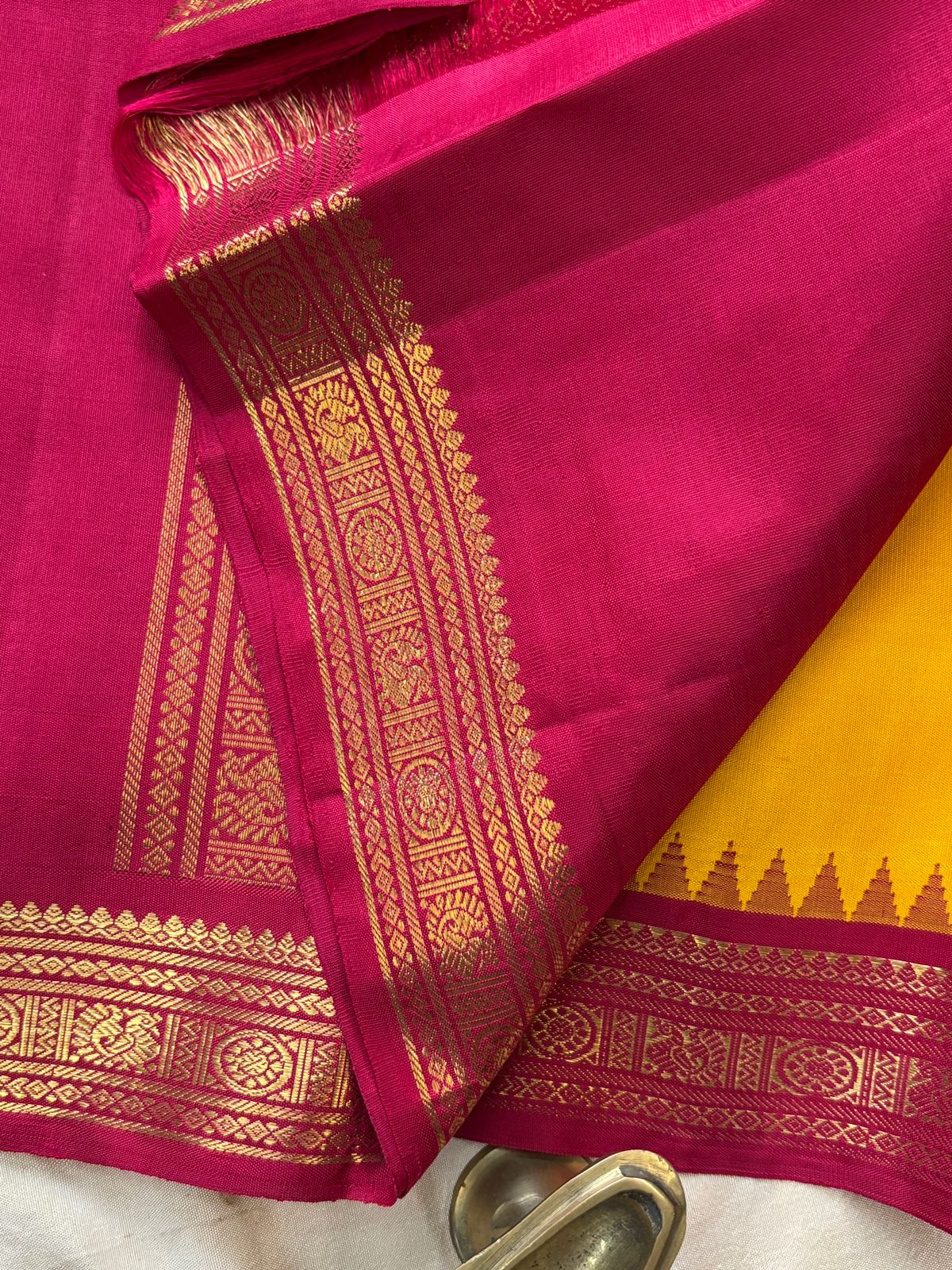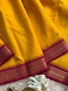 Golden mustard yellow and red small border kai korvai/ kanjipuram silk