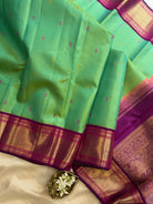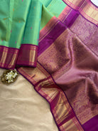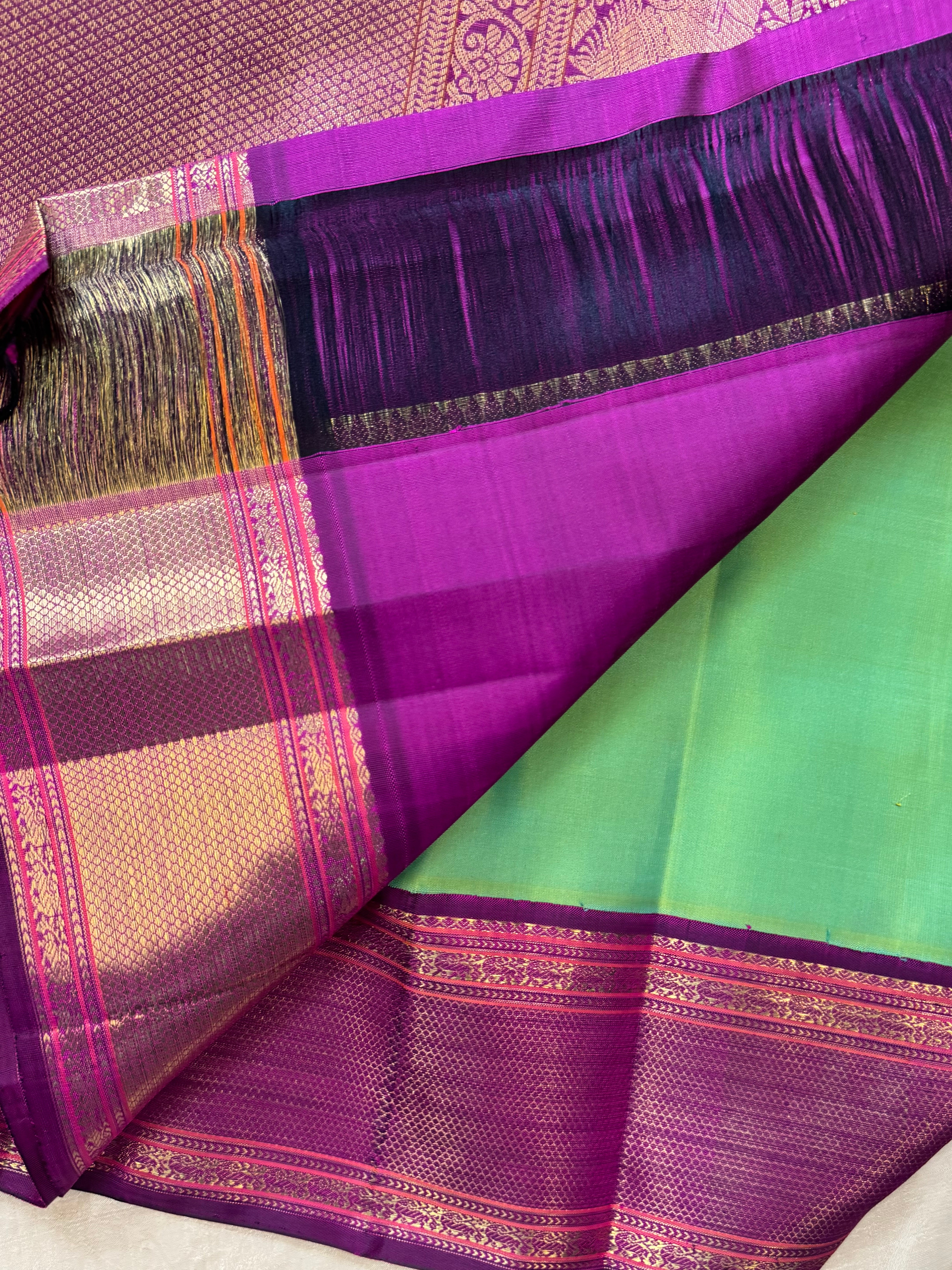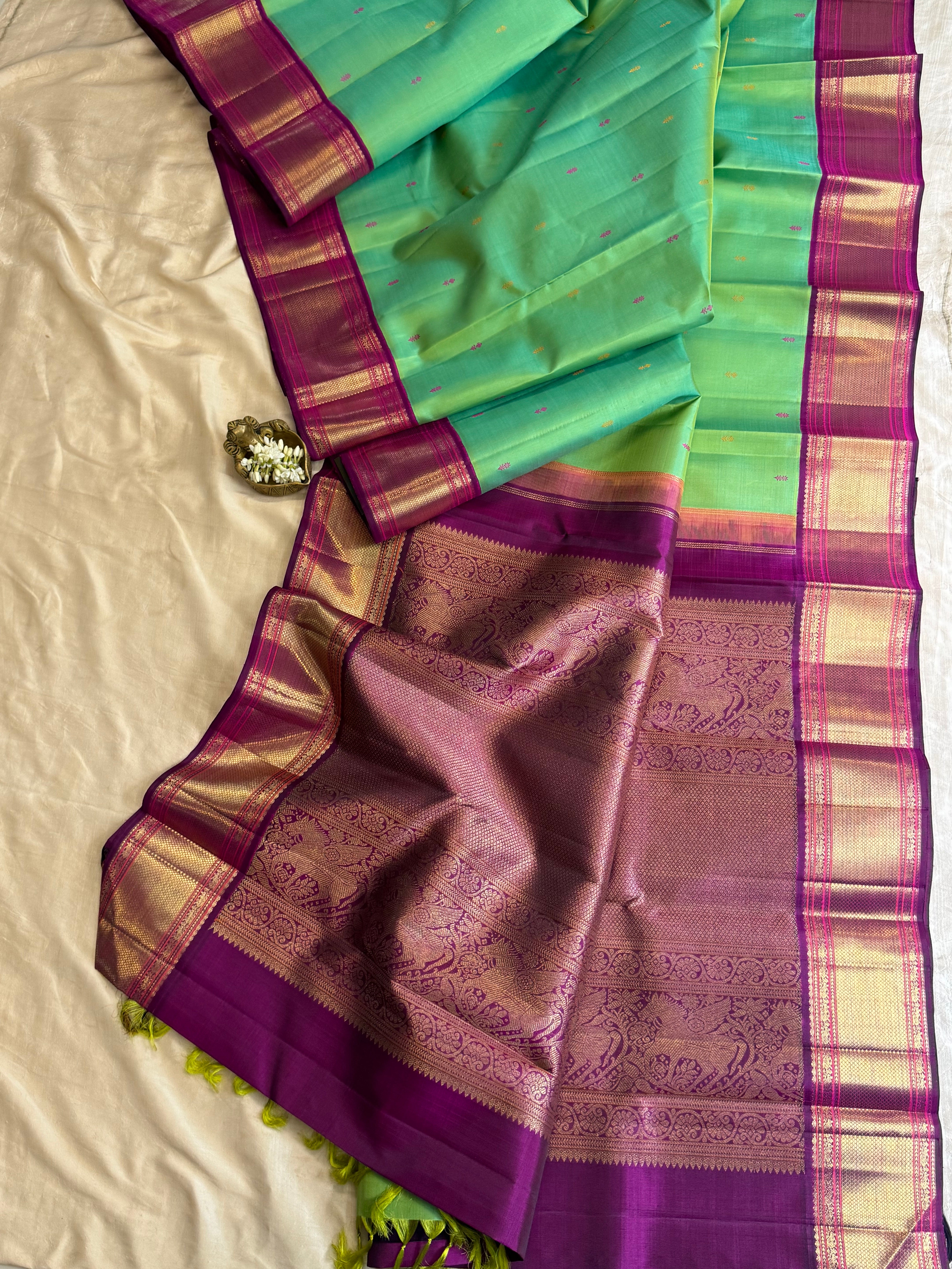 Greenish yellow kutty yazhli pet korvai / kanjipuram silk