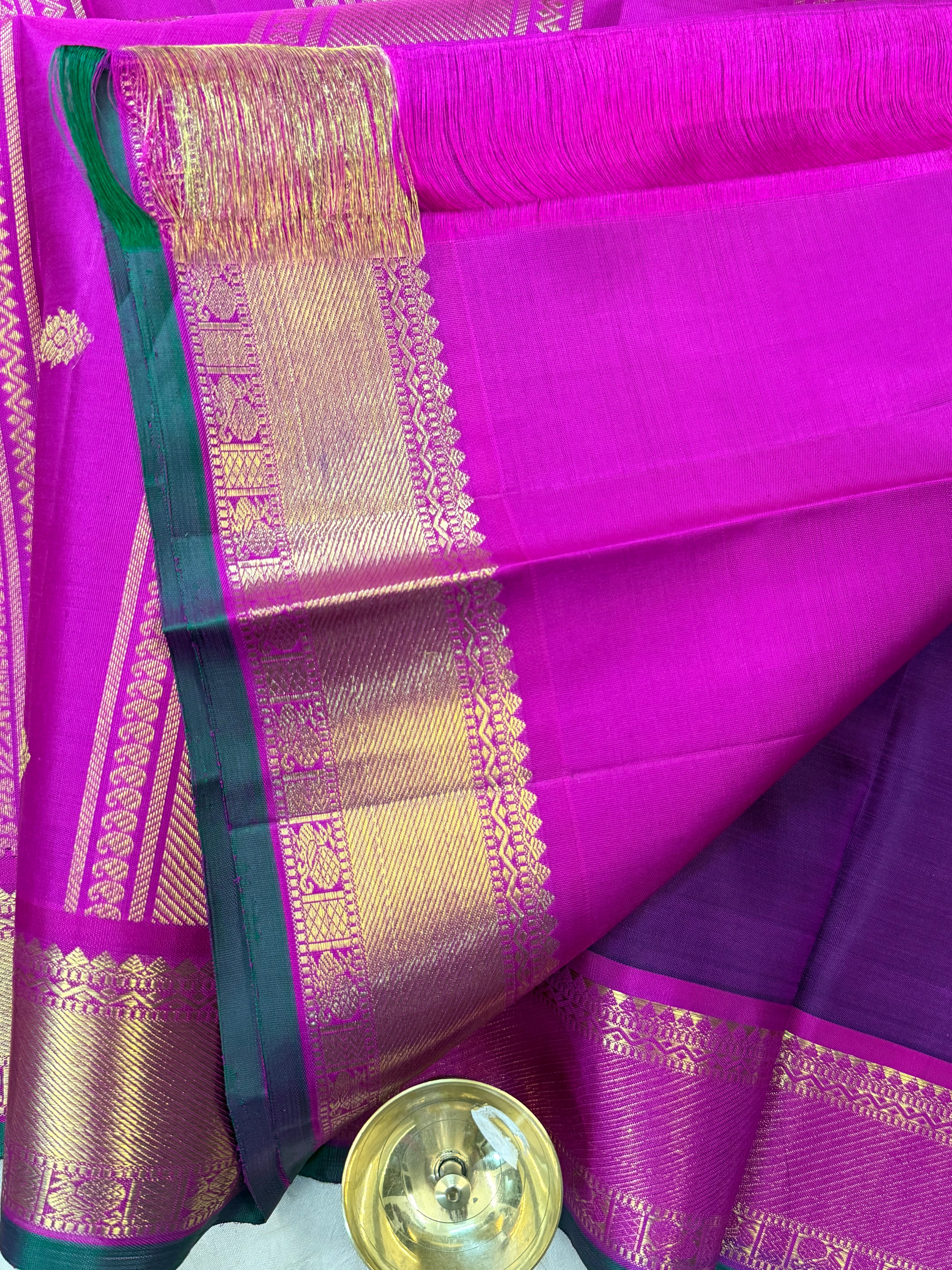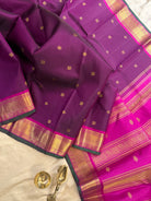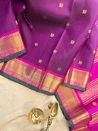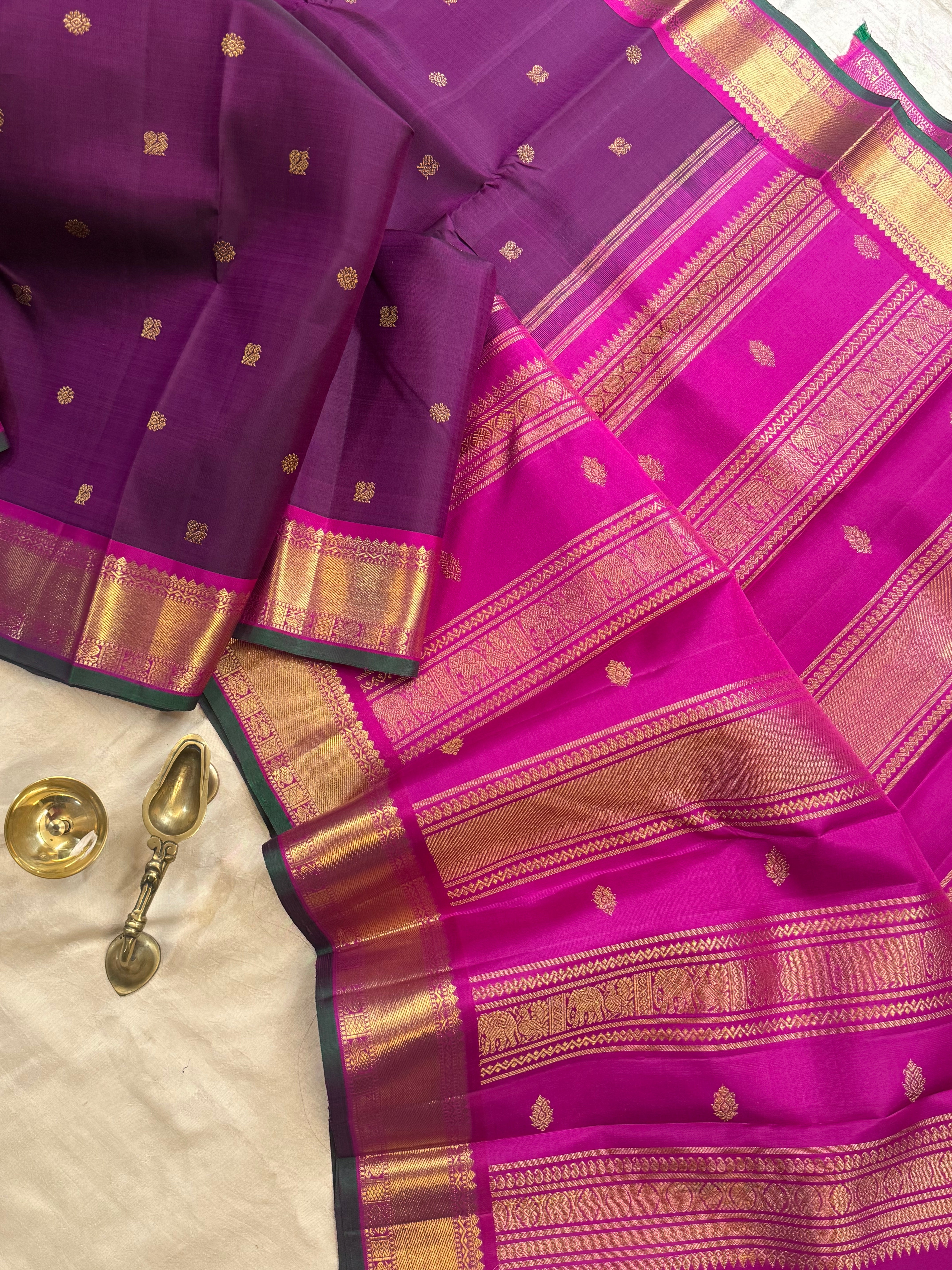 Aubergine Butta pink border / kanjipuram silk