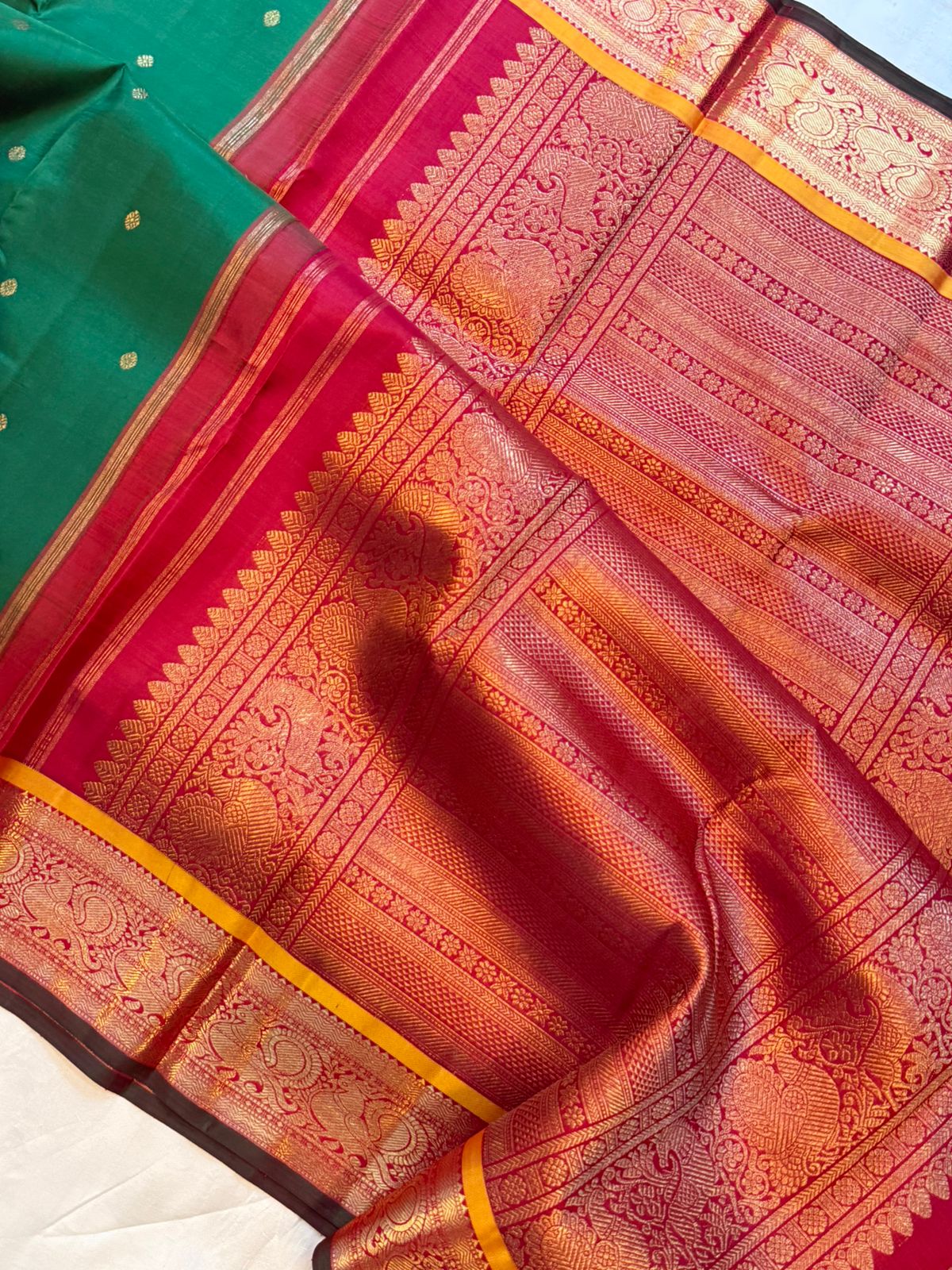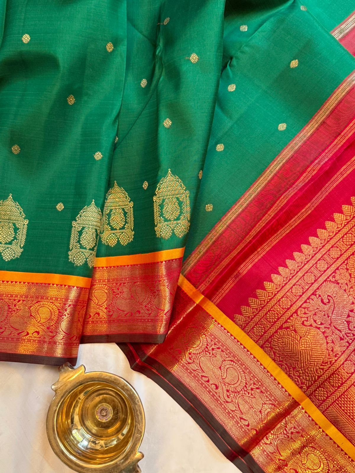 Leaf green with araku theer butta kai korvai/ kanjipuram silk