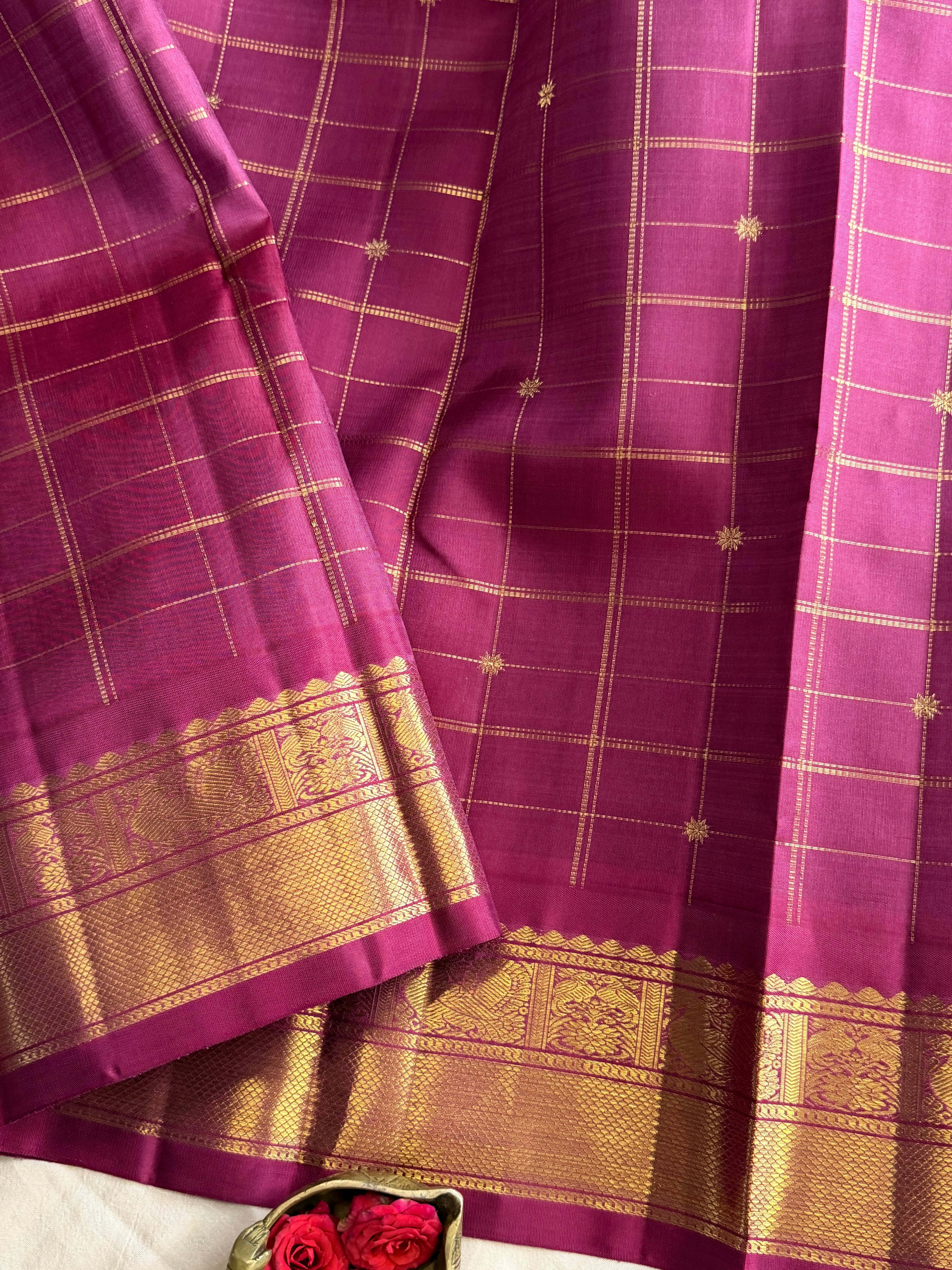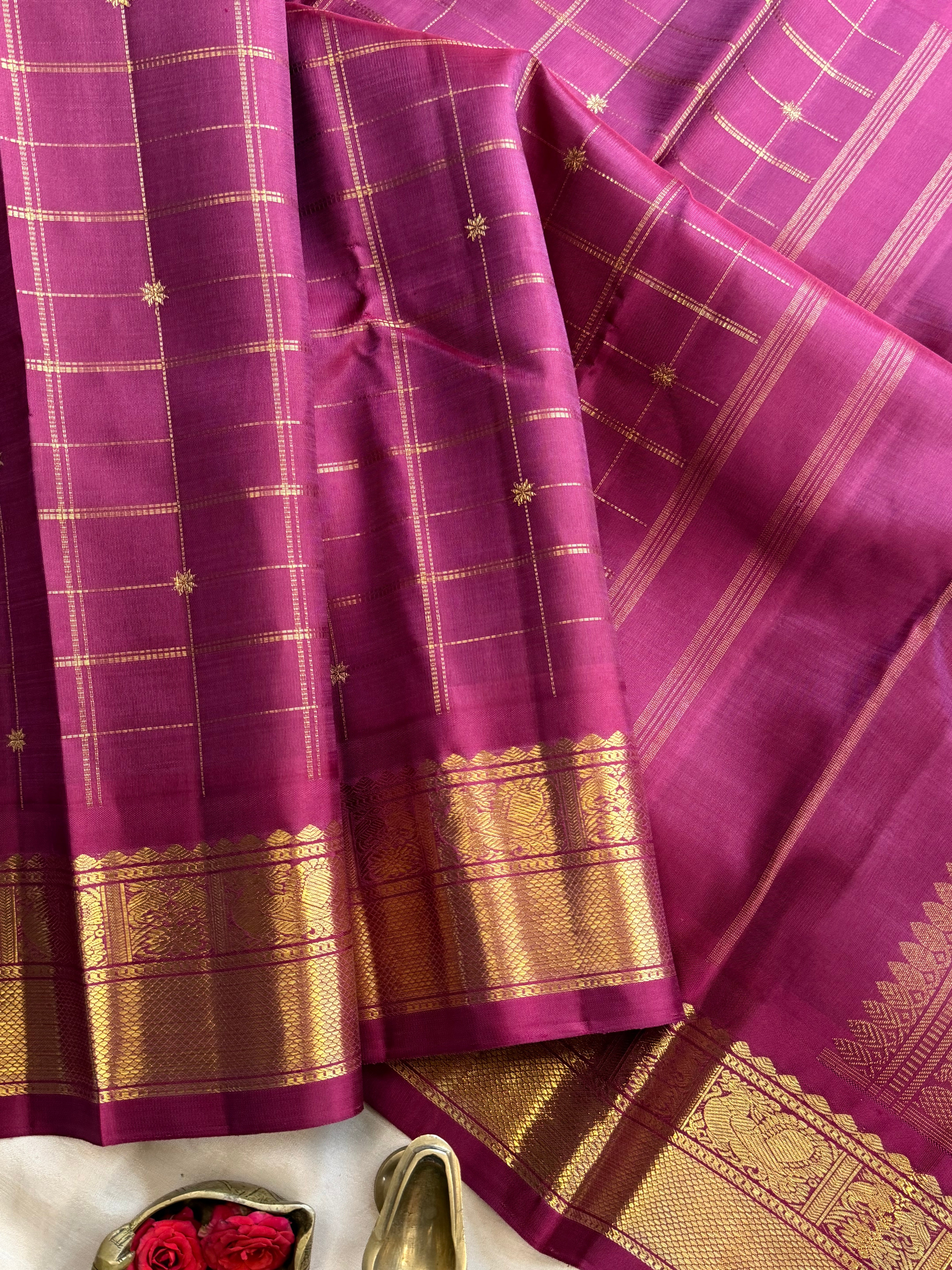 Mauve pink Zari Kattam star Butta / kanjipuram silk