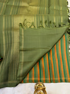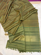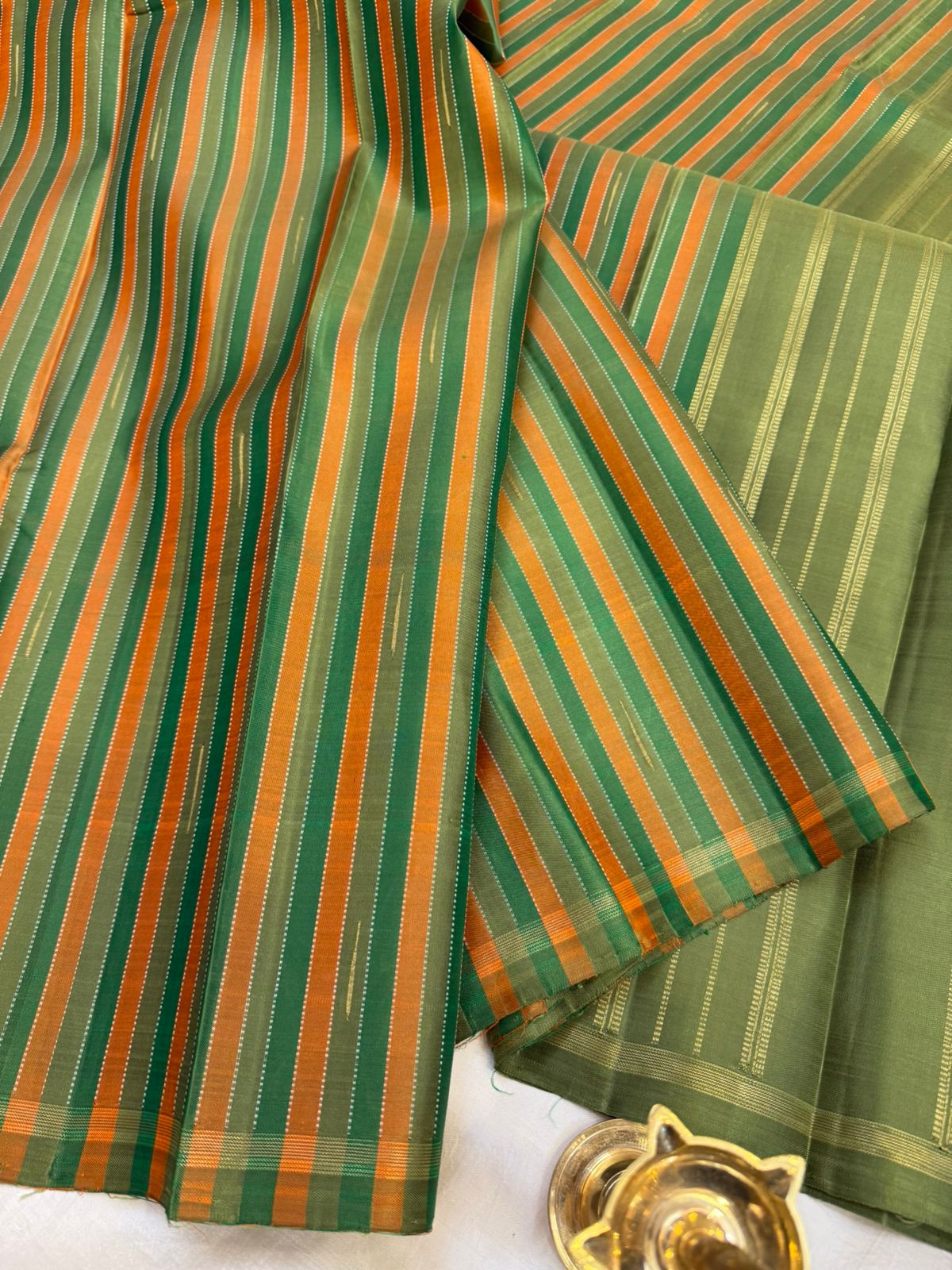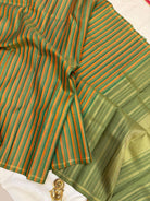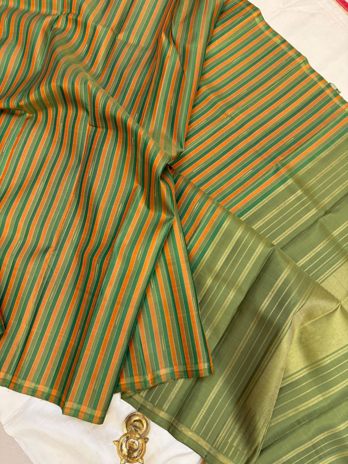 Mehandi green and mustard stripes with malli moggu/ kanjipuram silk