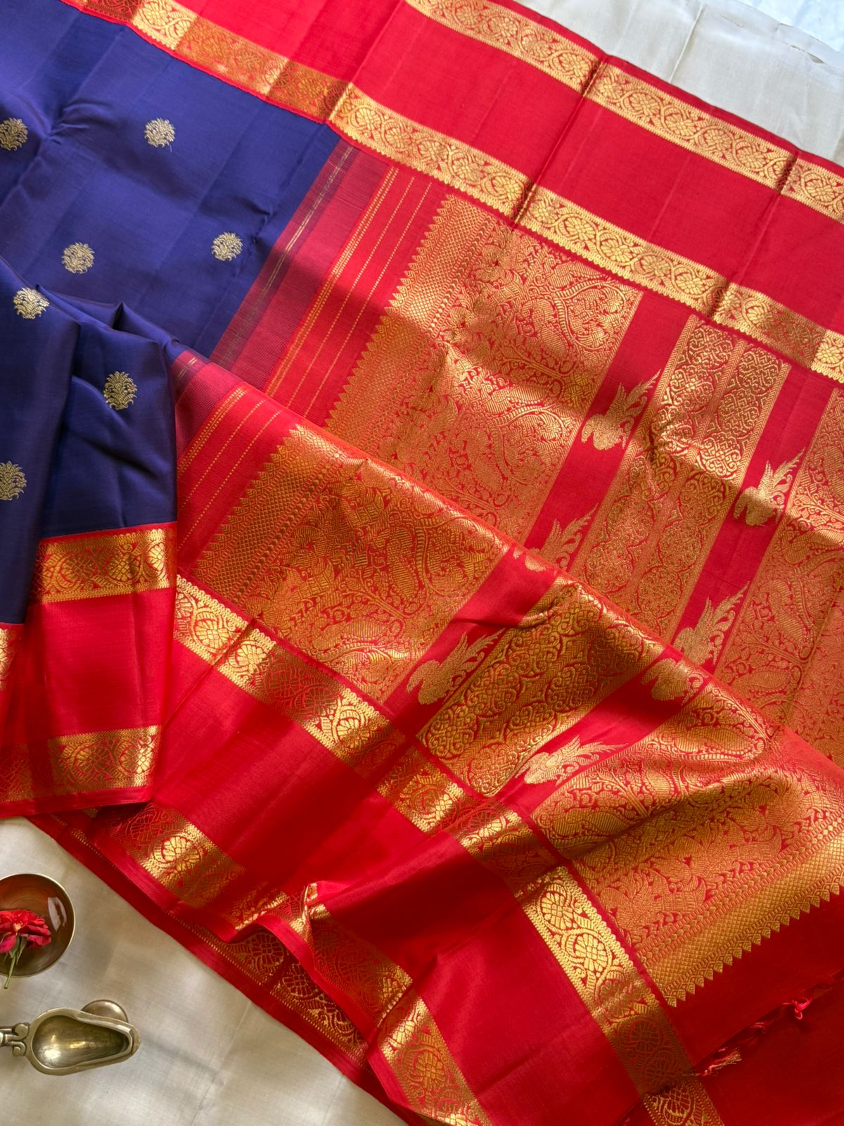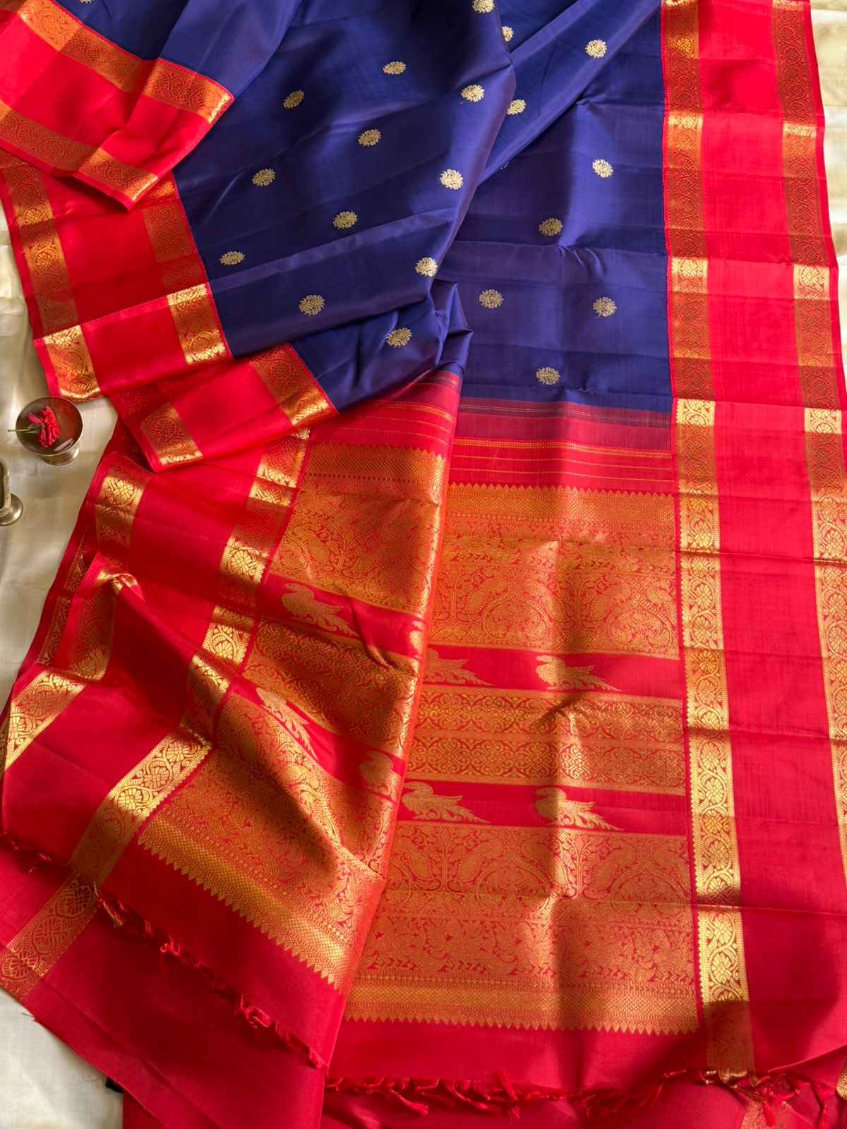 Ms blue rettapet kodi pet border kai korvai / kanjipuram silk