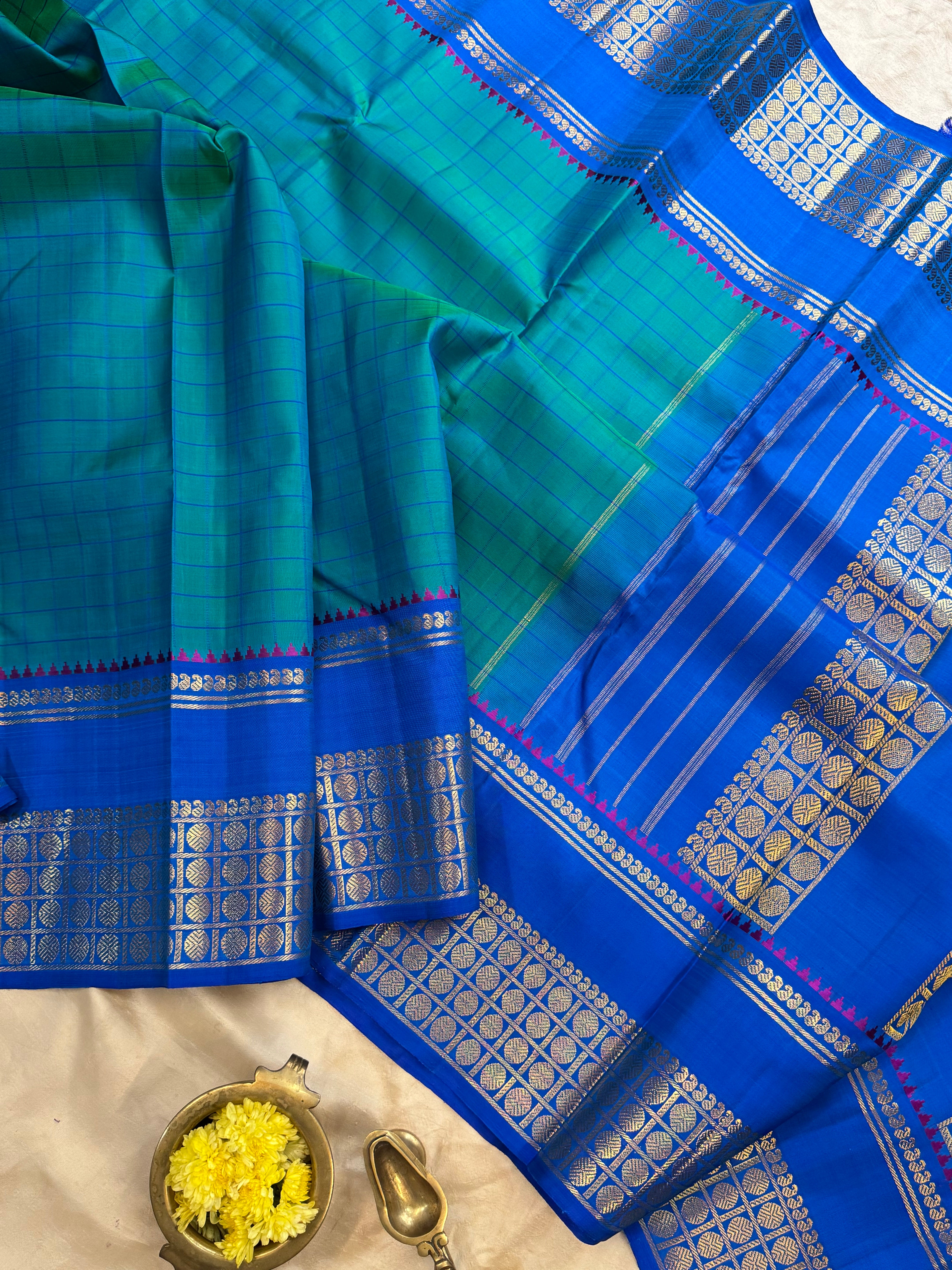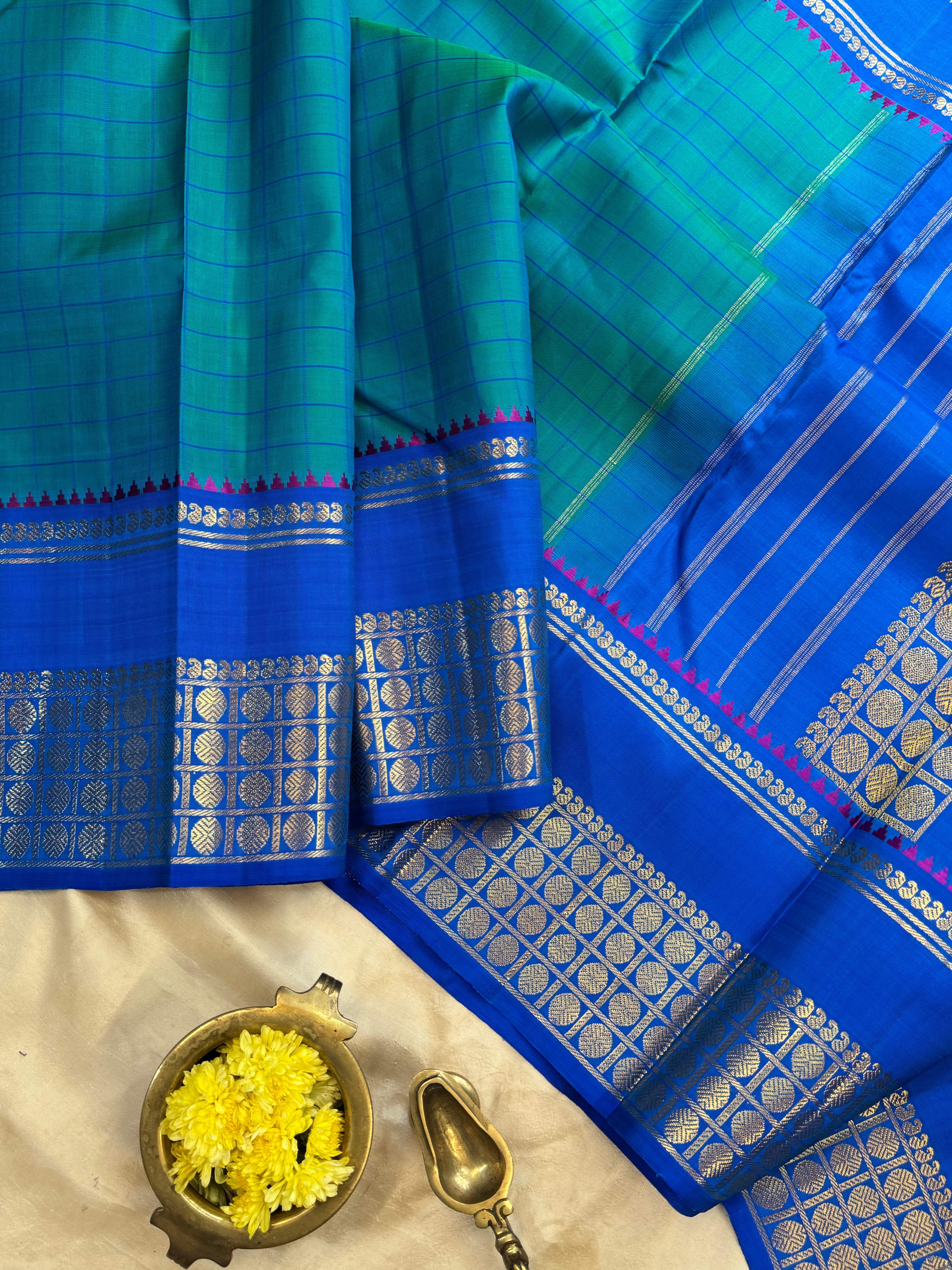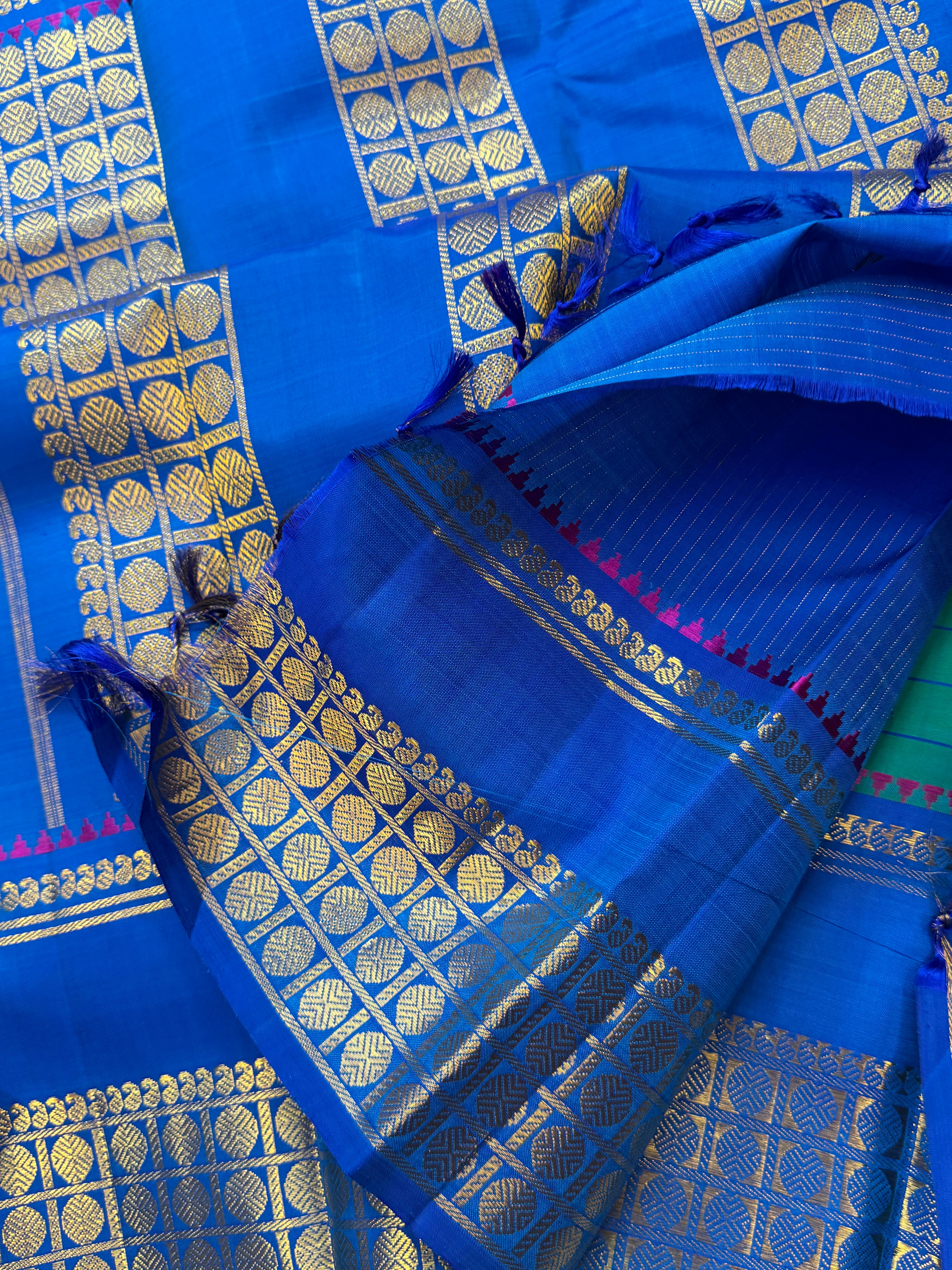 Nichyathartham edit : sea blue varisapet kanjipuram silk