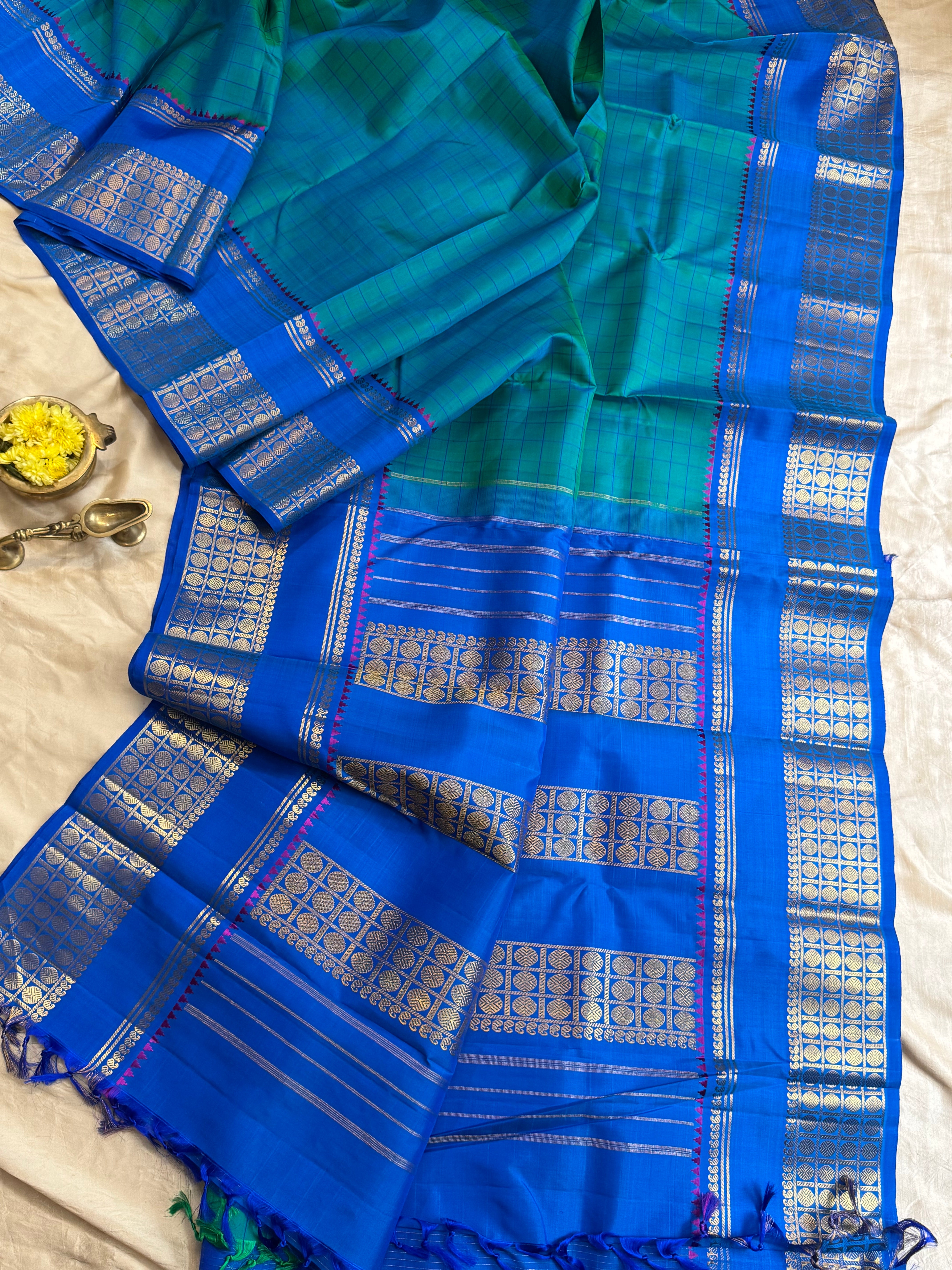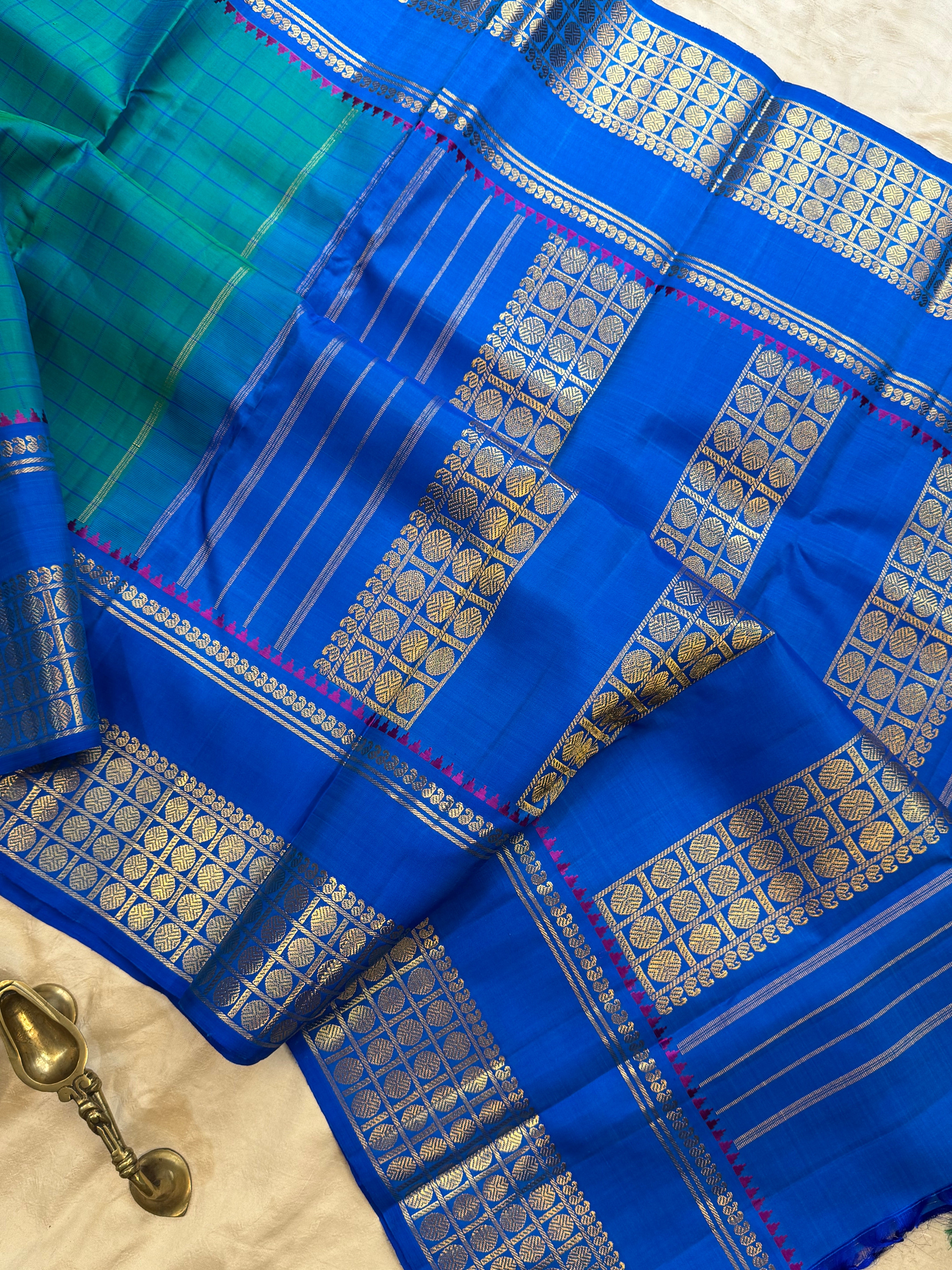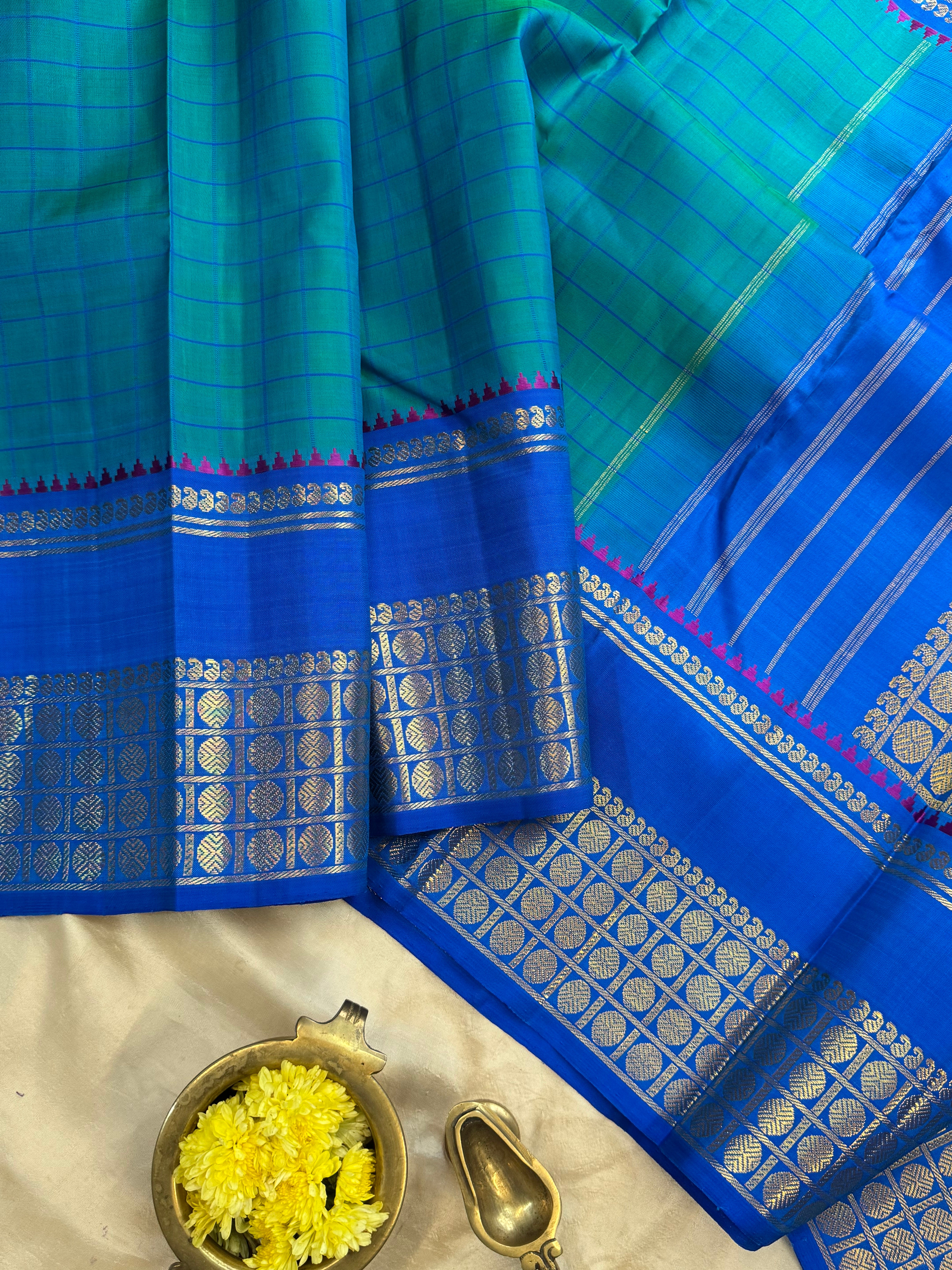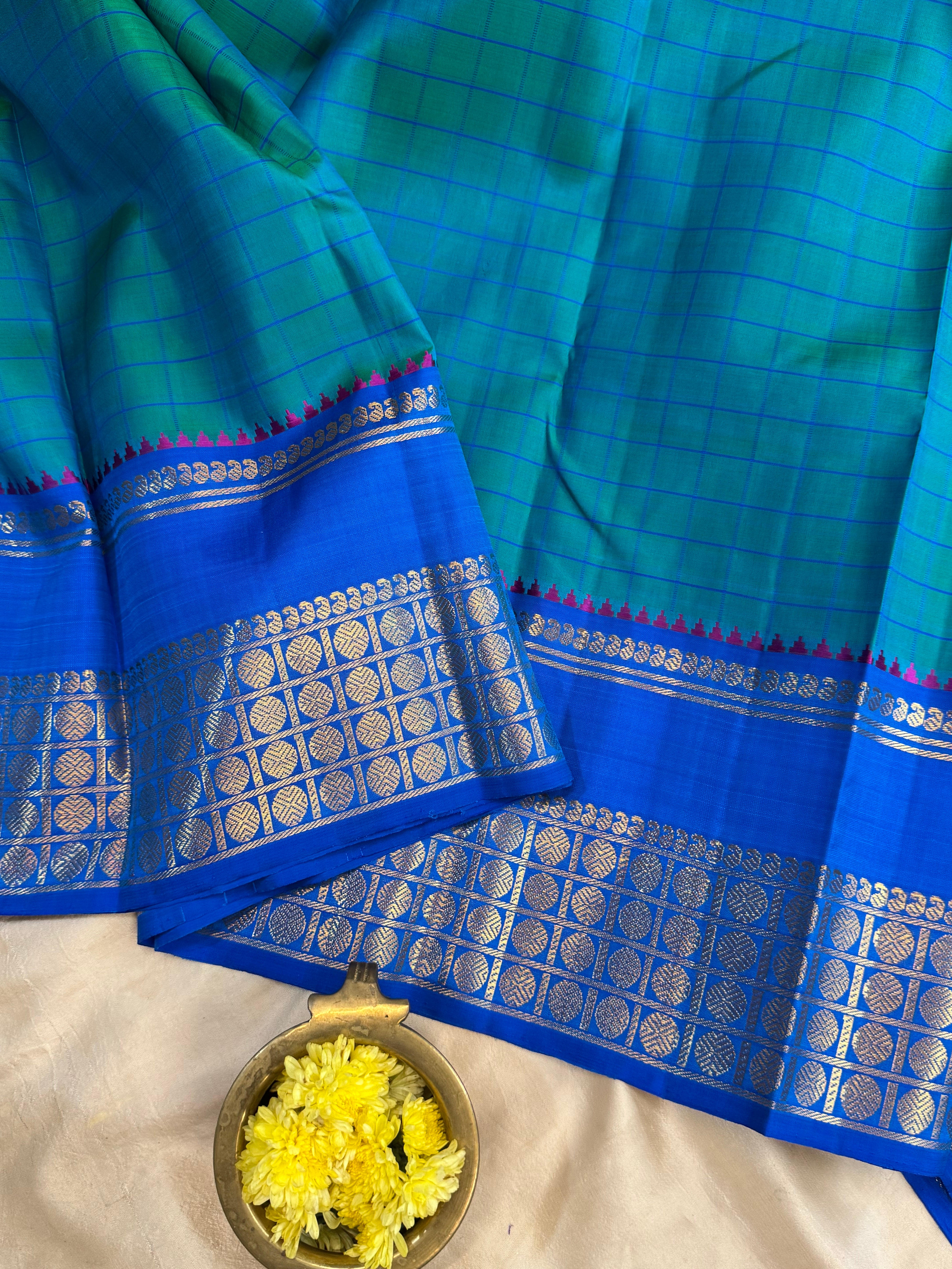 Nichyathartham edit : sea blue varisapet kanjipuram silk
