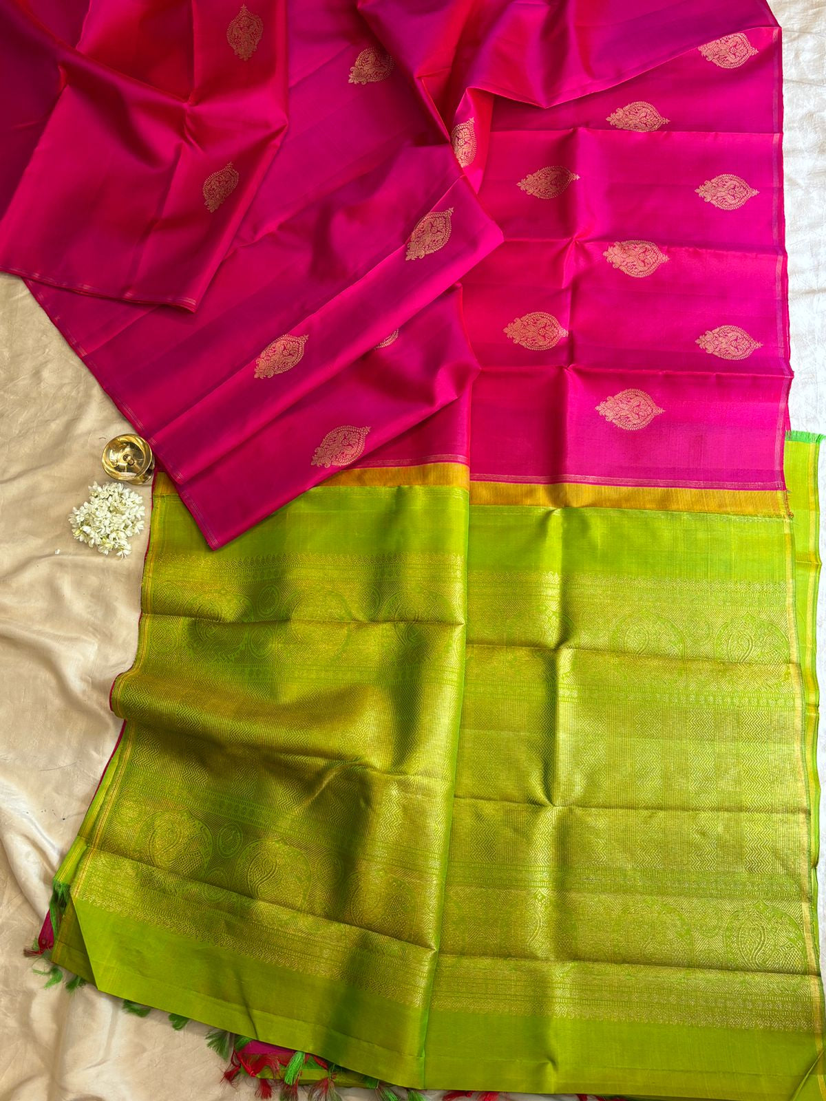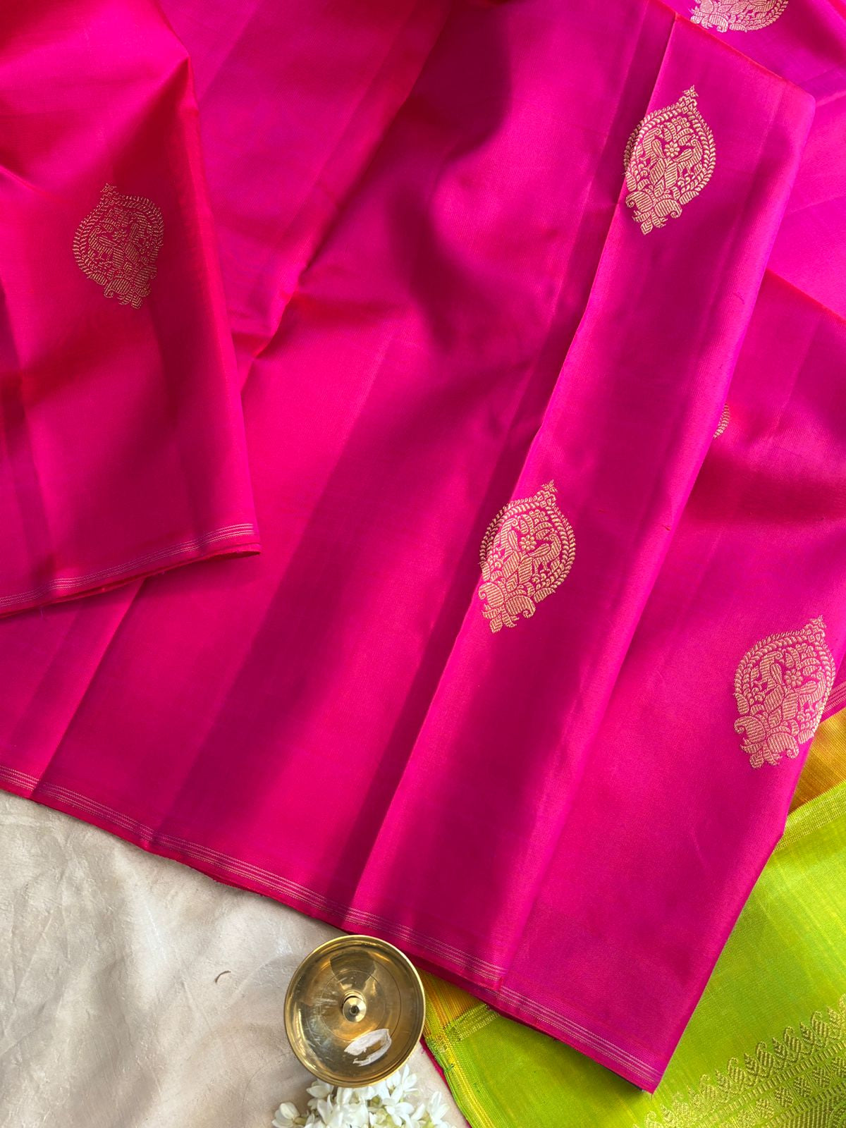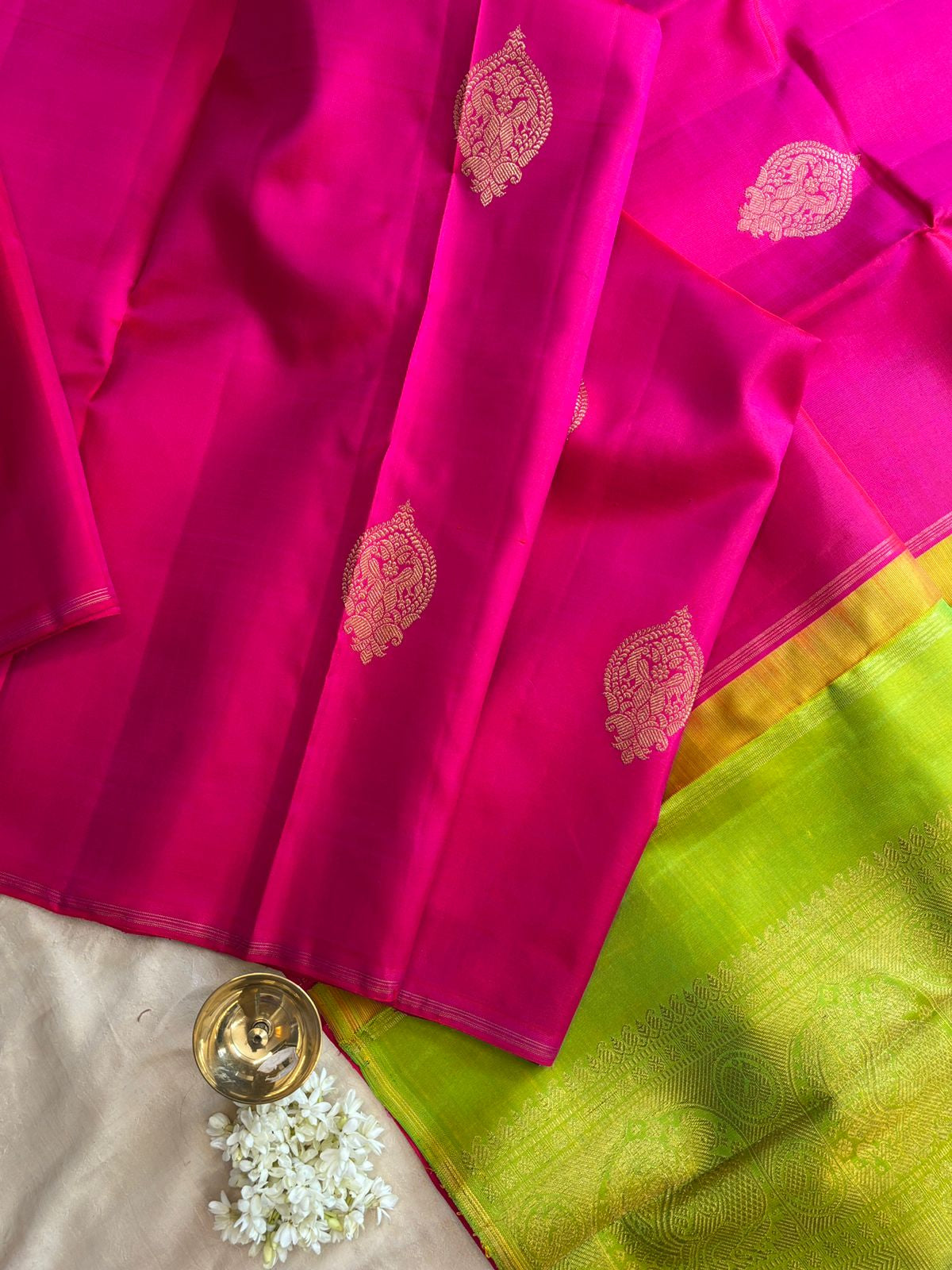 Pink jodi kili butta borderless/ Kanjipuram silk