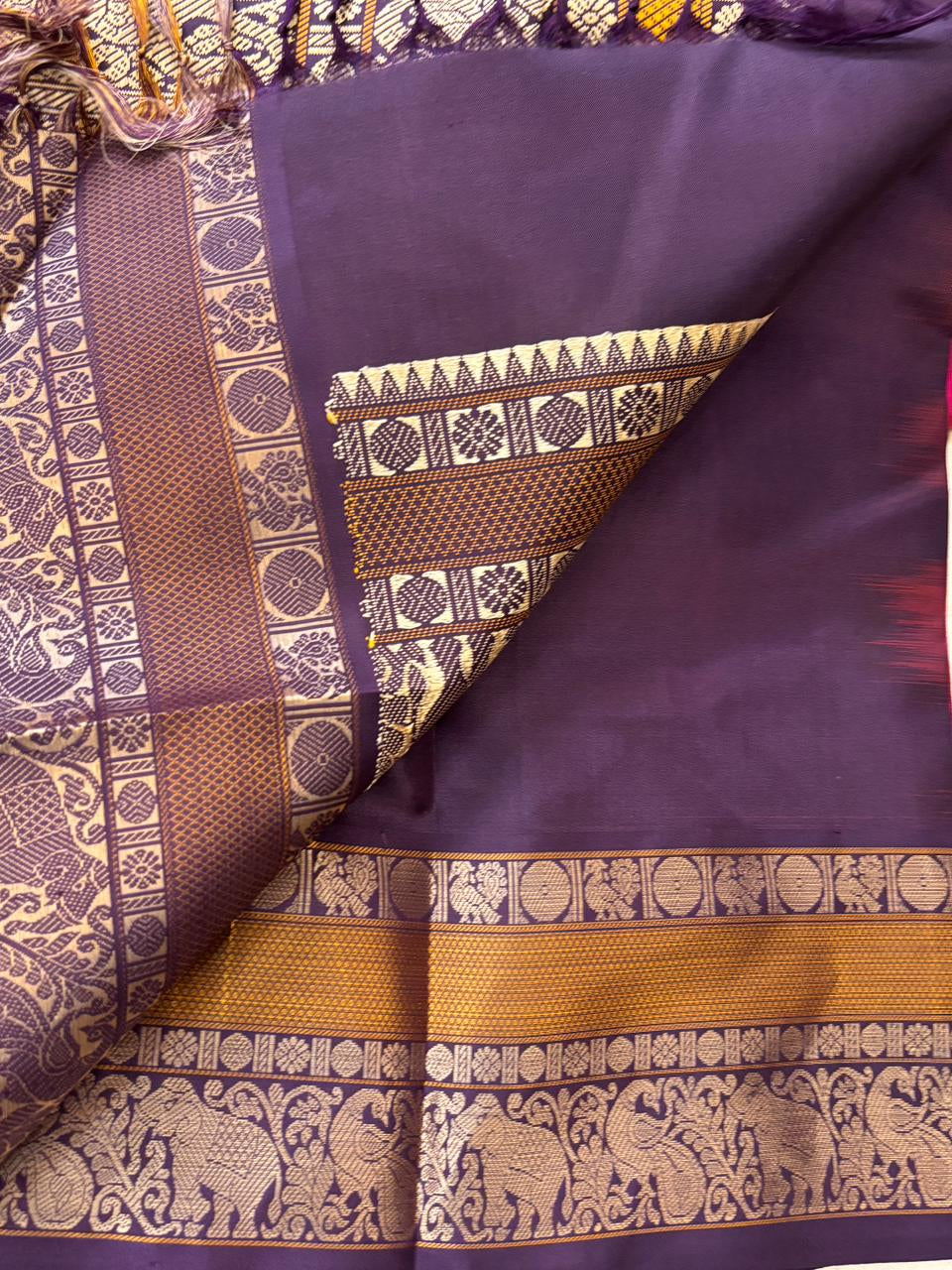 Pink shot red korvai / kanjipuram silk