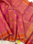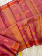 Pinkish orange Iruthalaipakshi butta and rettapet border - unique pallu / kanjipuram silk