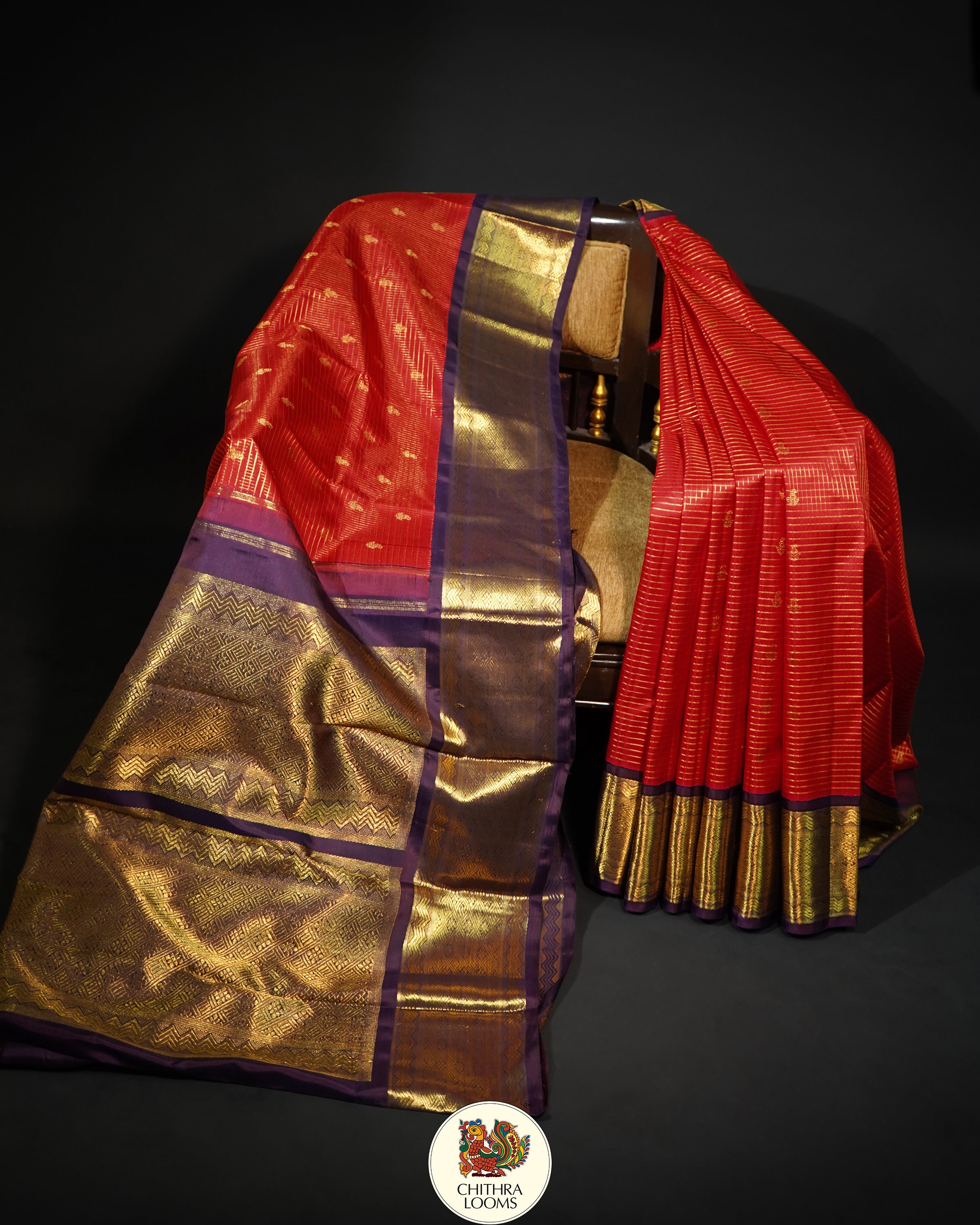 Rare find vintage inspired Korvai Zari Kattam kanjipuram silk.