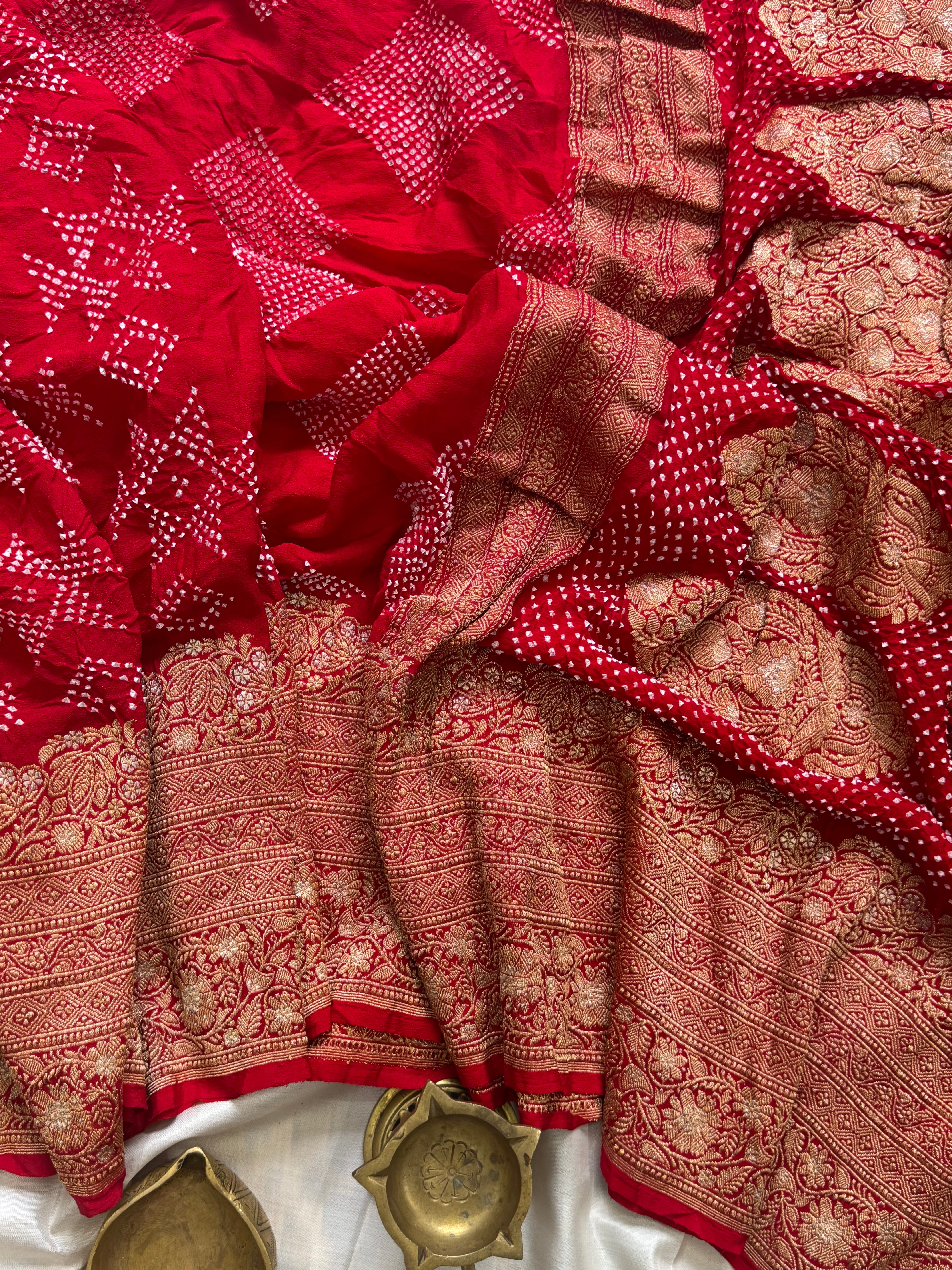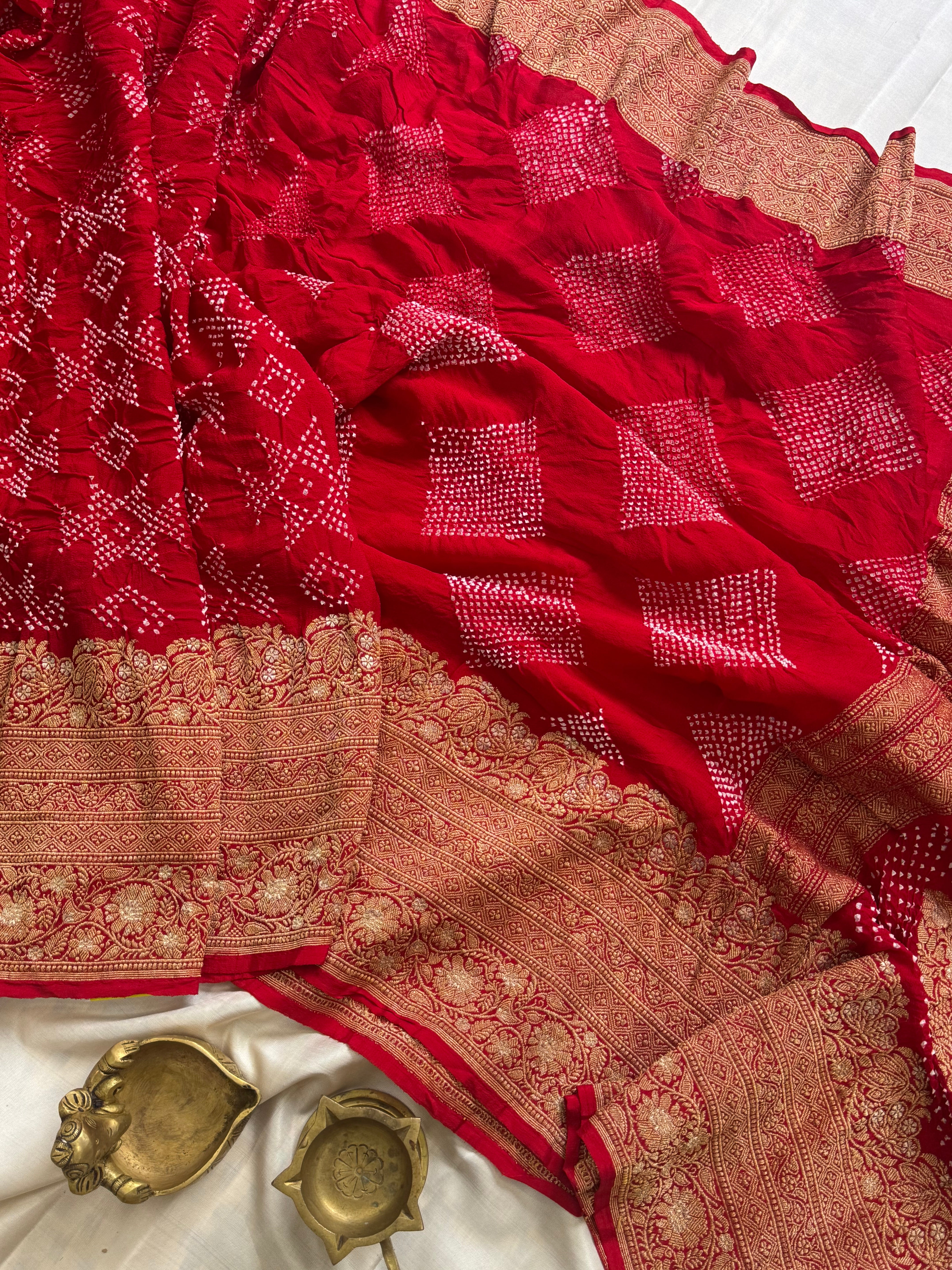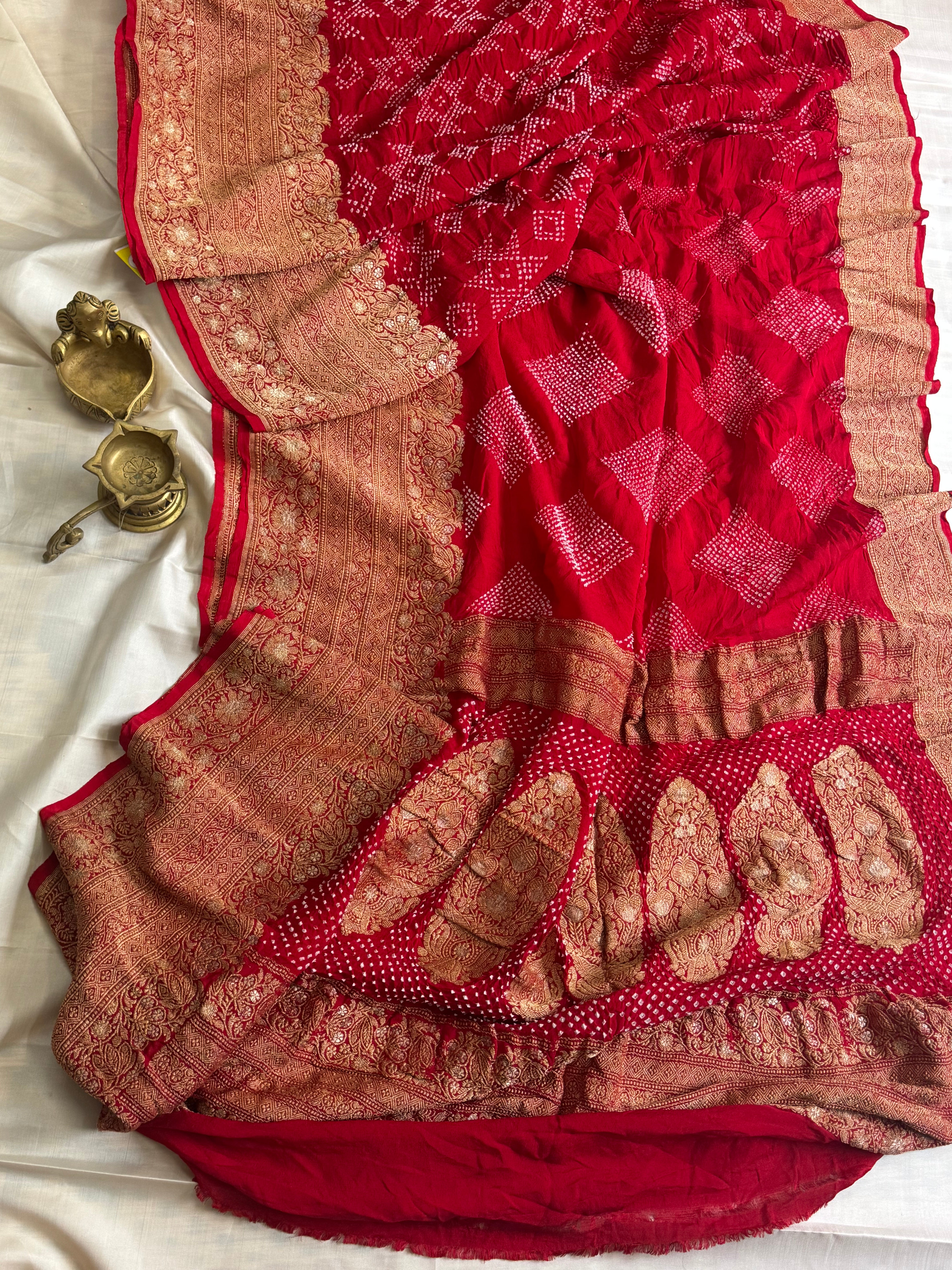 Red pure georgette Bandhini saree