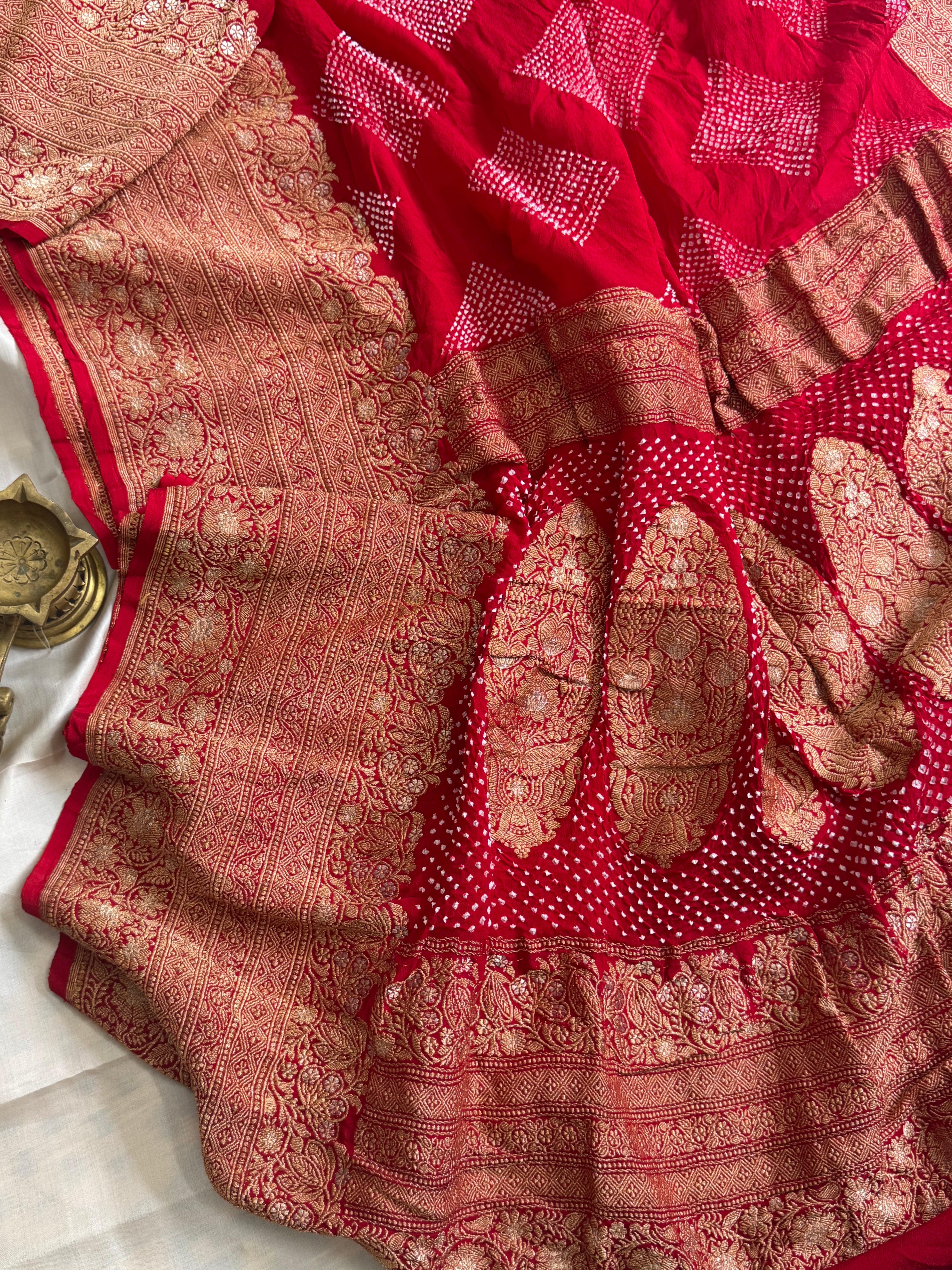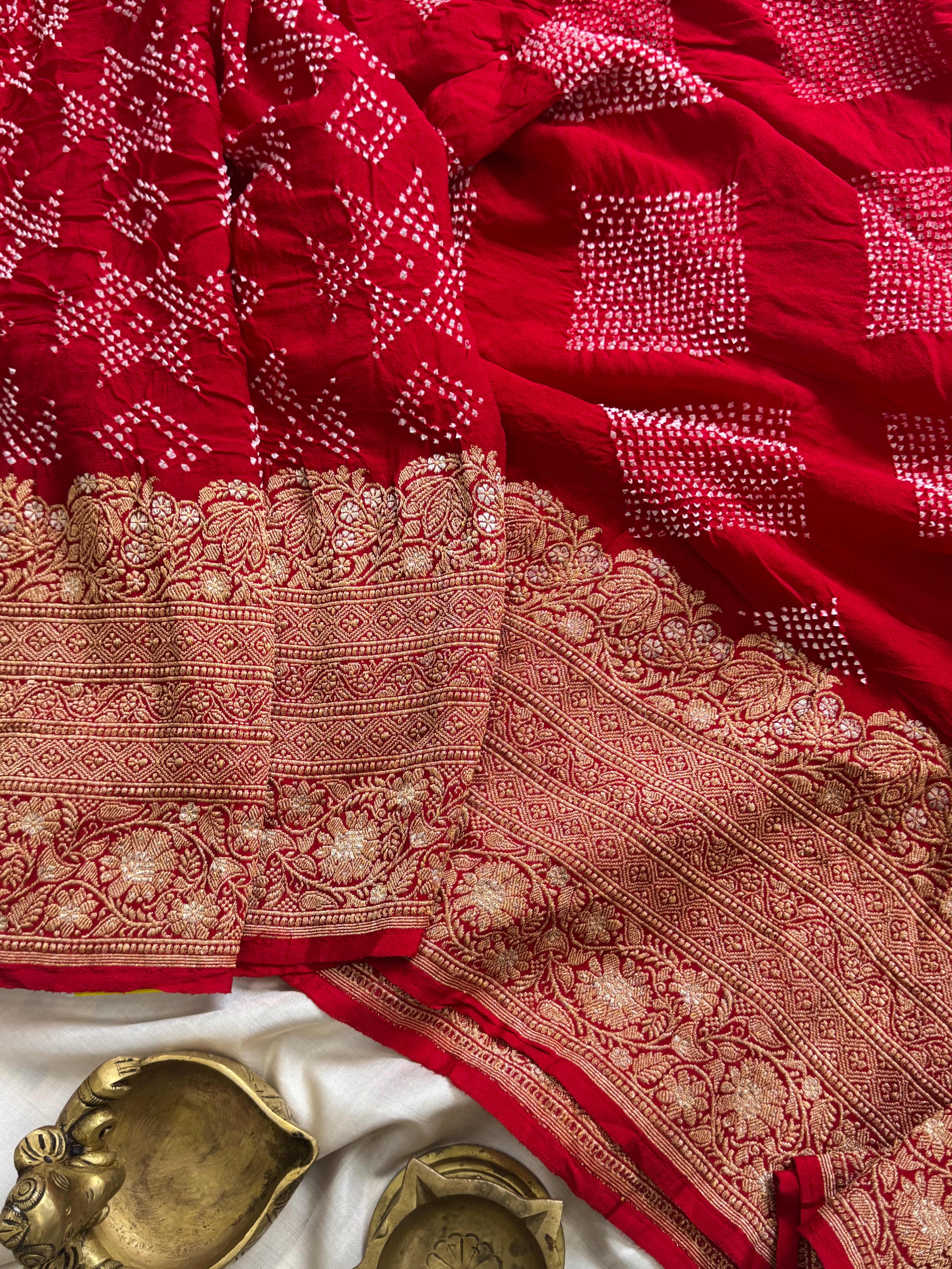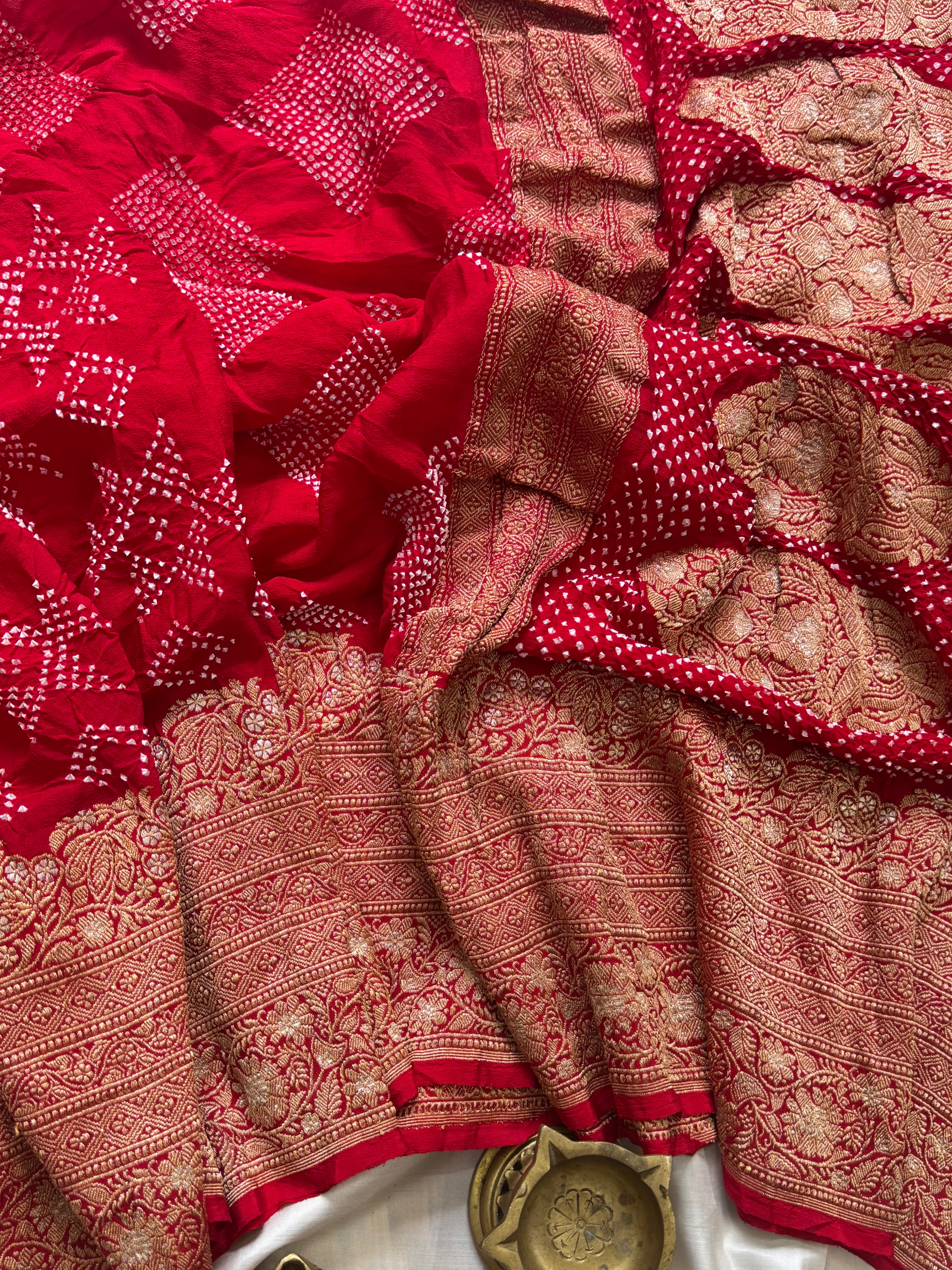 Red pure georgette Bandhini saree
