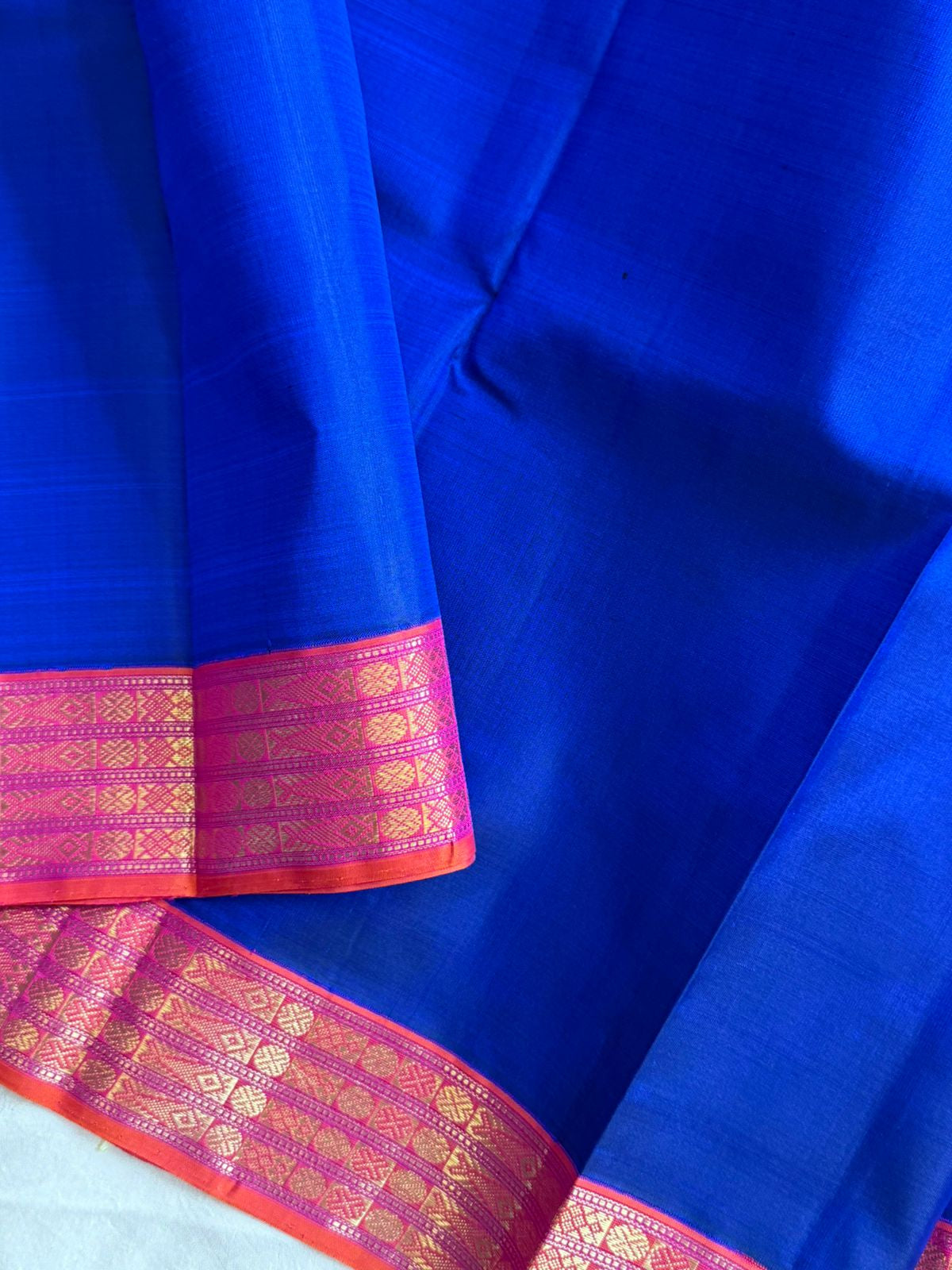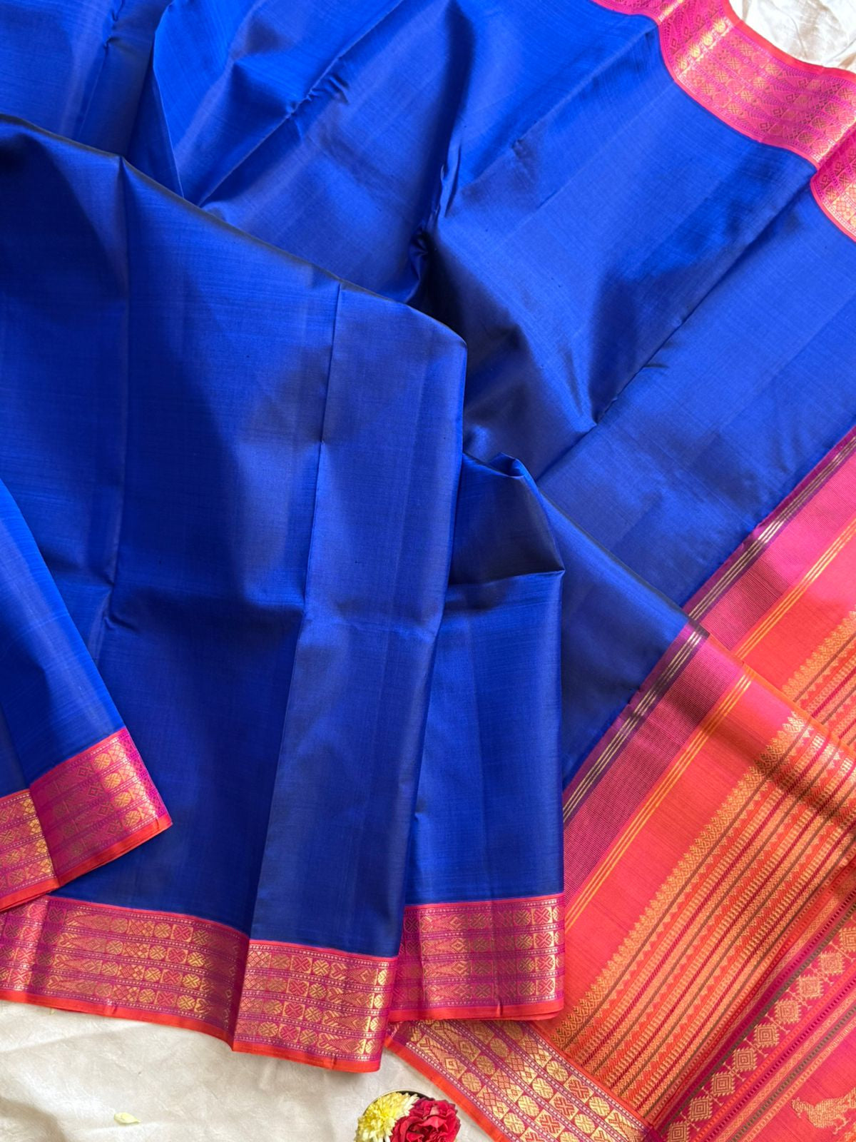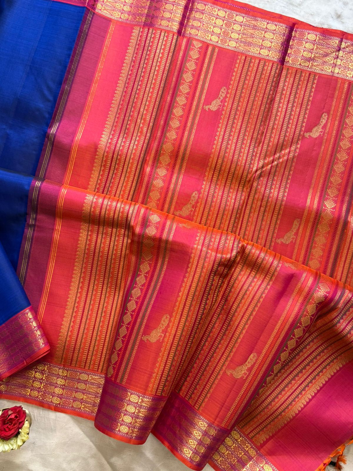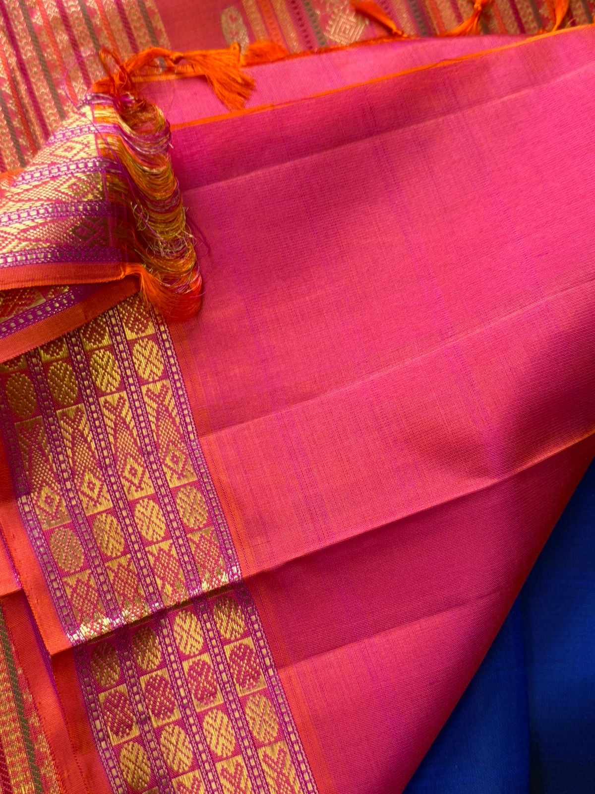 Royal and pinkish orange (rudraksham and fish pet border) kai korvai / kanjipuram silk
