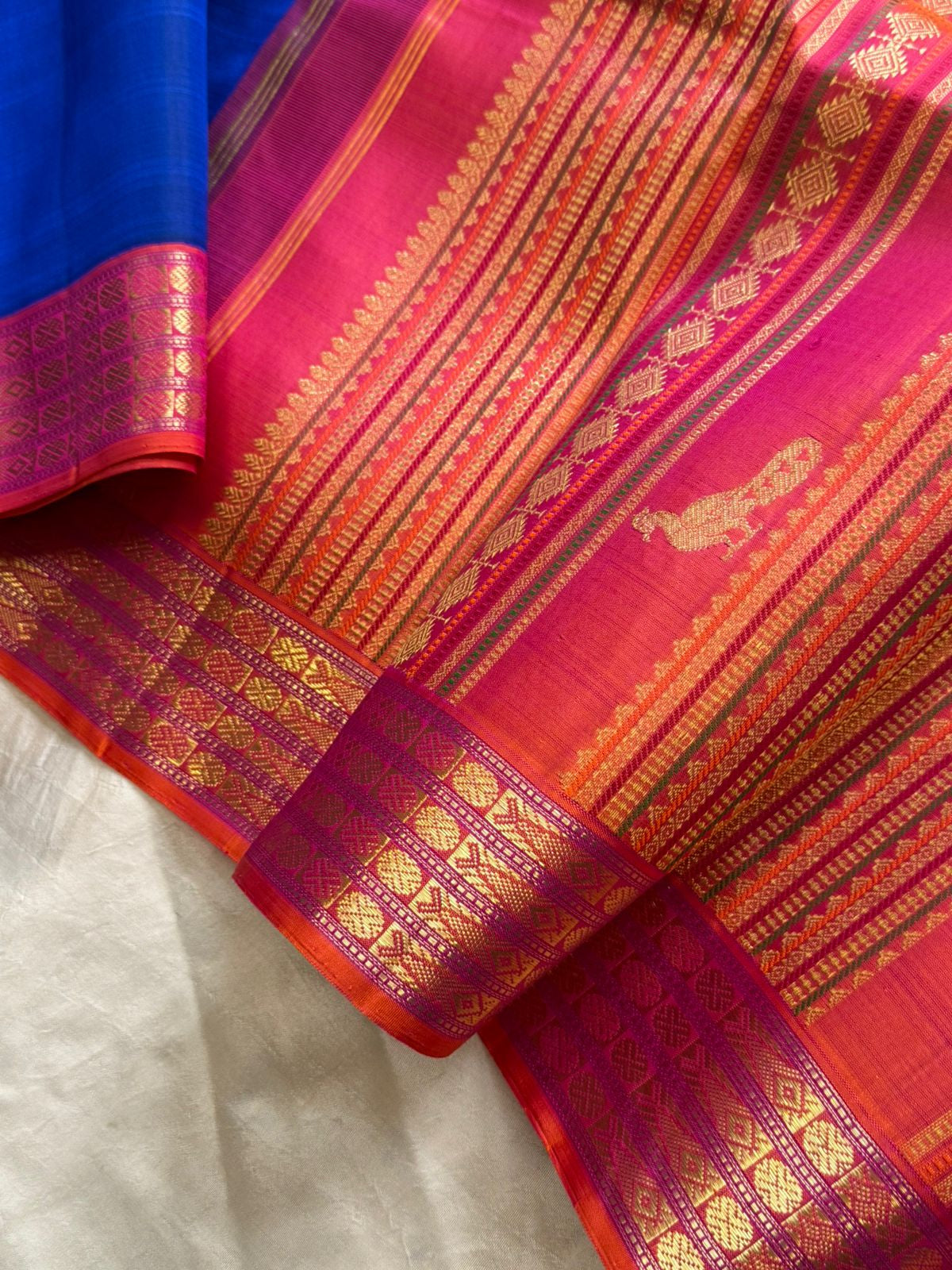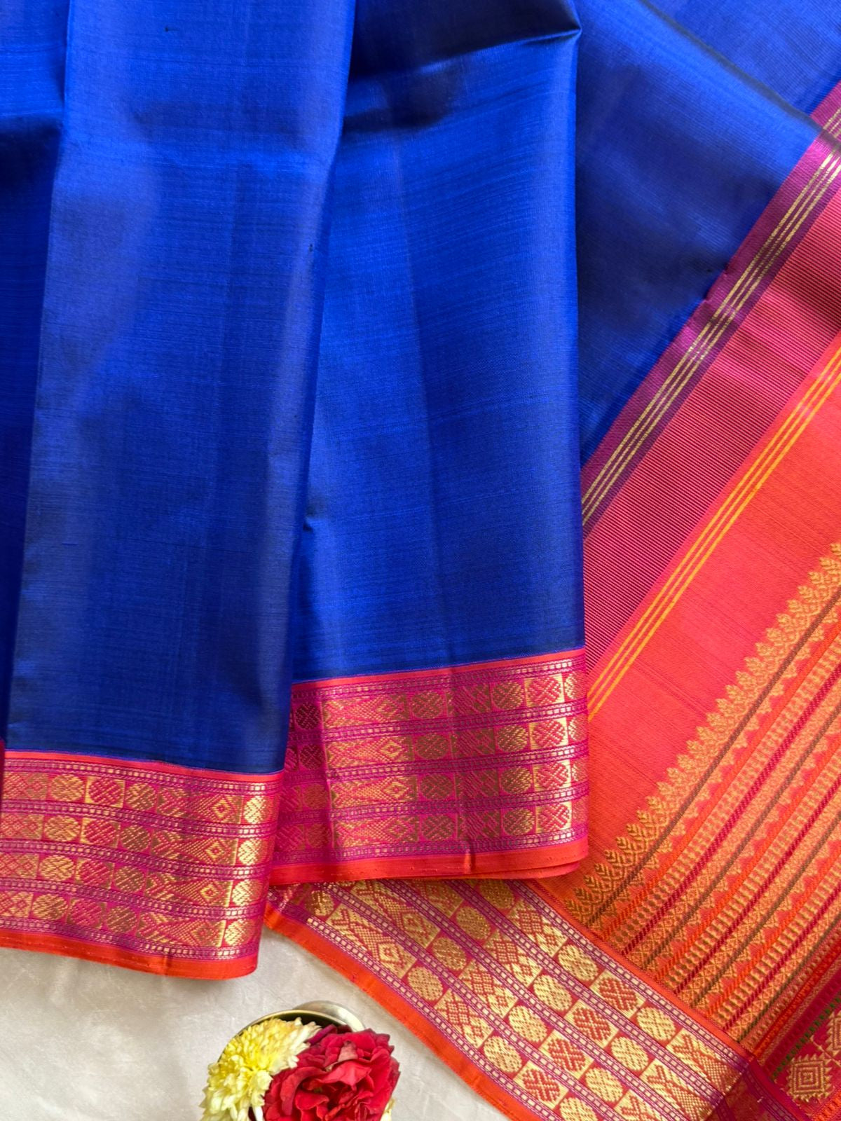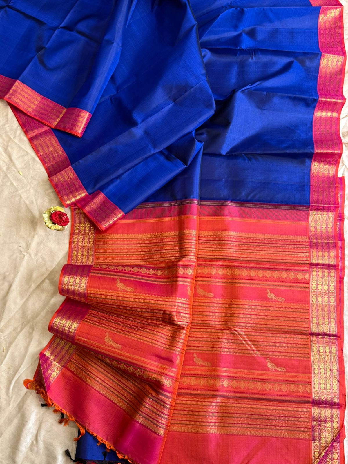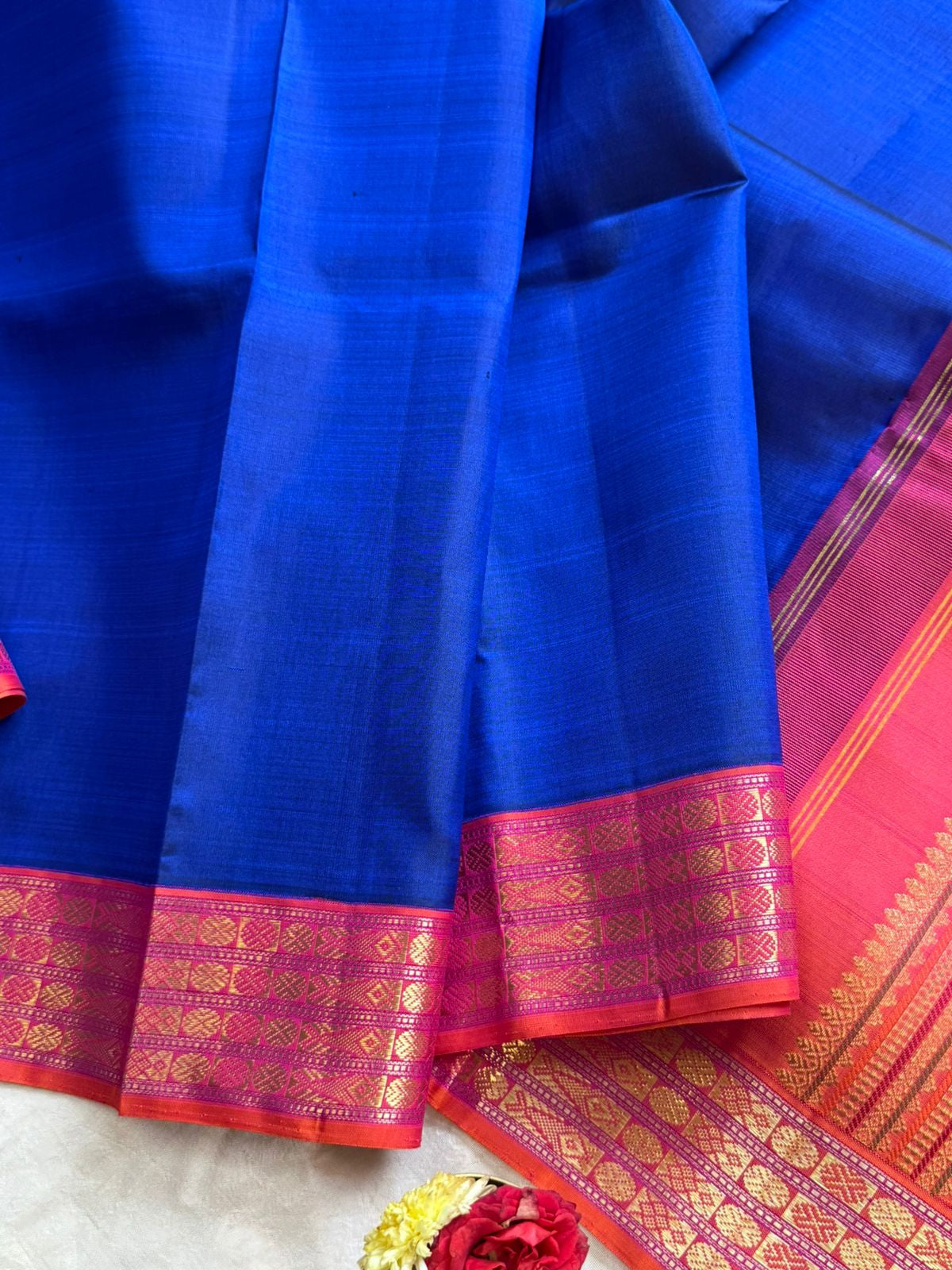 Royal and pinkish orange (rudraksham and fish pet border) kai korvai / kanjipuram silk