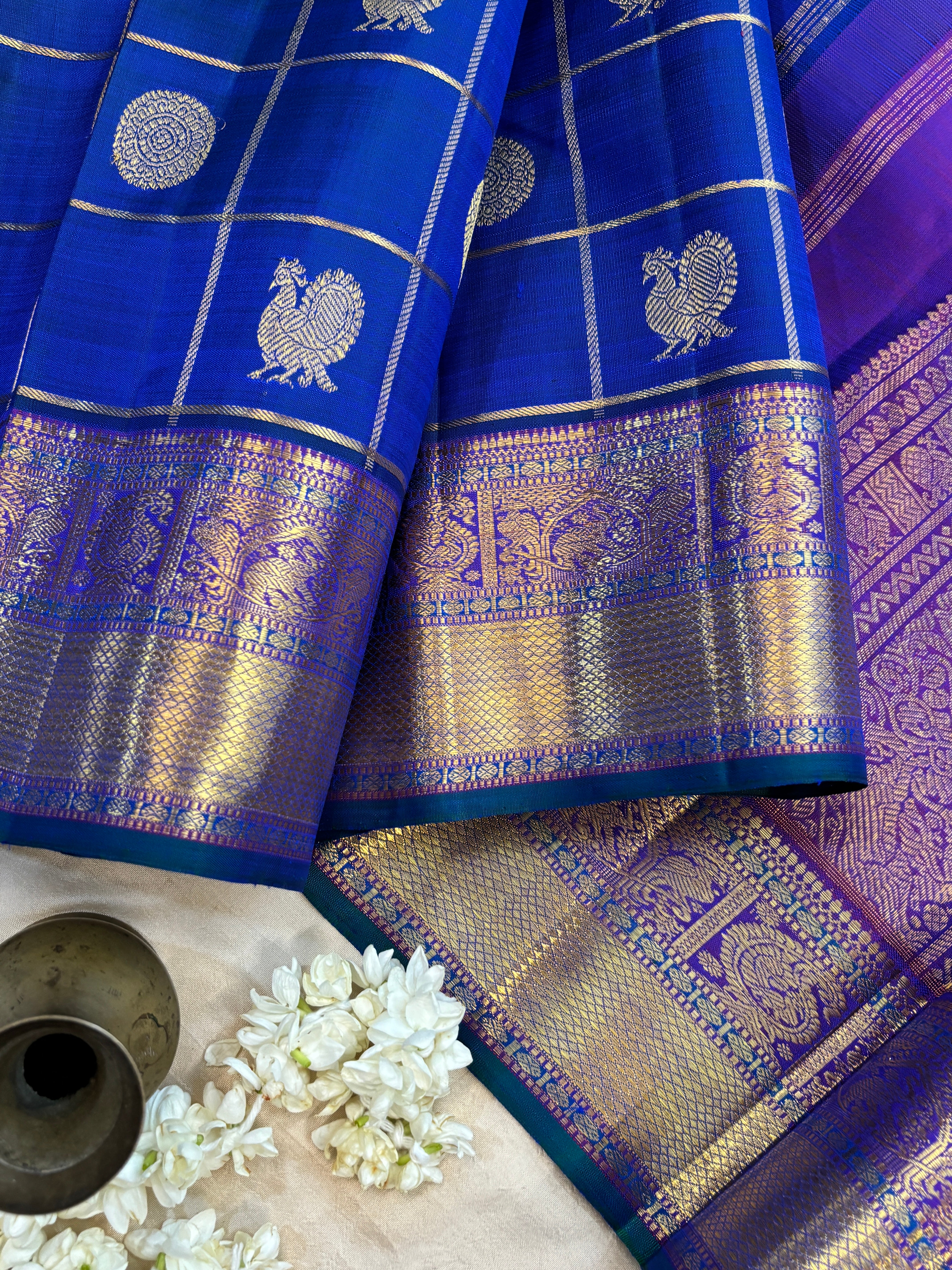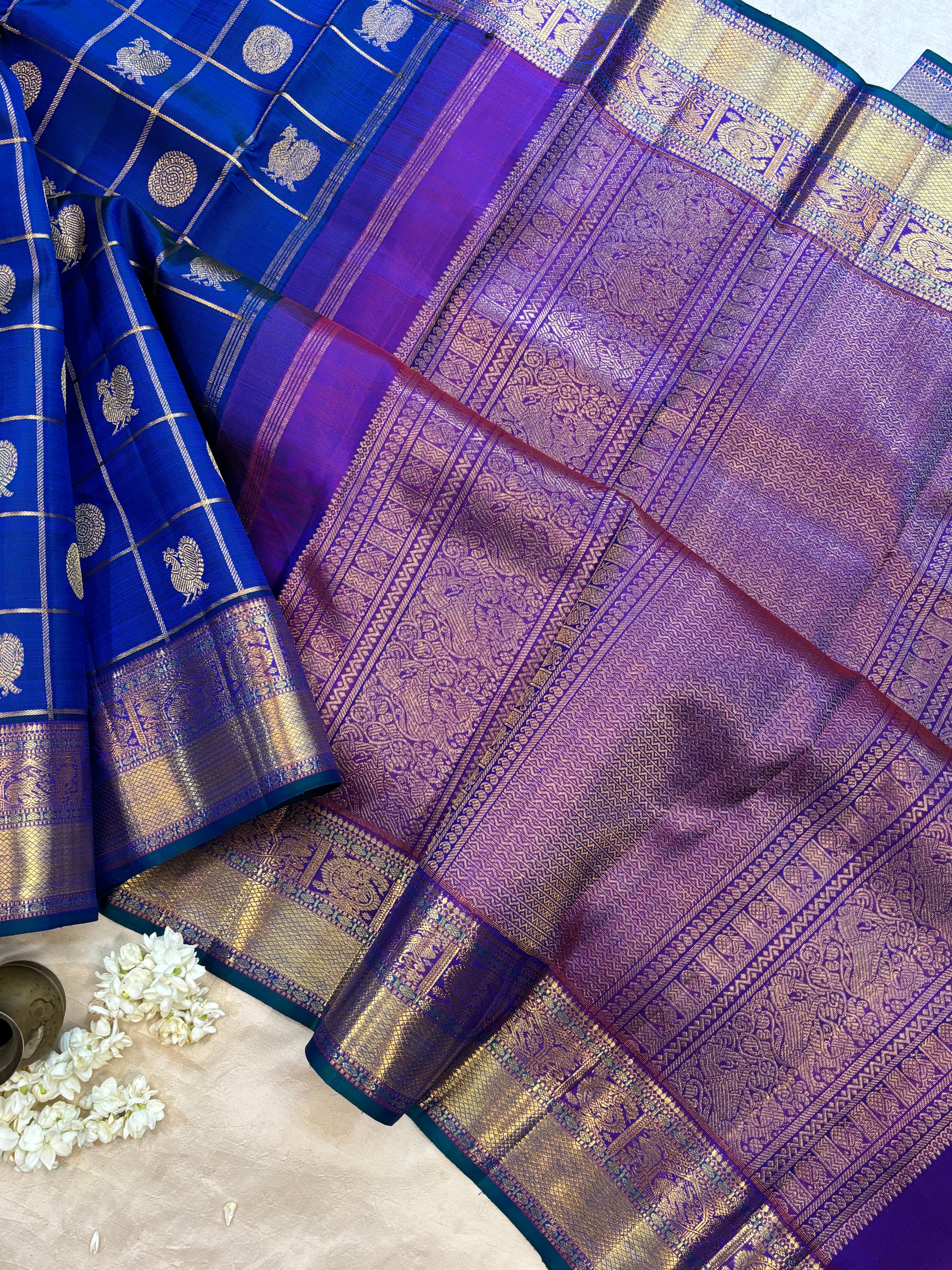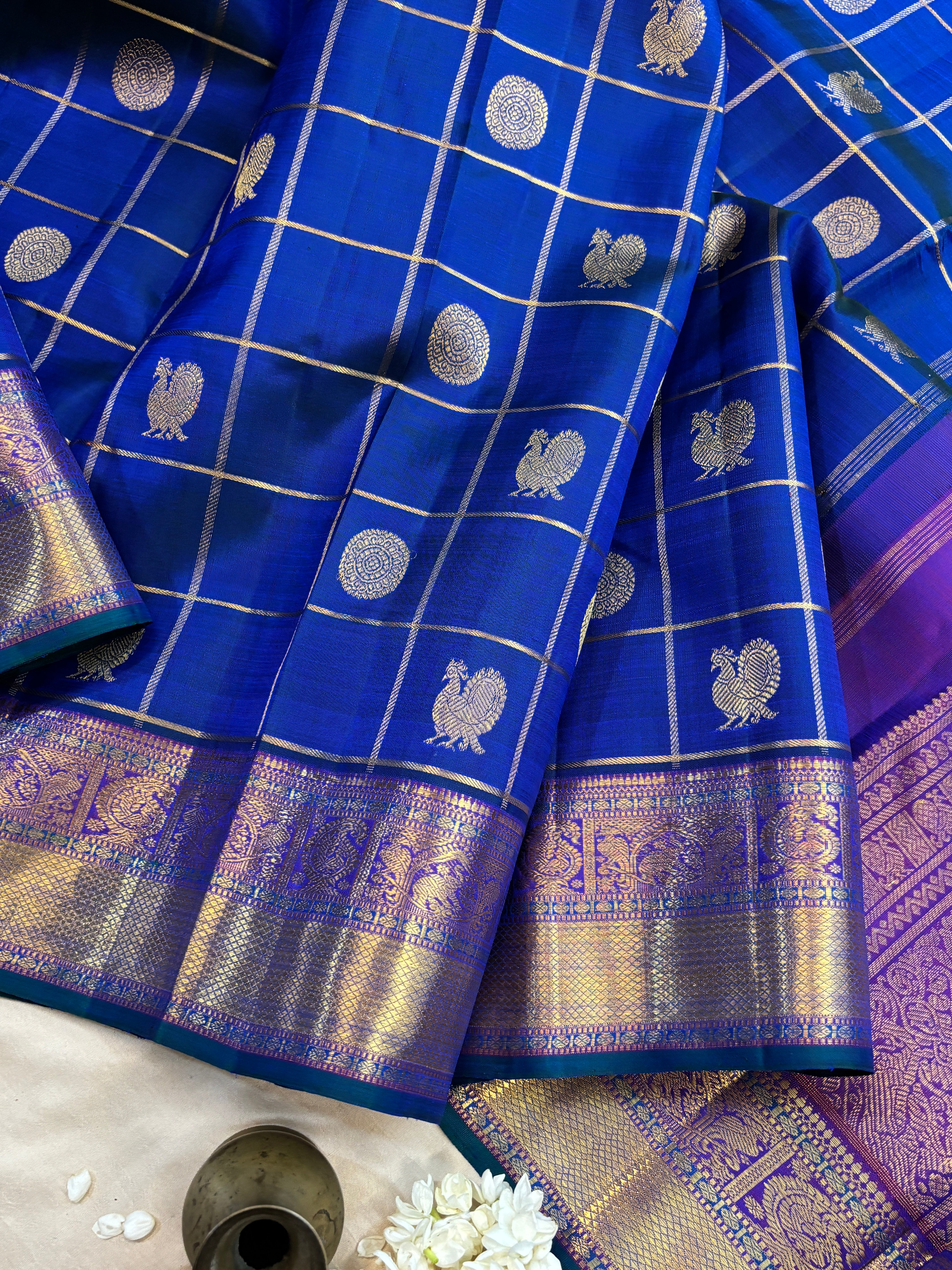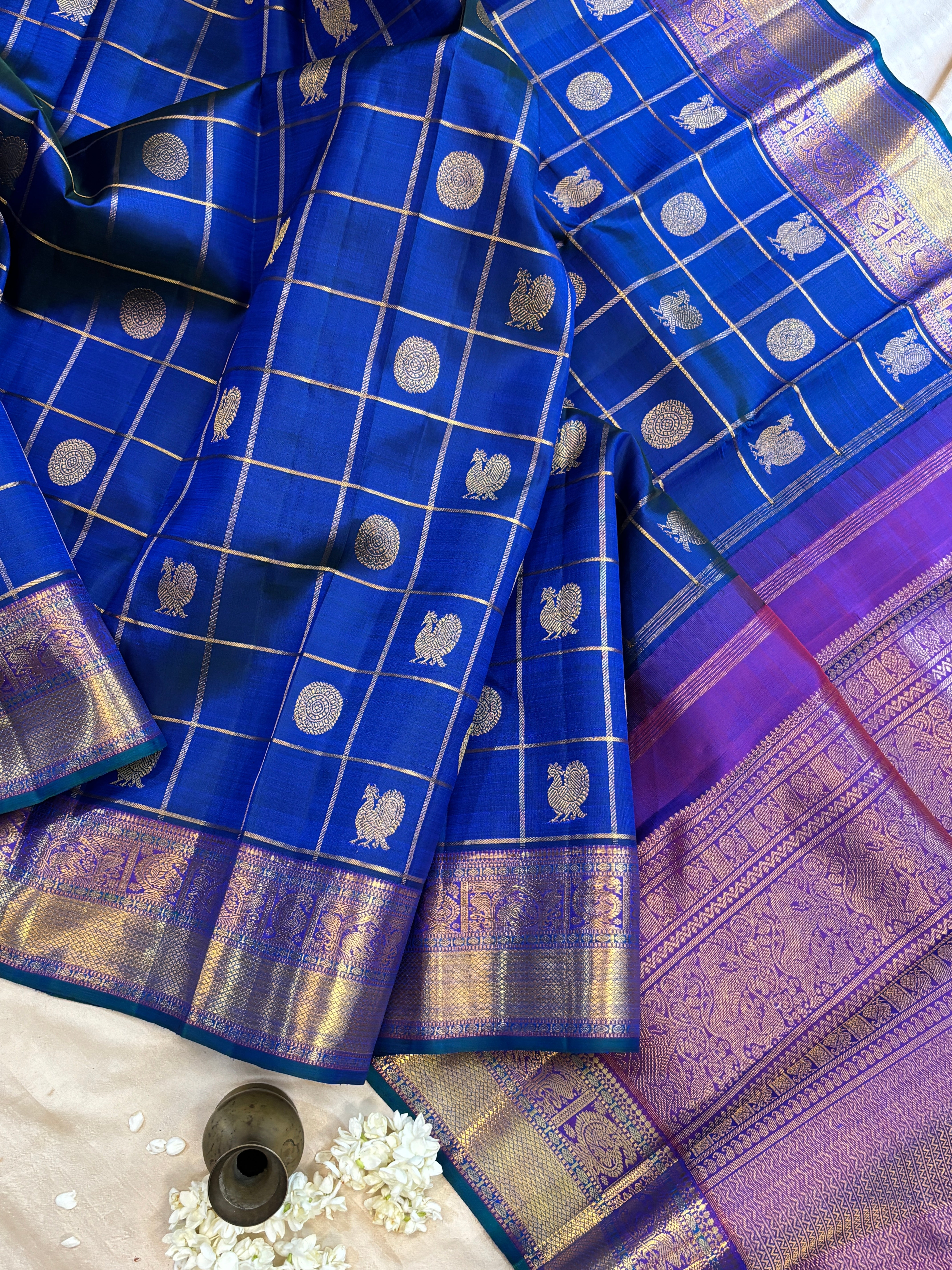Royal blue kattam butta / kanjipuram silk