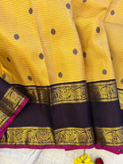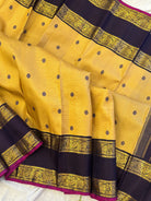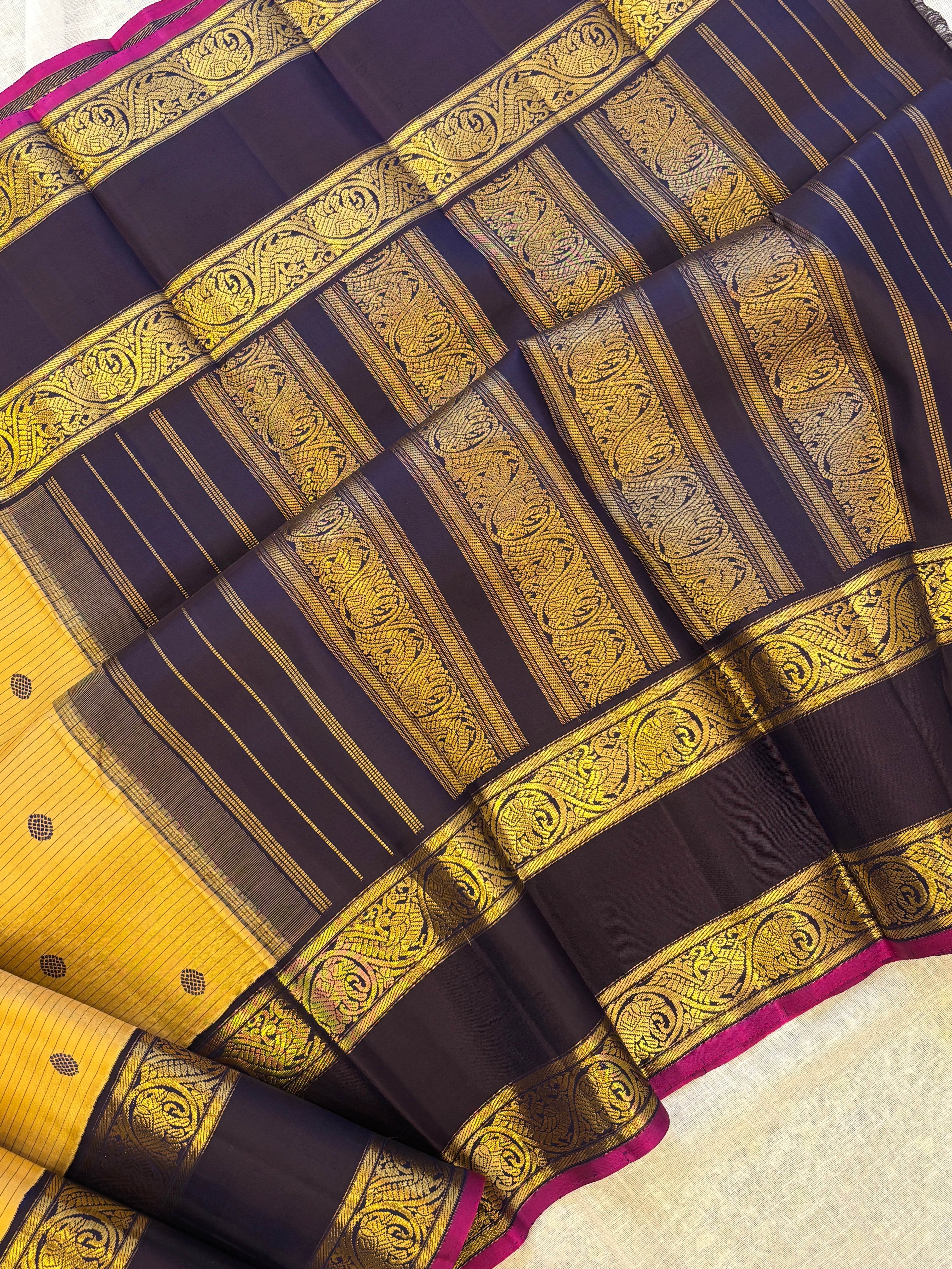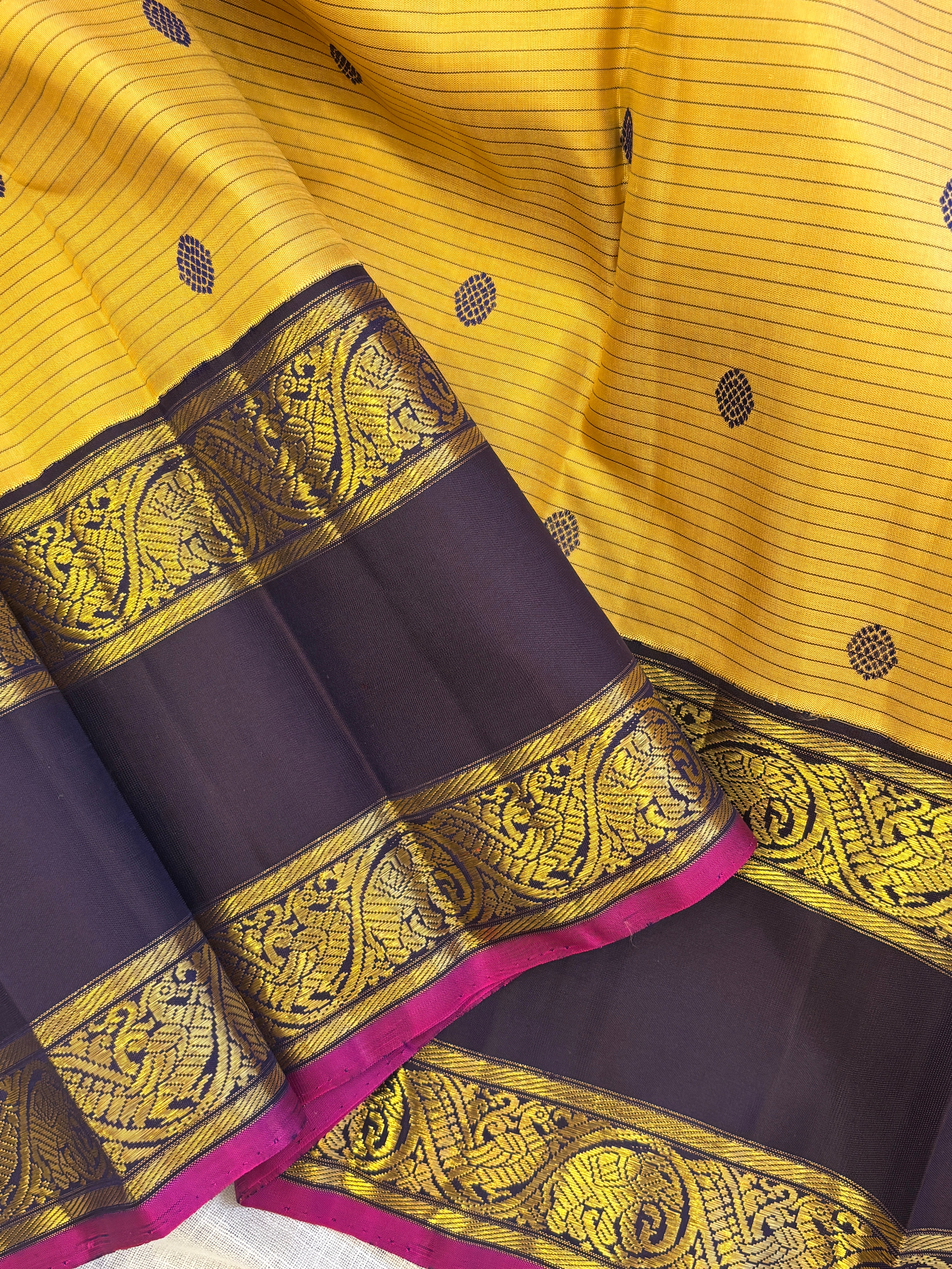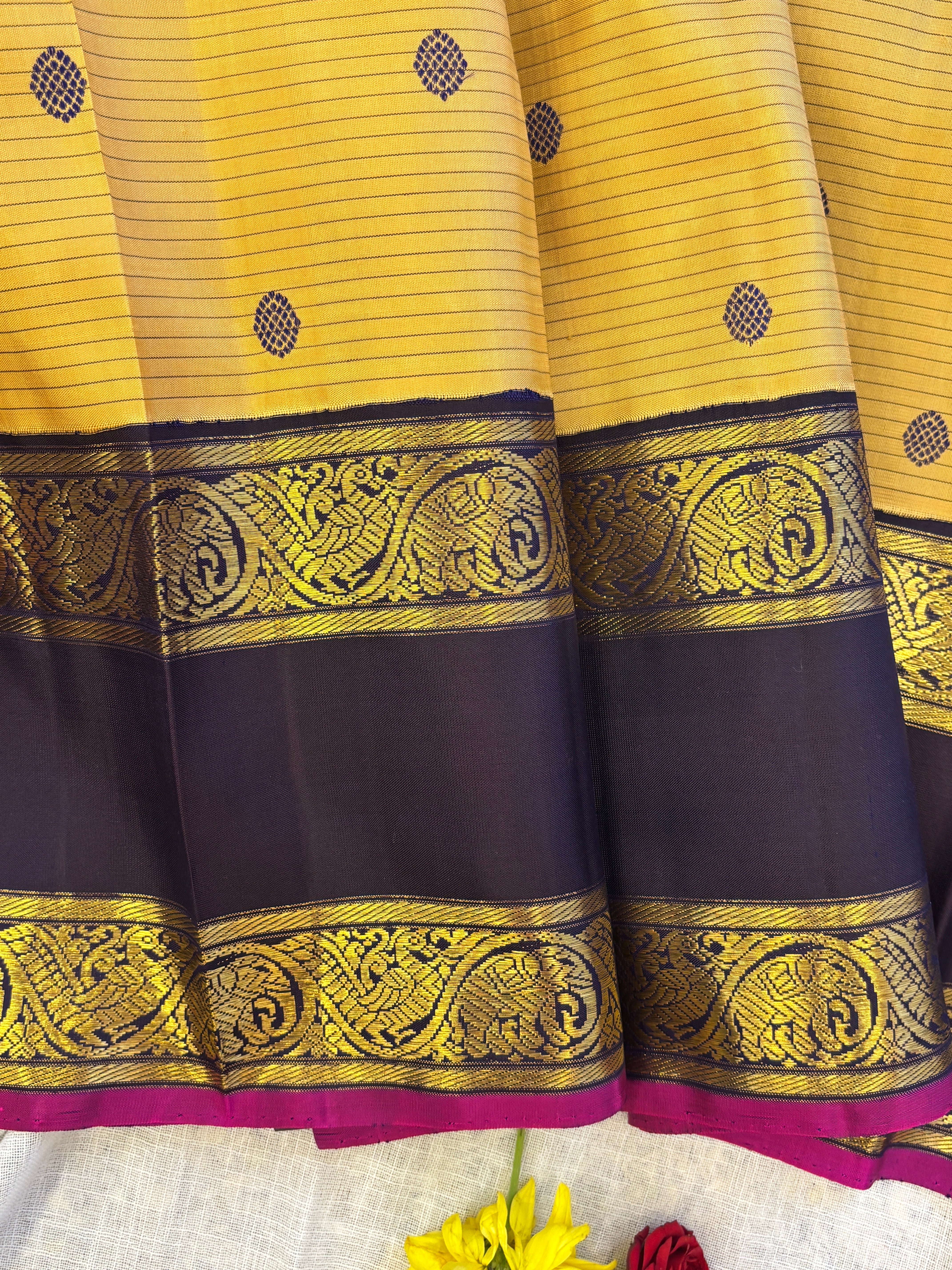 Sandana manjal and blue rettapet adai woven border / kanjipuram silk