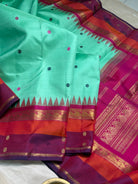 Shades of green : master piece apple green triple Palla Korvai Kanjipuram silk