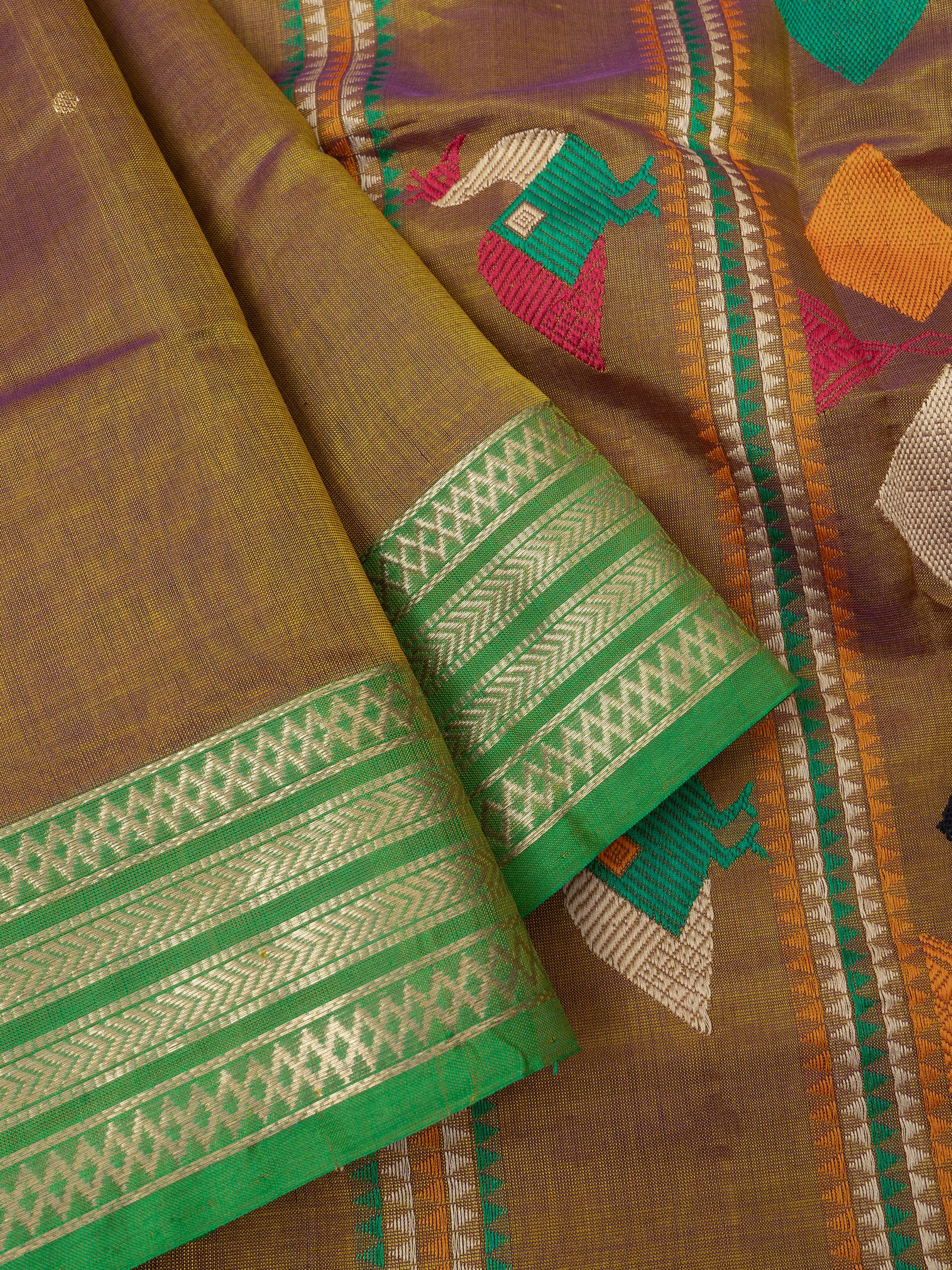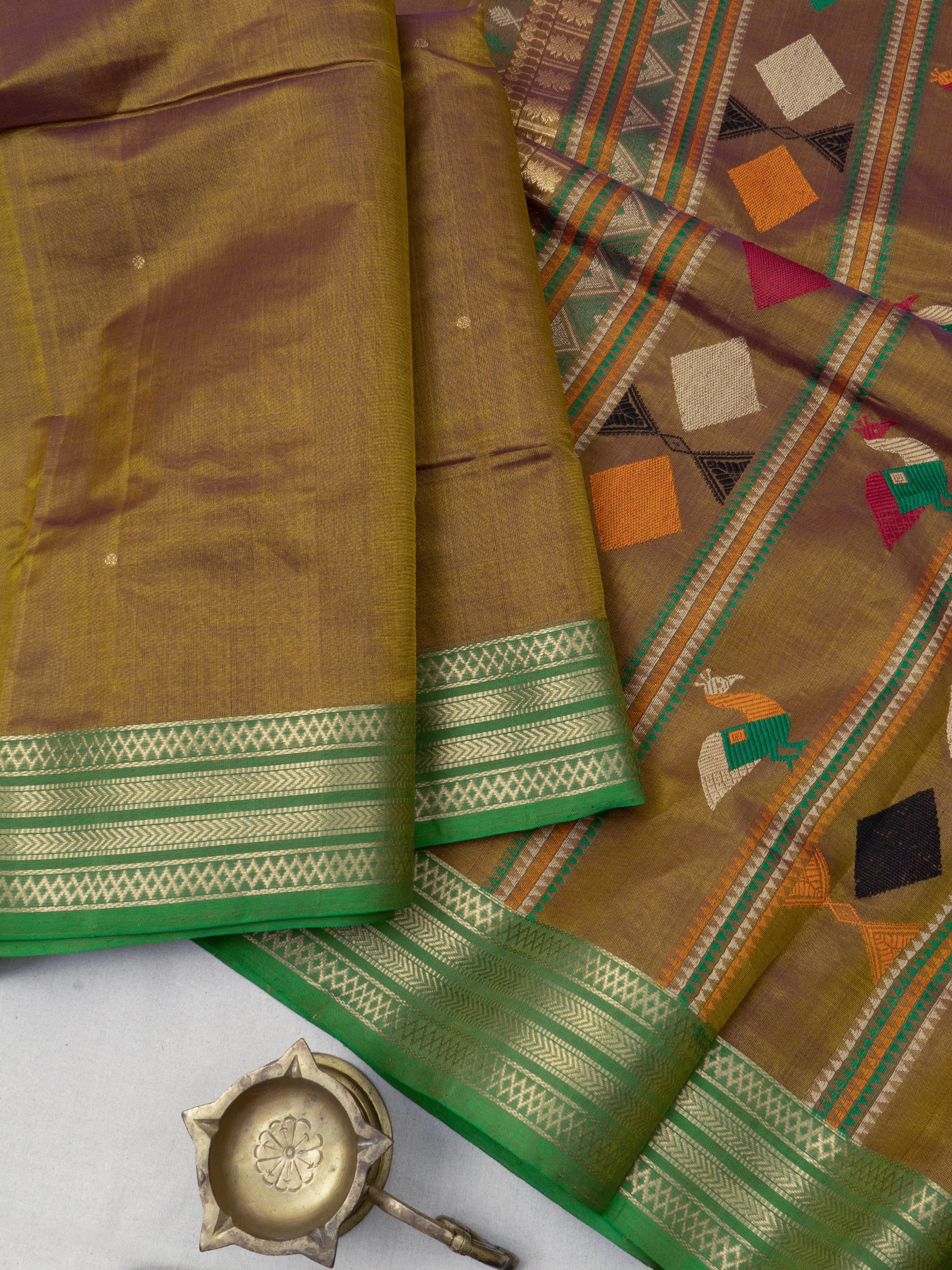 Mehandi green Bomkai pallu - Silk Cotton CHSA1397