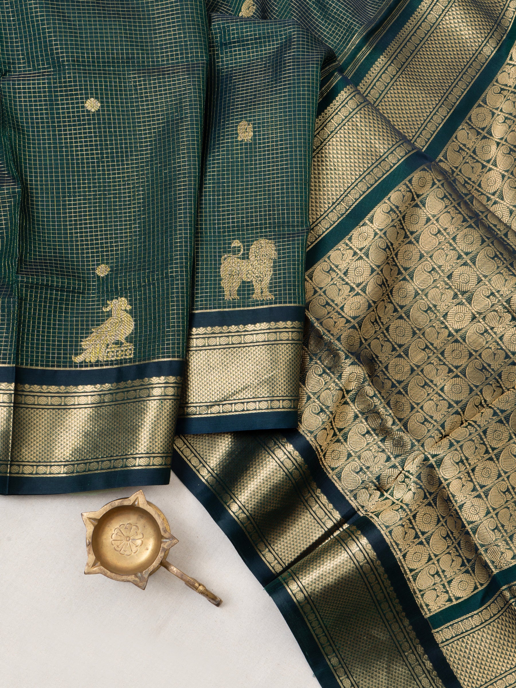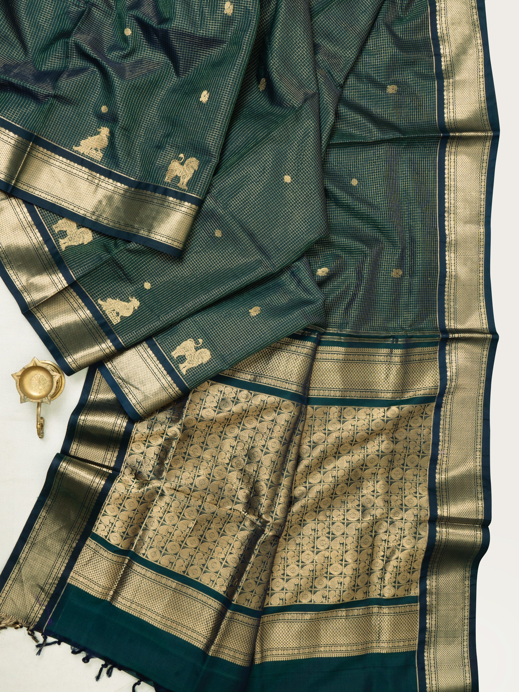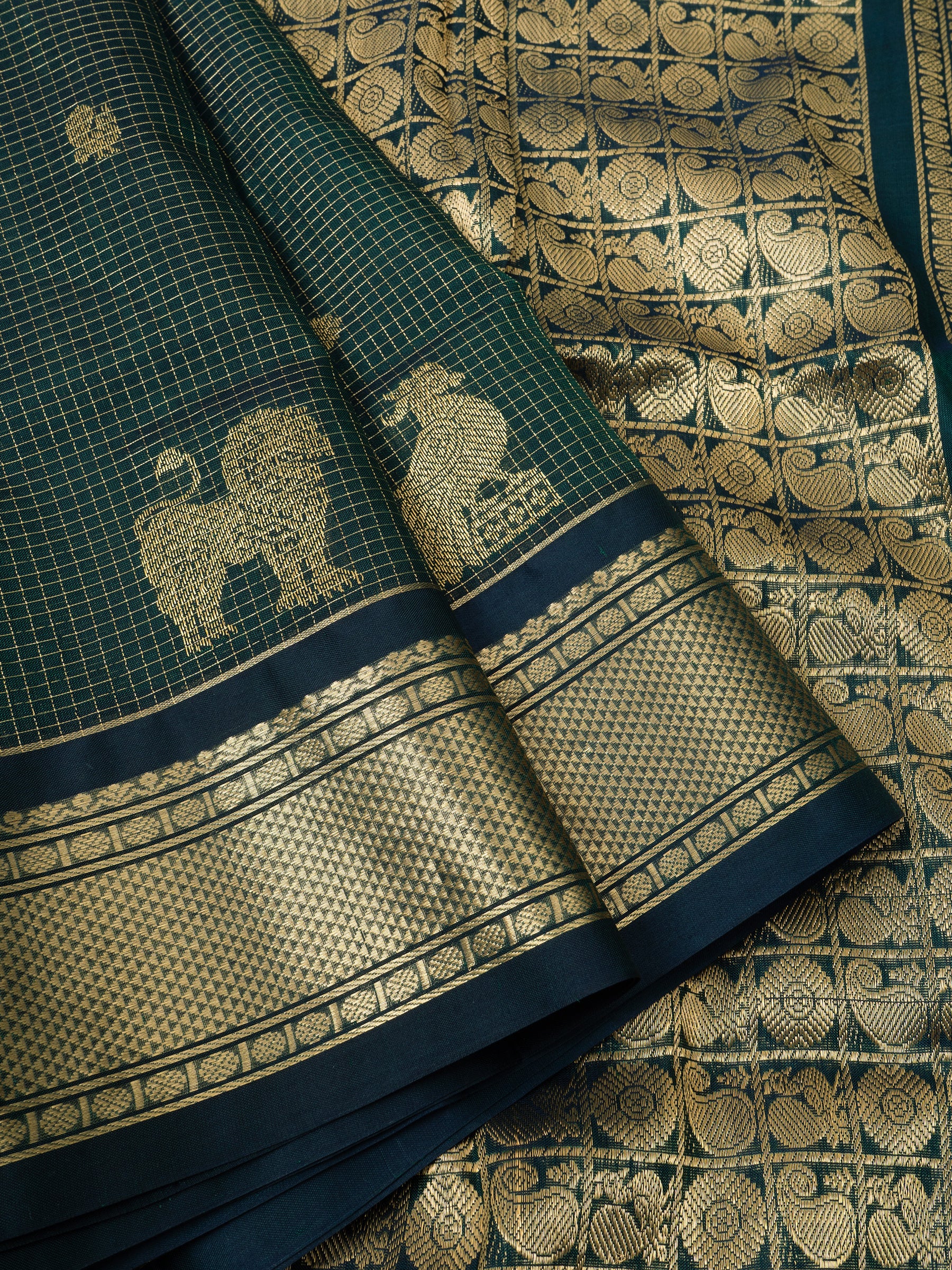 Dark green bettu butta - Premium Silk Cotton CHSA1974