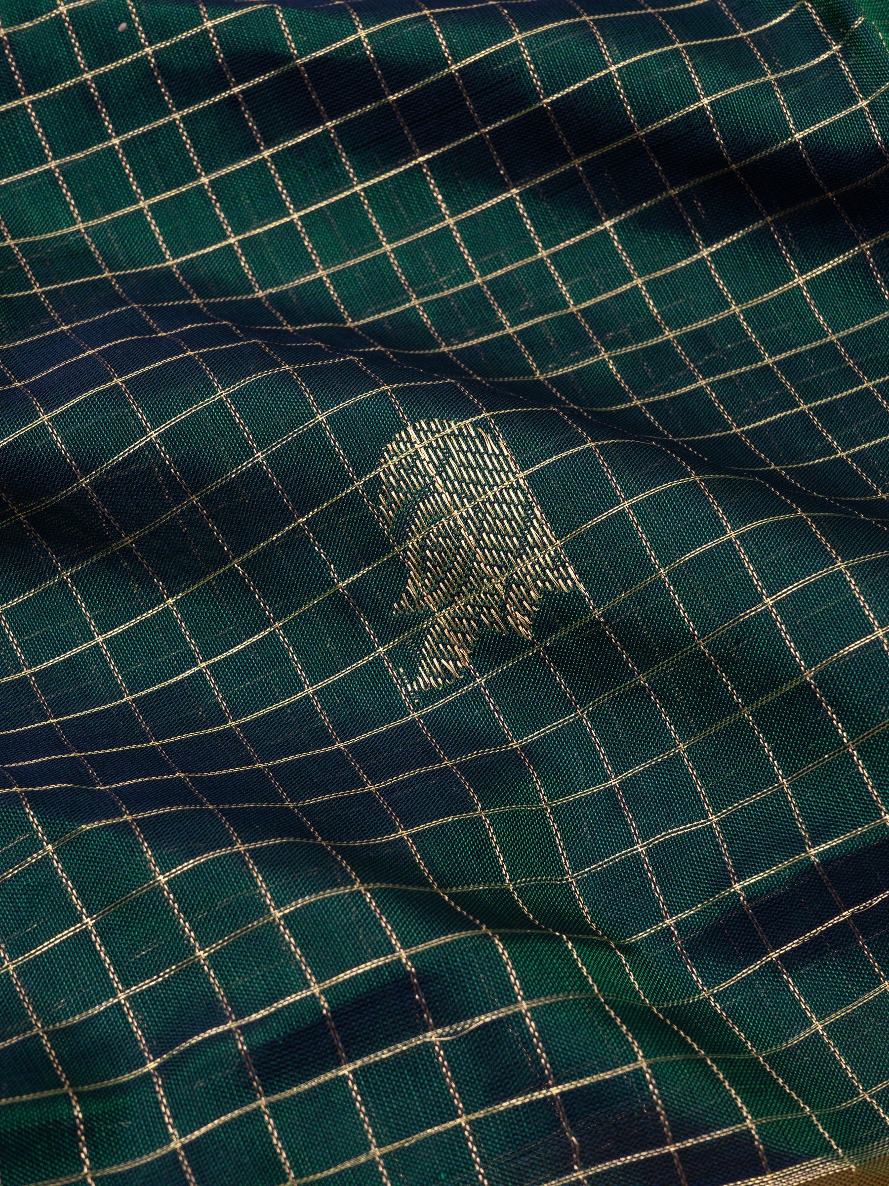 Dark green and mustard killi pallu - Premium Silk Cotton CHSA3221