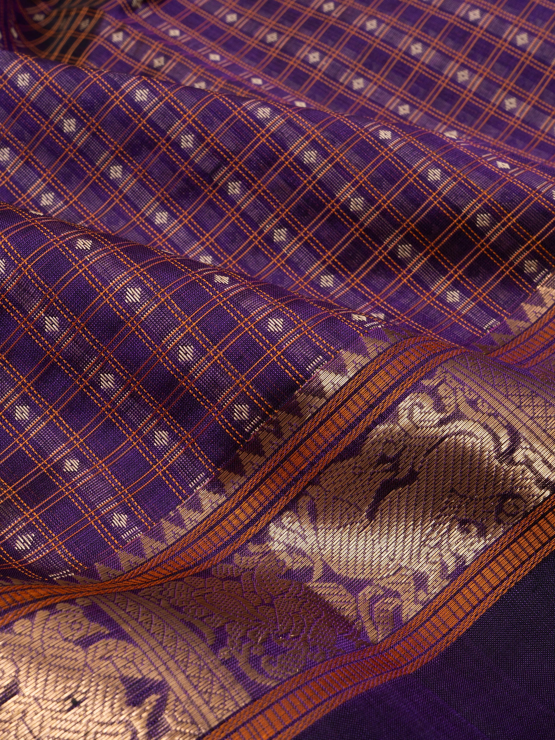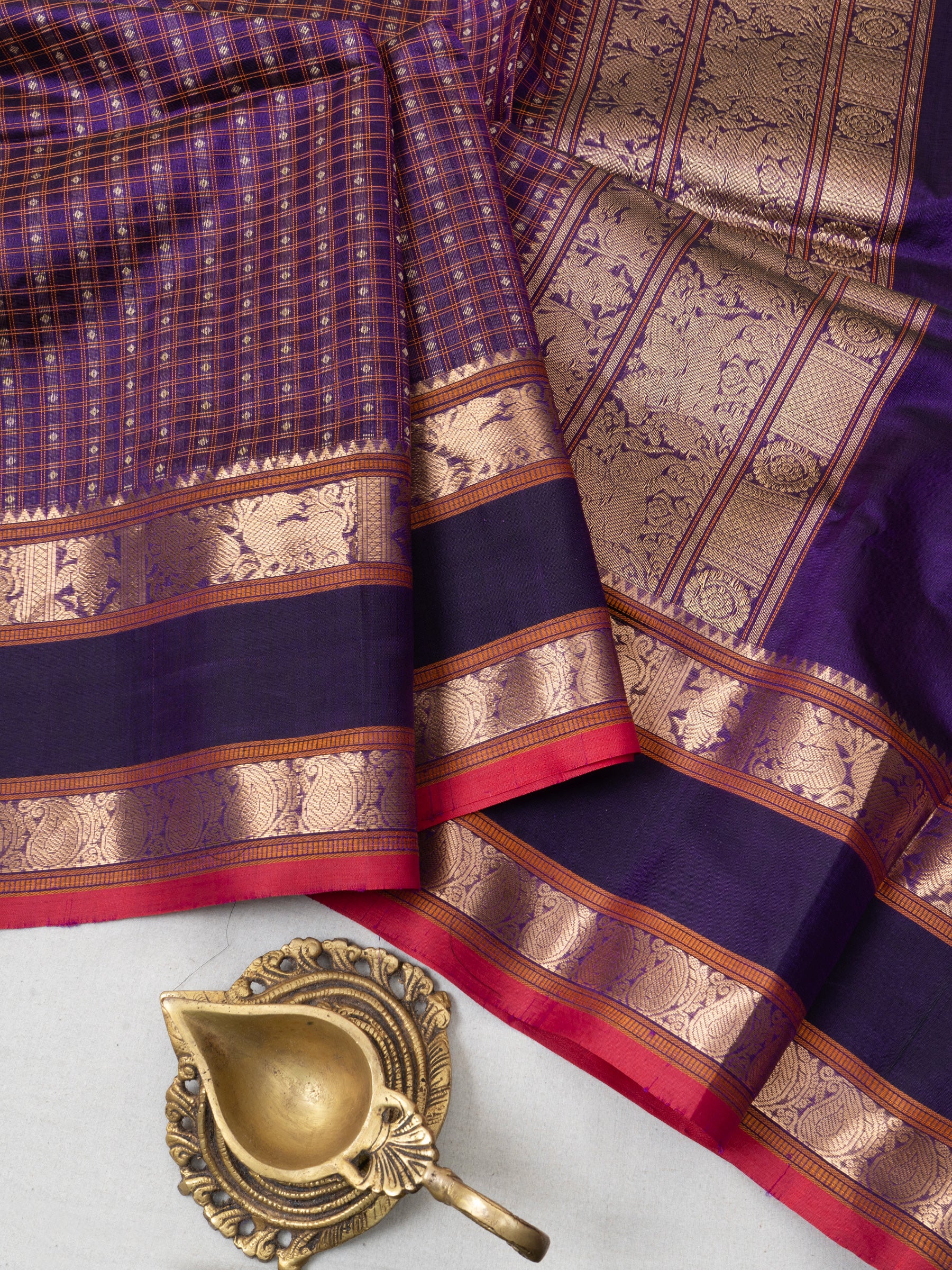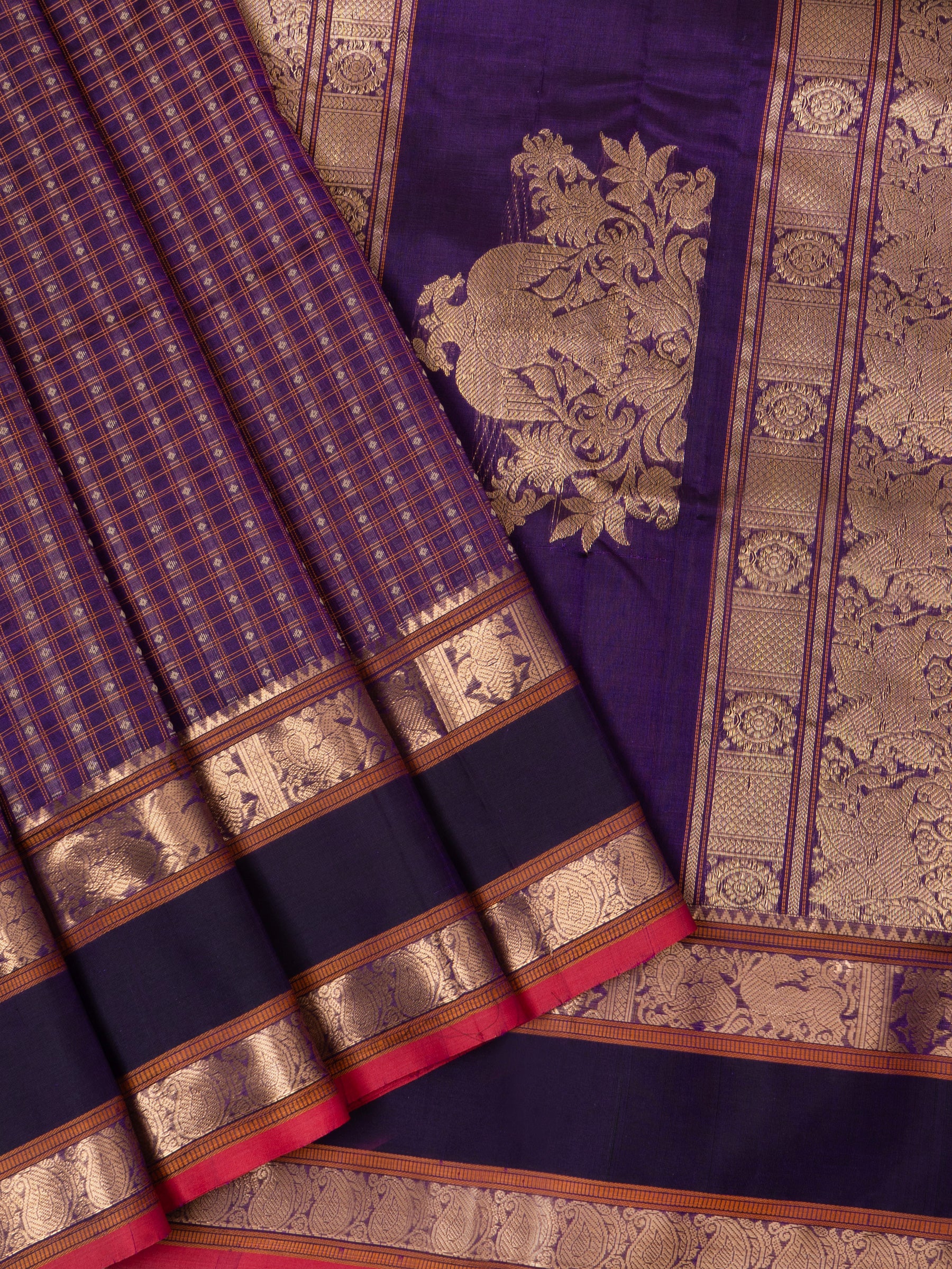 Purple lakshambutta and unique Iruthalaipakshi pallu - Silk Cotton CHSA3316