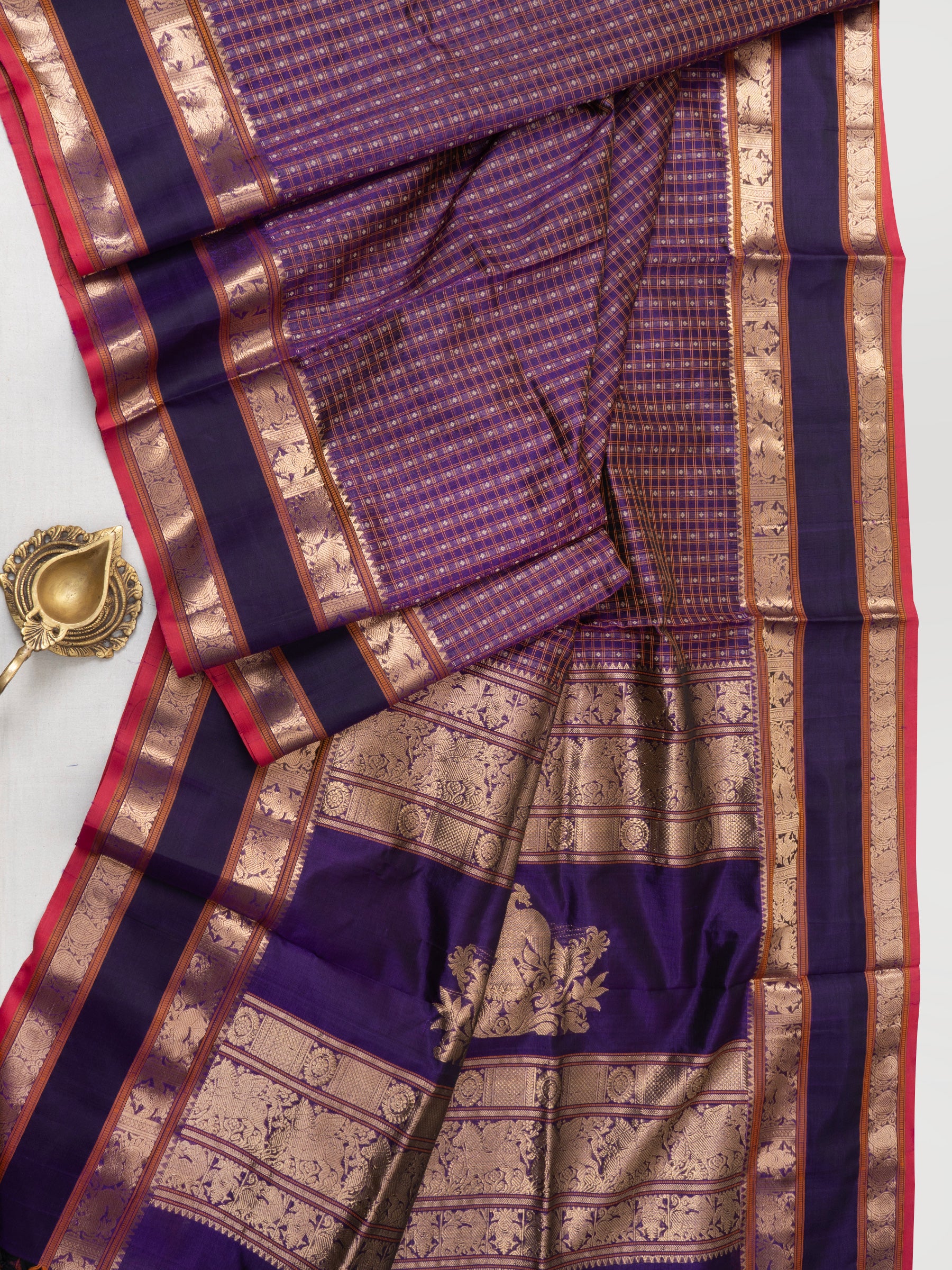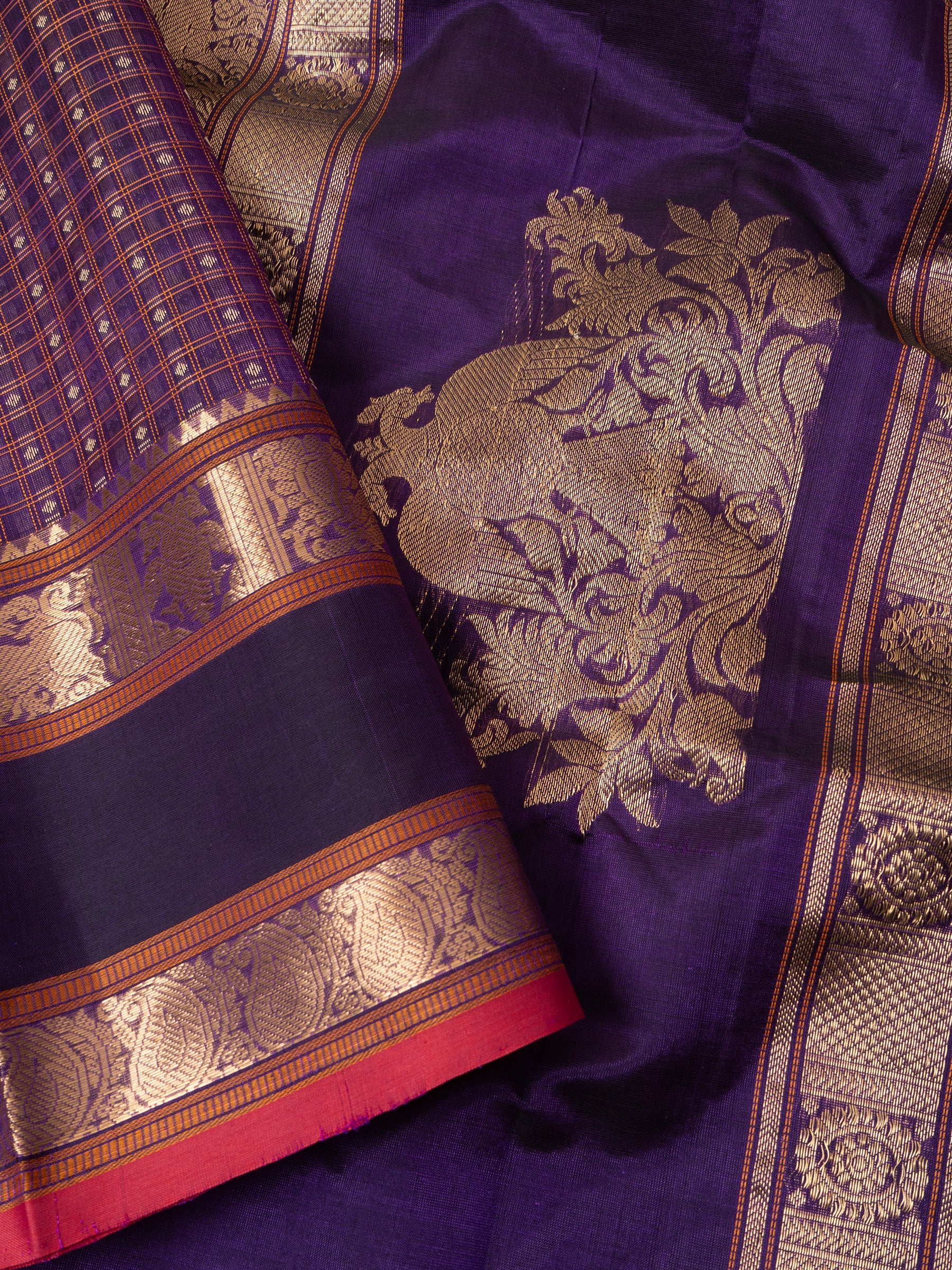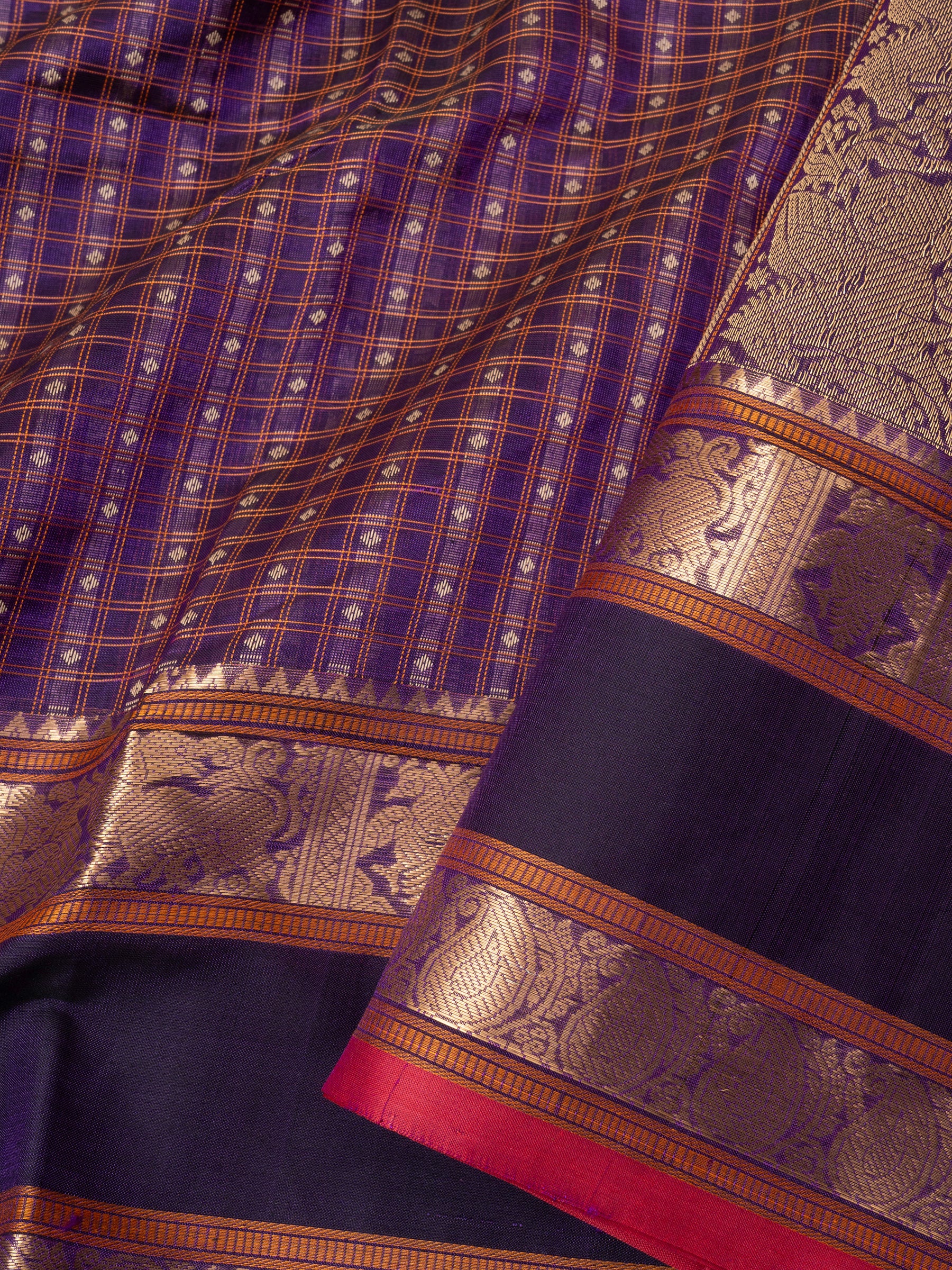 Purple lakshambutta and unique Iruthalaipakshi pallu - Silk Cotton CHSA3316
