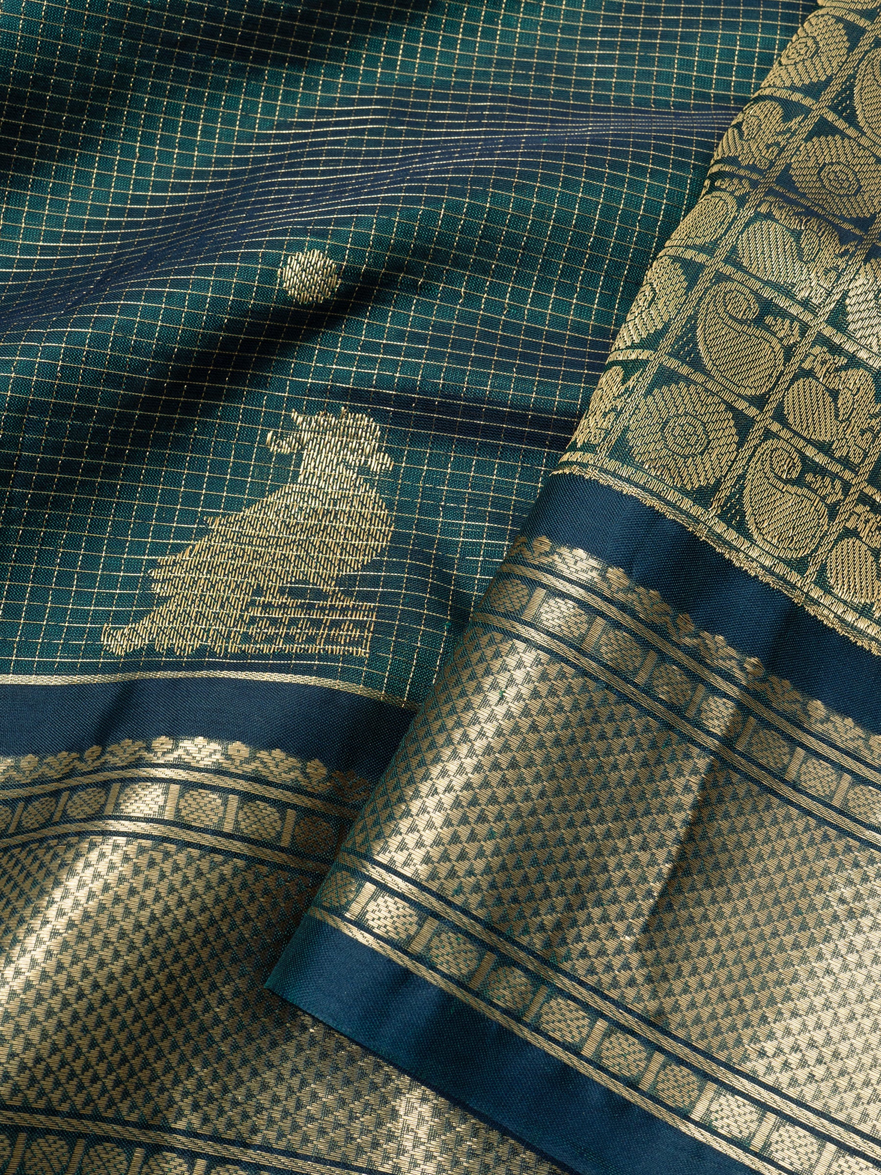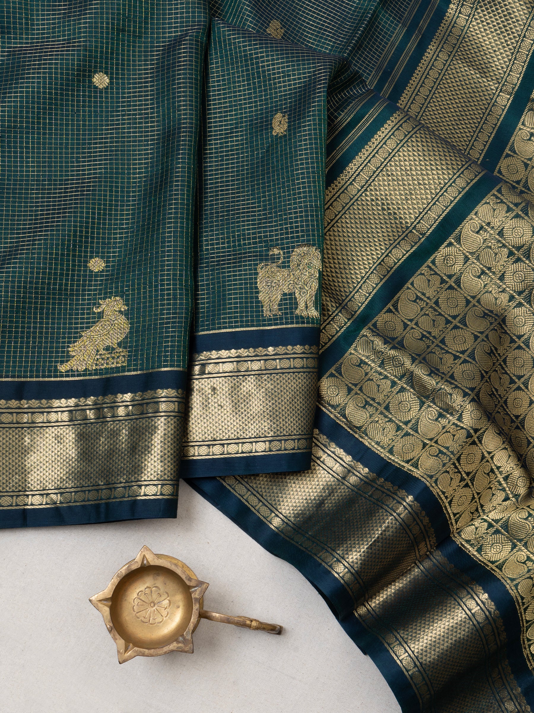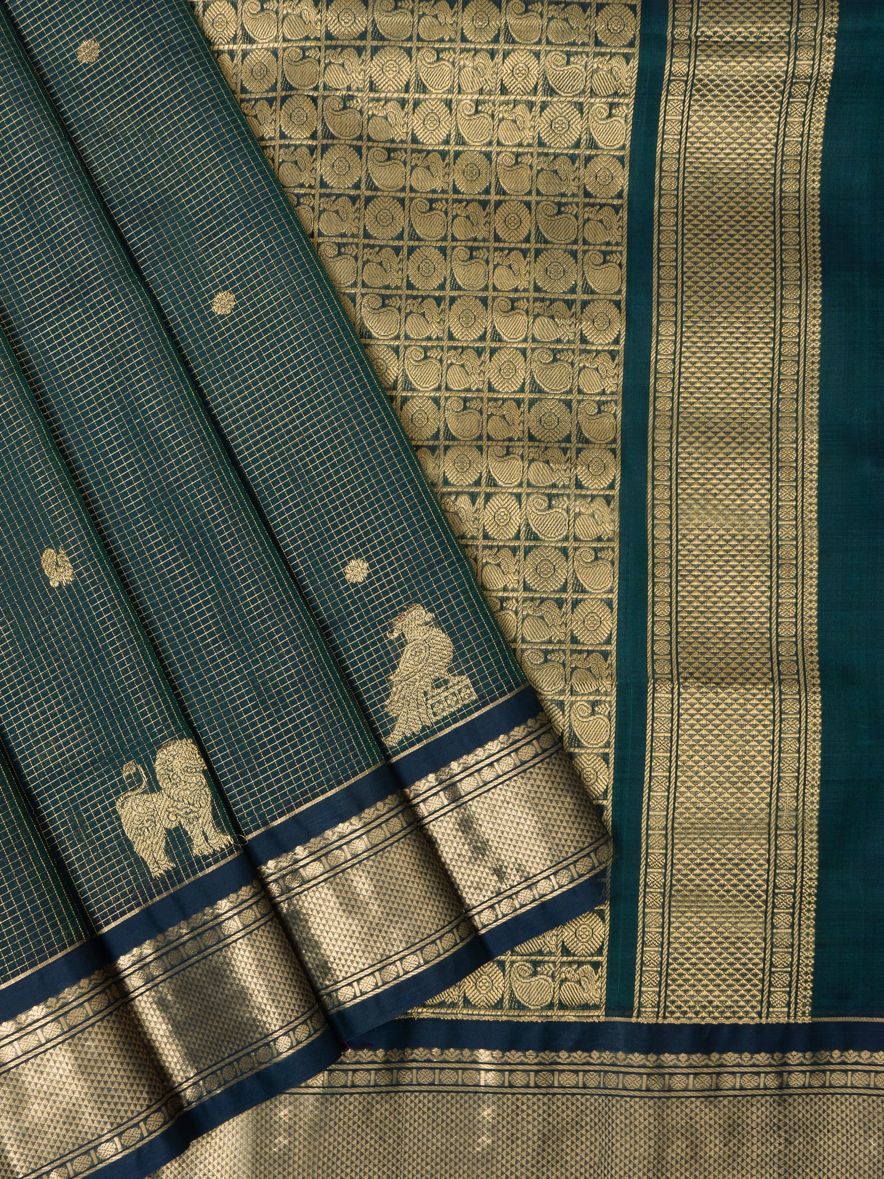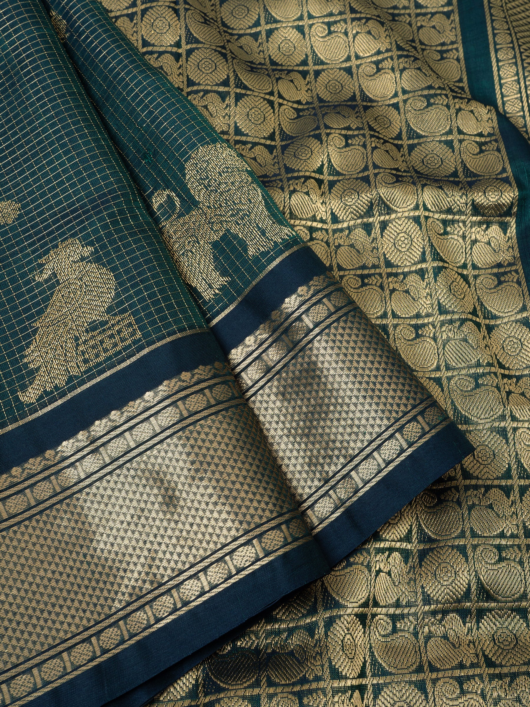 Peacock green bettu butta - Premium Silk Cotton CHSA3667