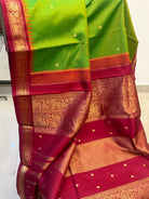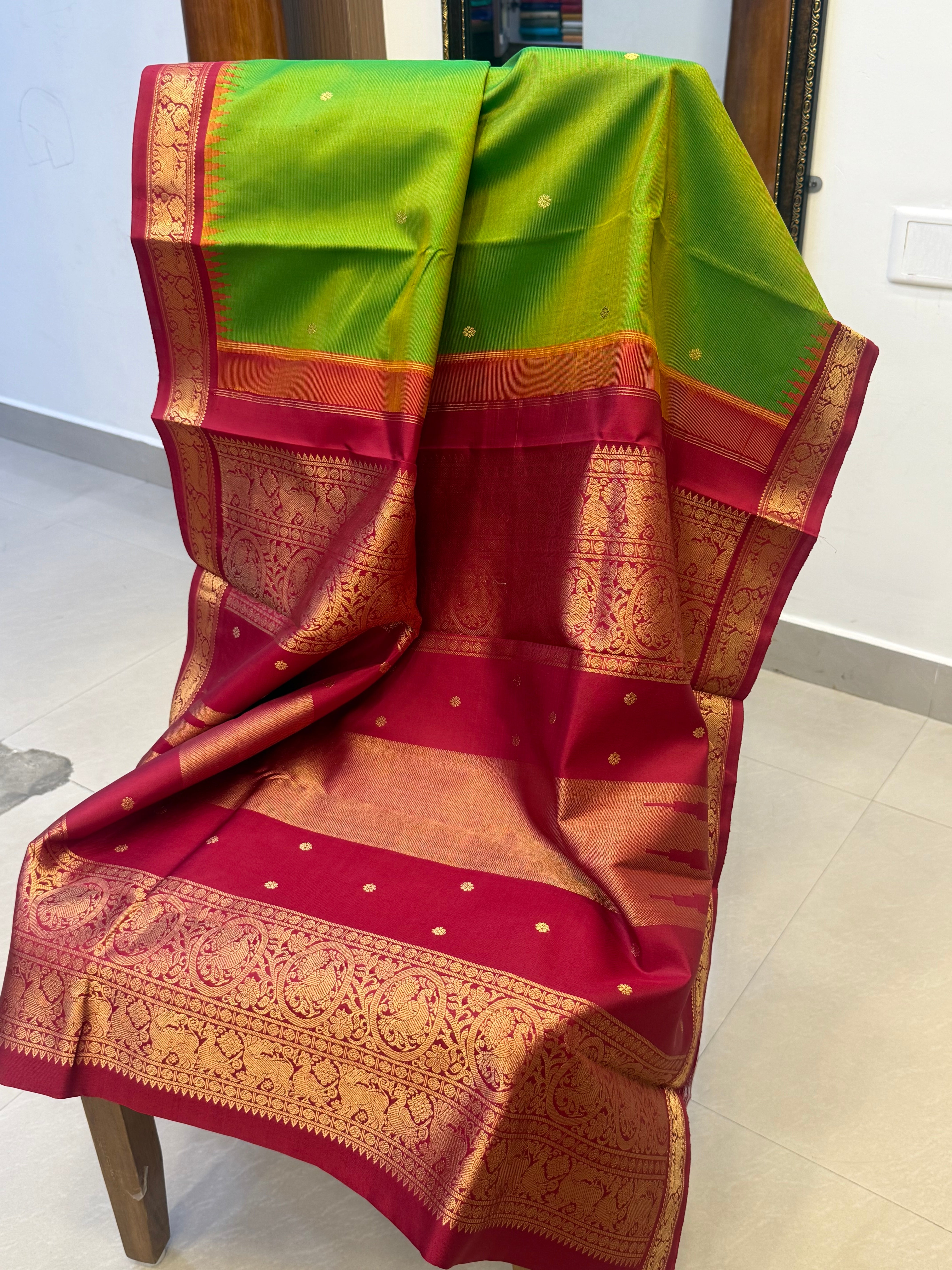 This saree is sNeha green and border is red with annam yaanai Zari ( not pure ) work and rich Palla and blouse