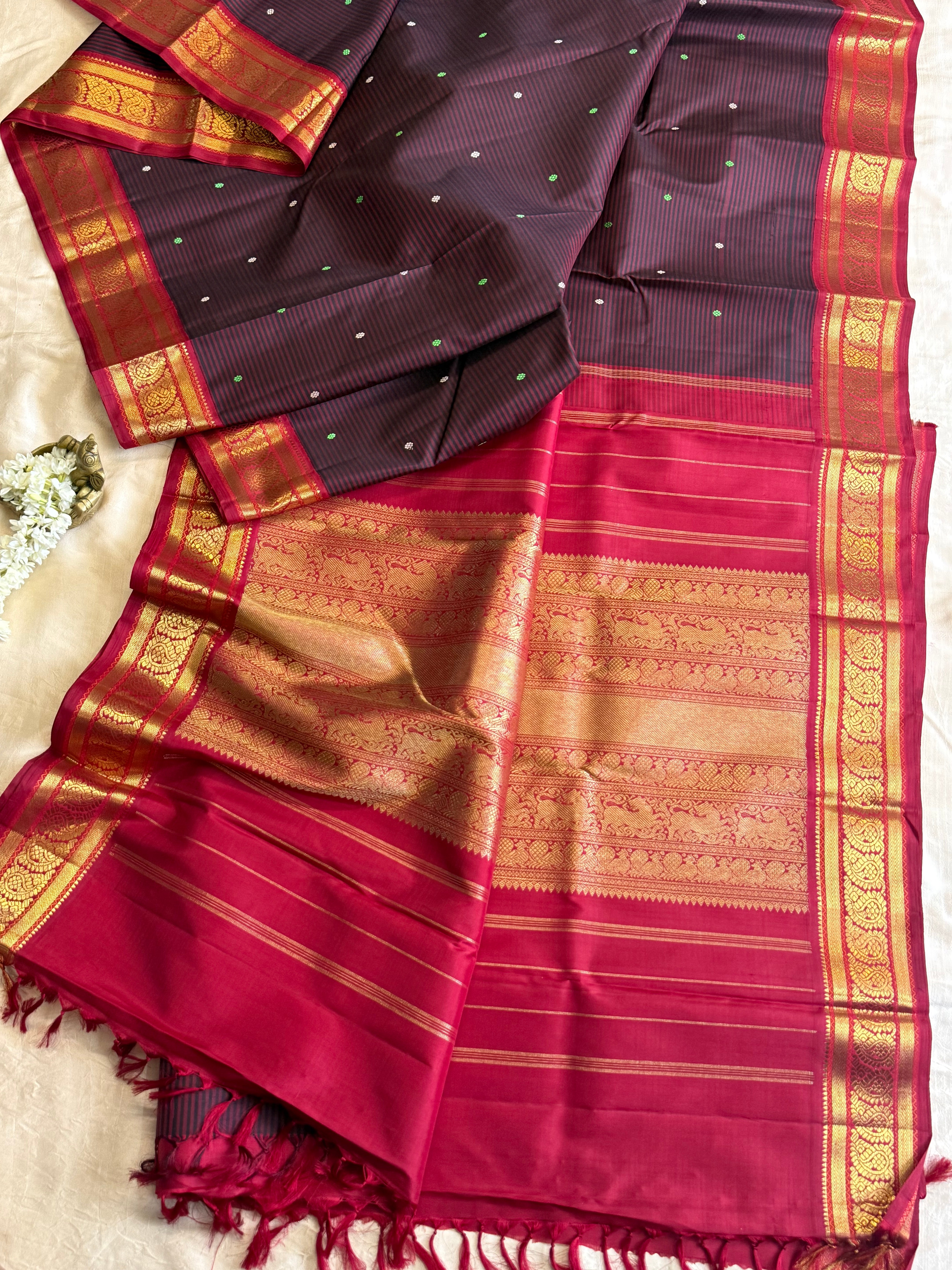 Vaalapoo savuku Korvai master weaver kanjipuram silk