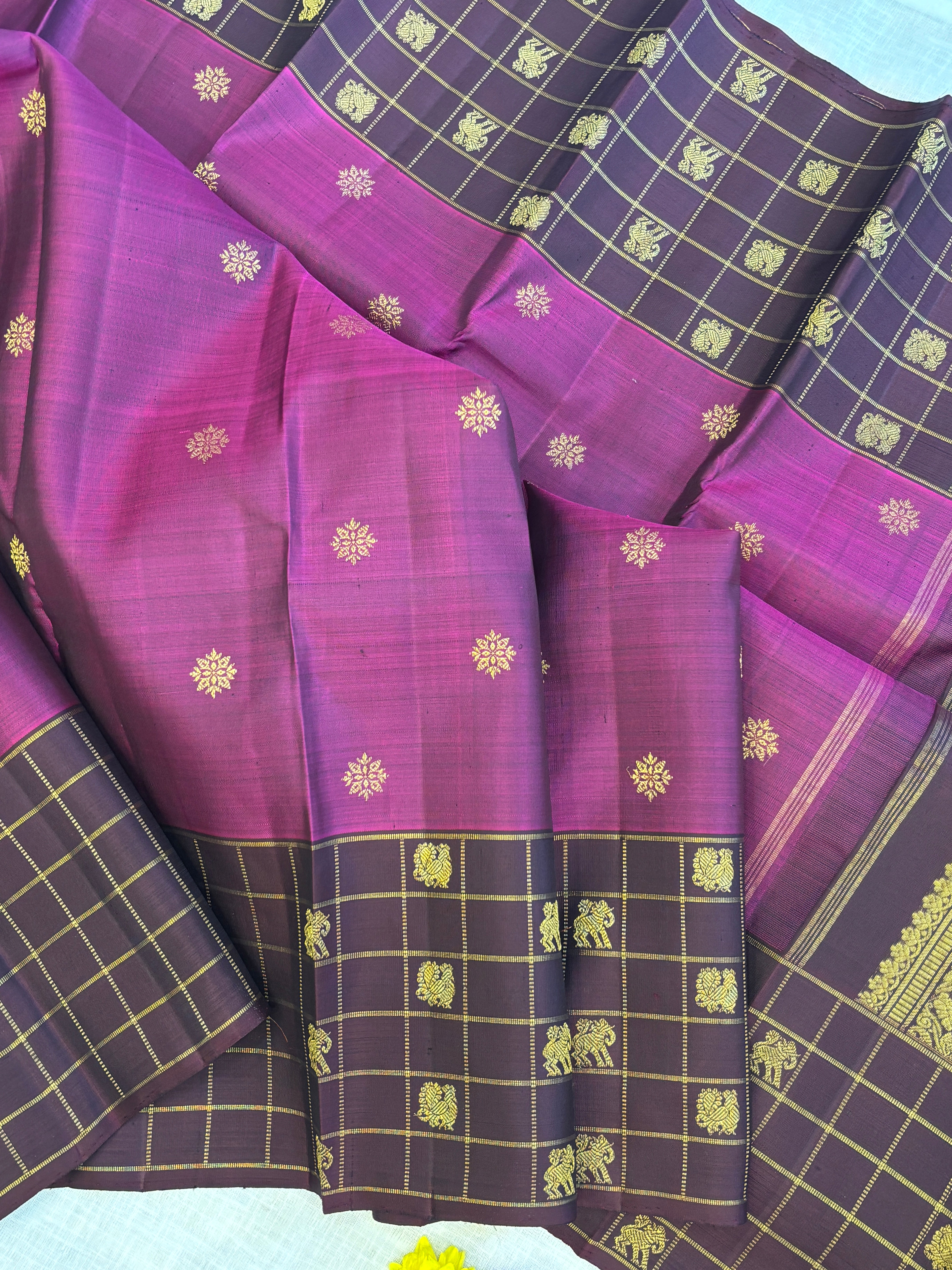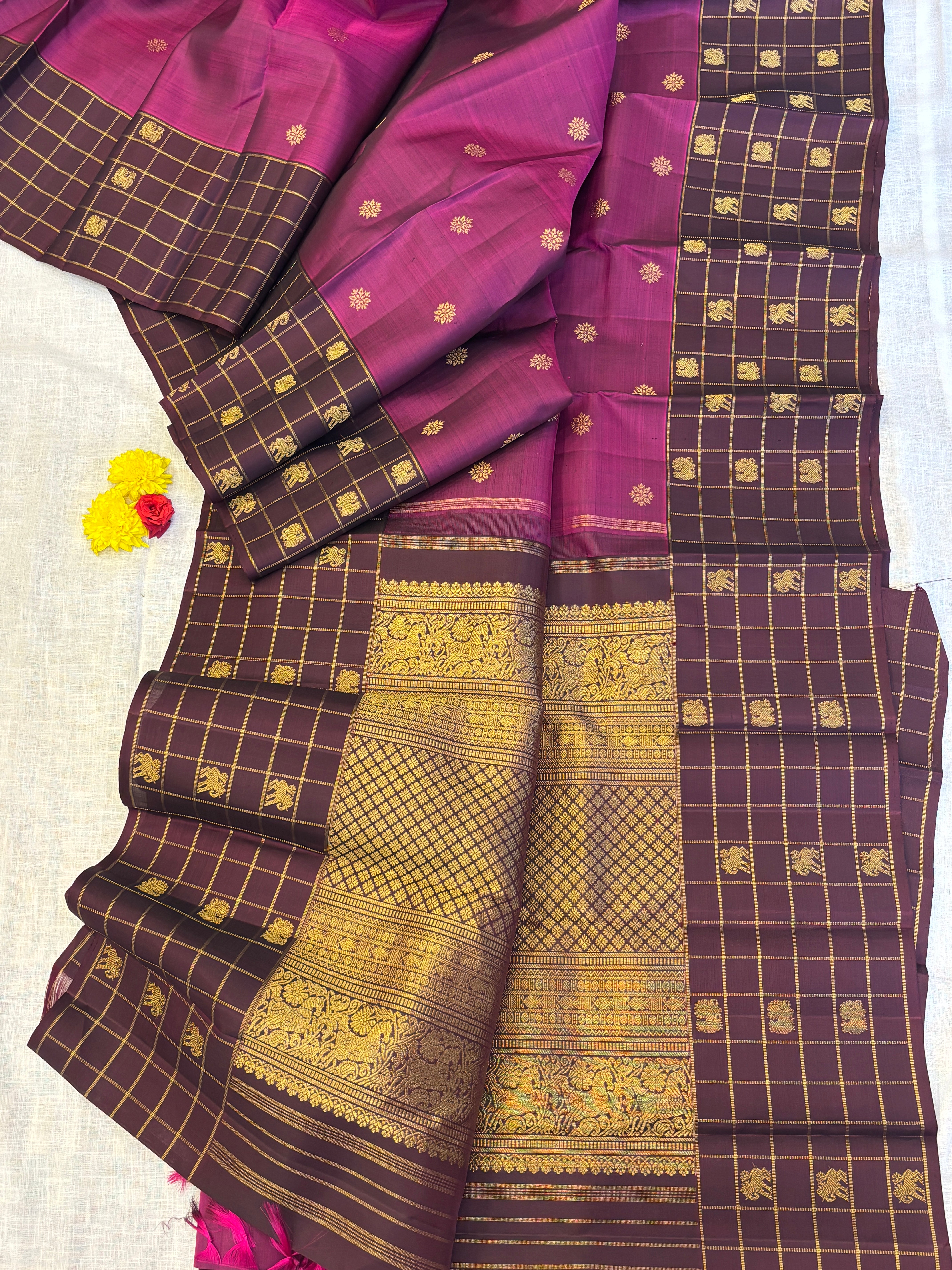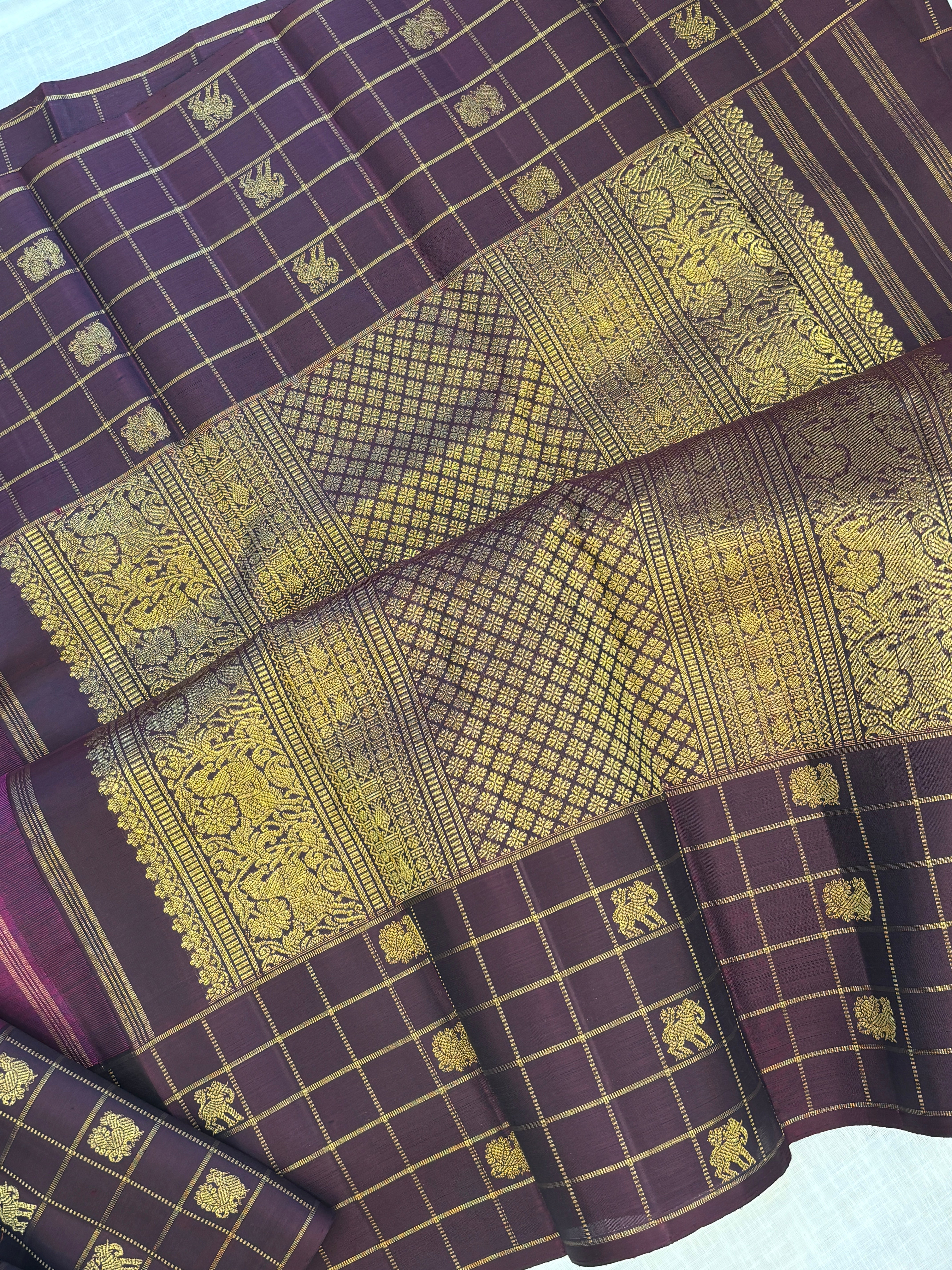 Vadamalli and brown kattam border / kanjipuram silk