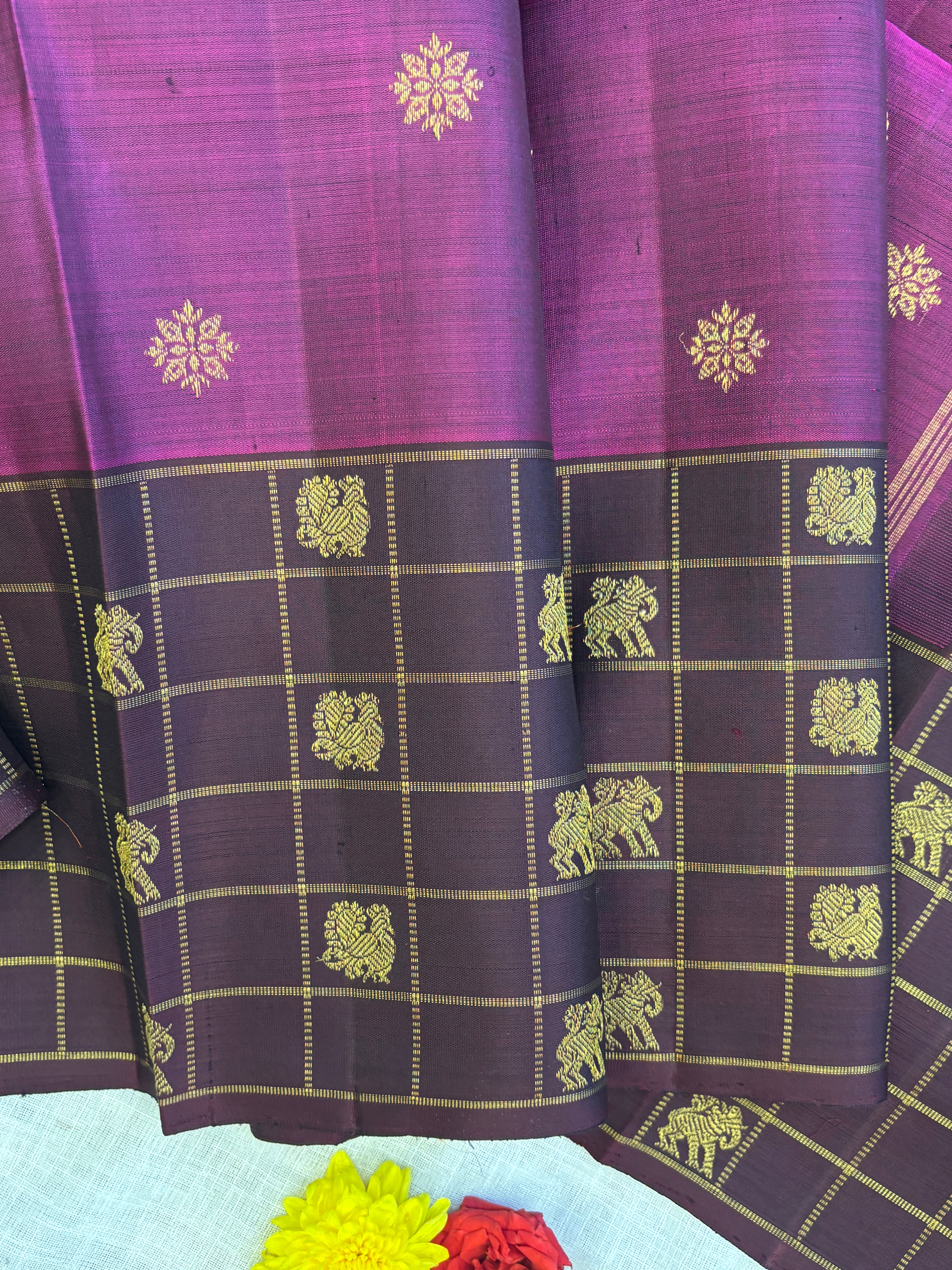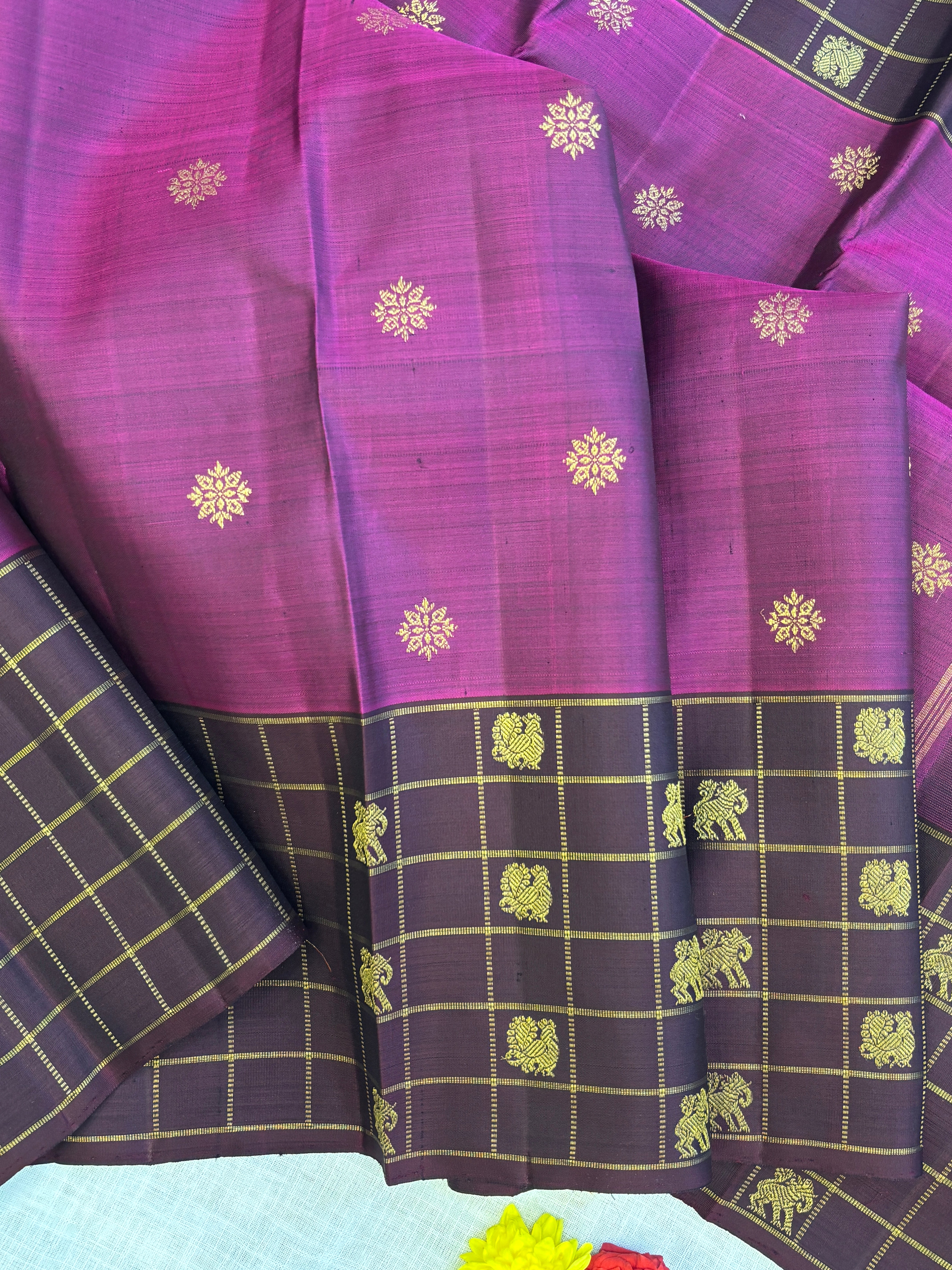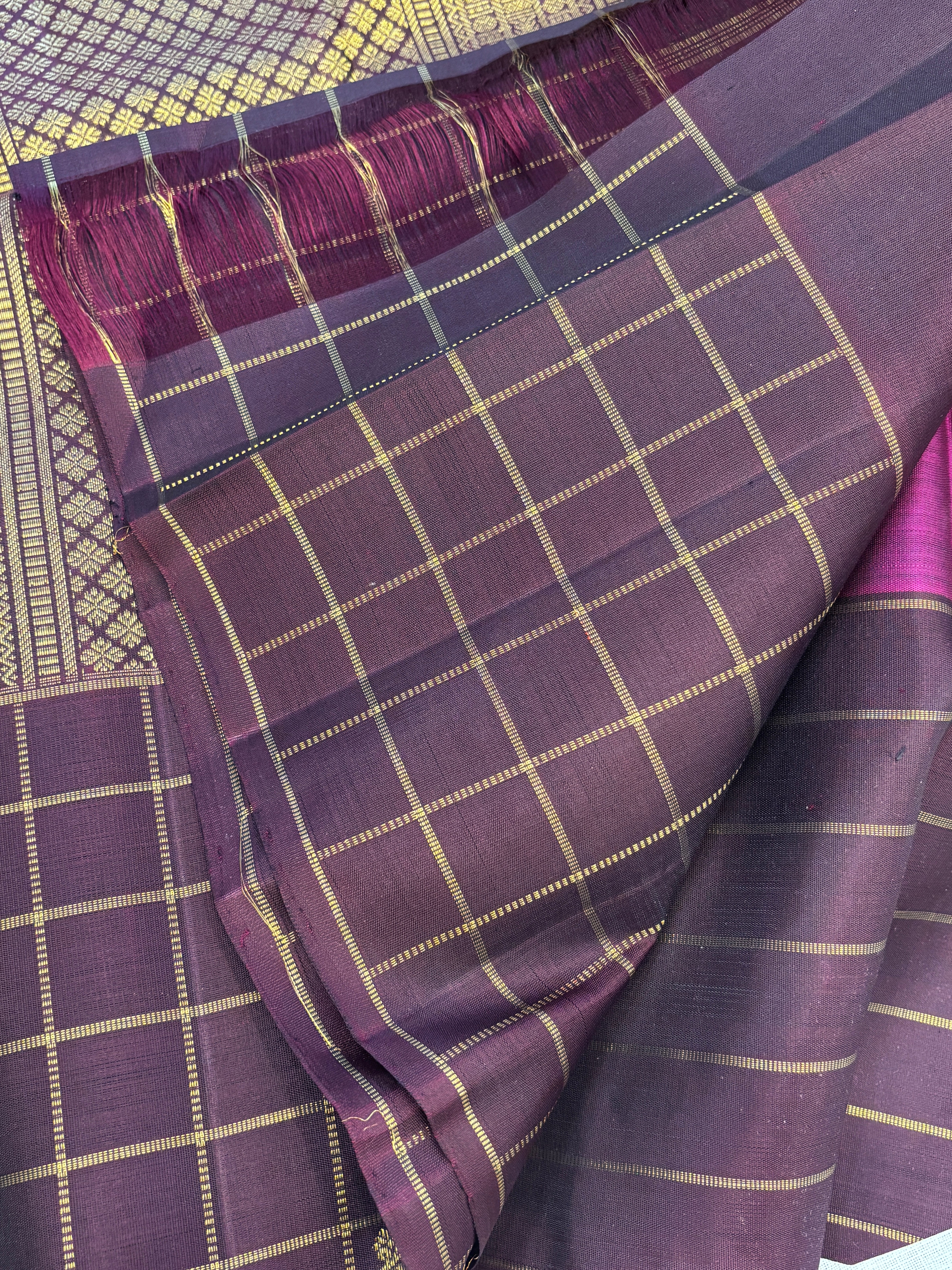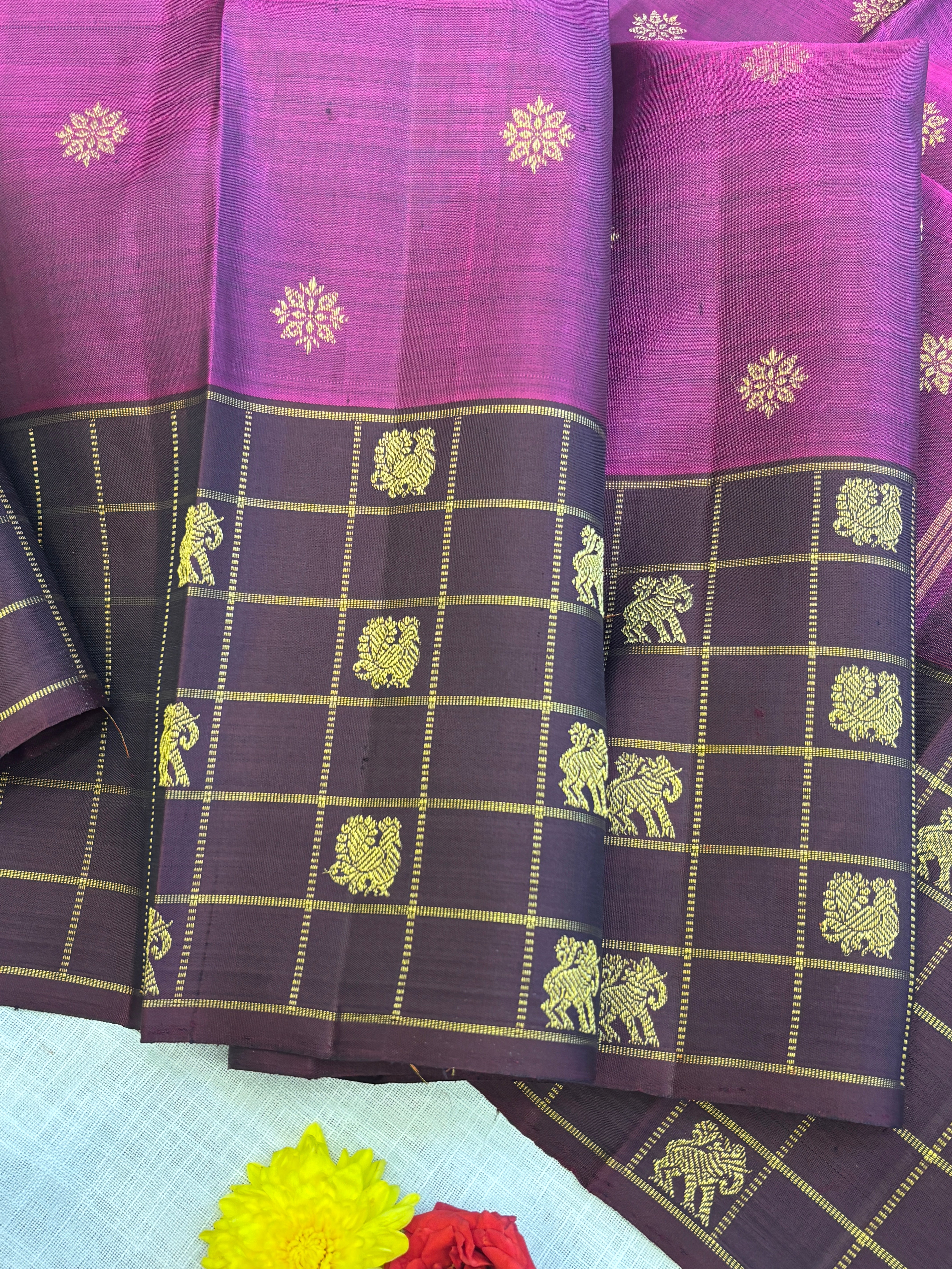 Vadamalli and brown kattam border / kanjipuram silk