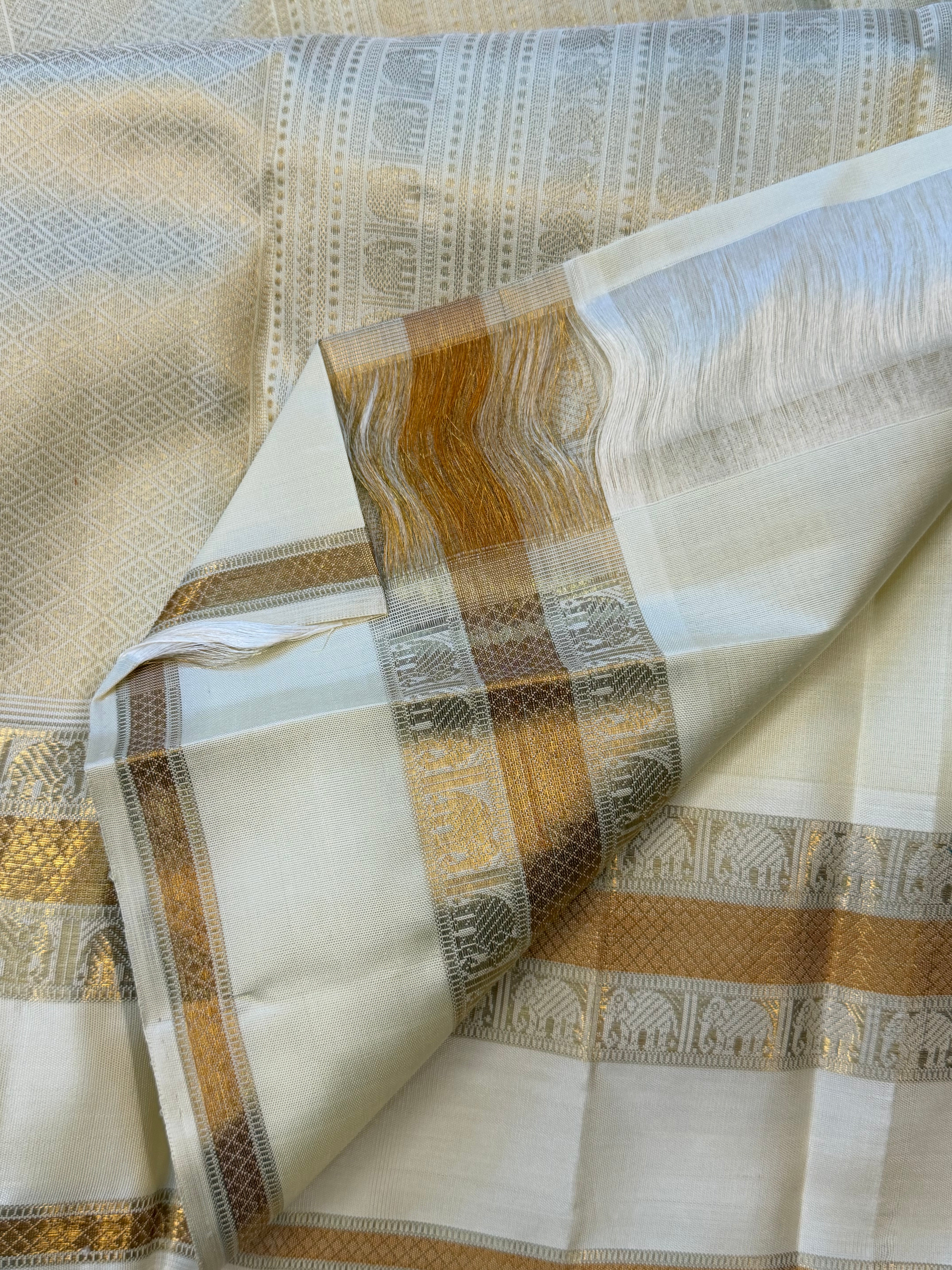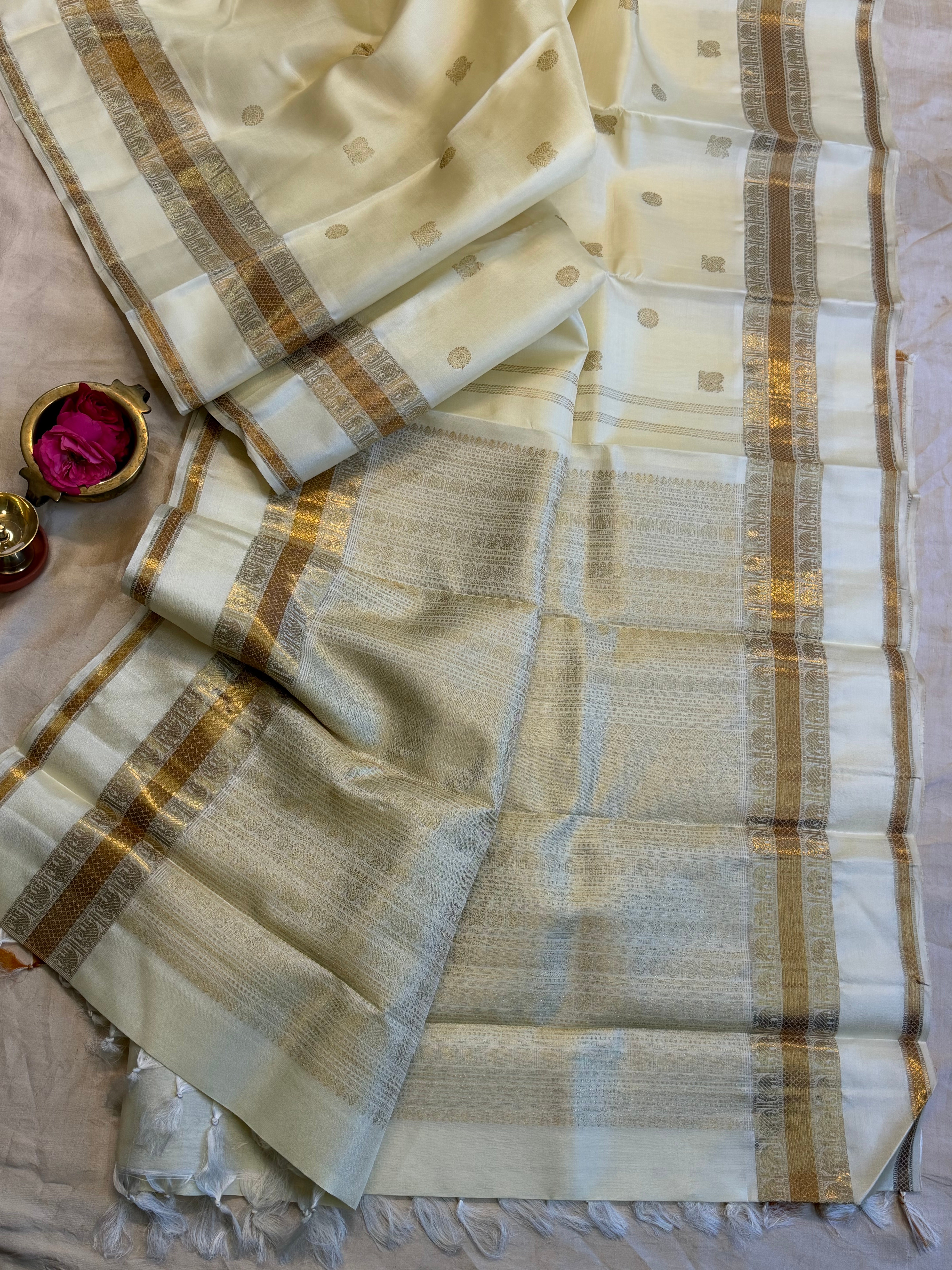 Venpattu : off white kaal erangina border / kanjipuram silk