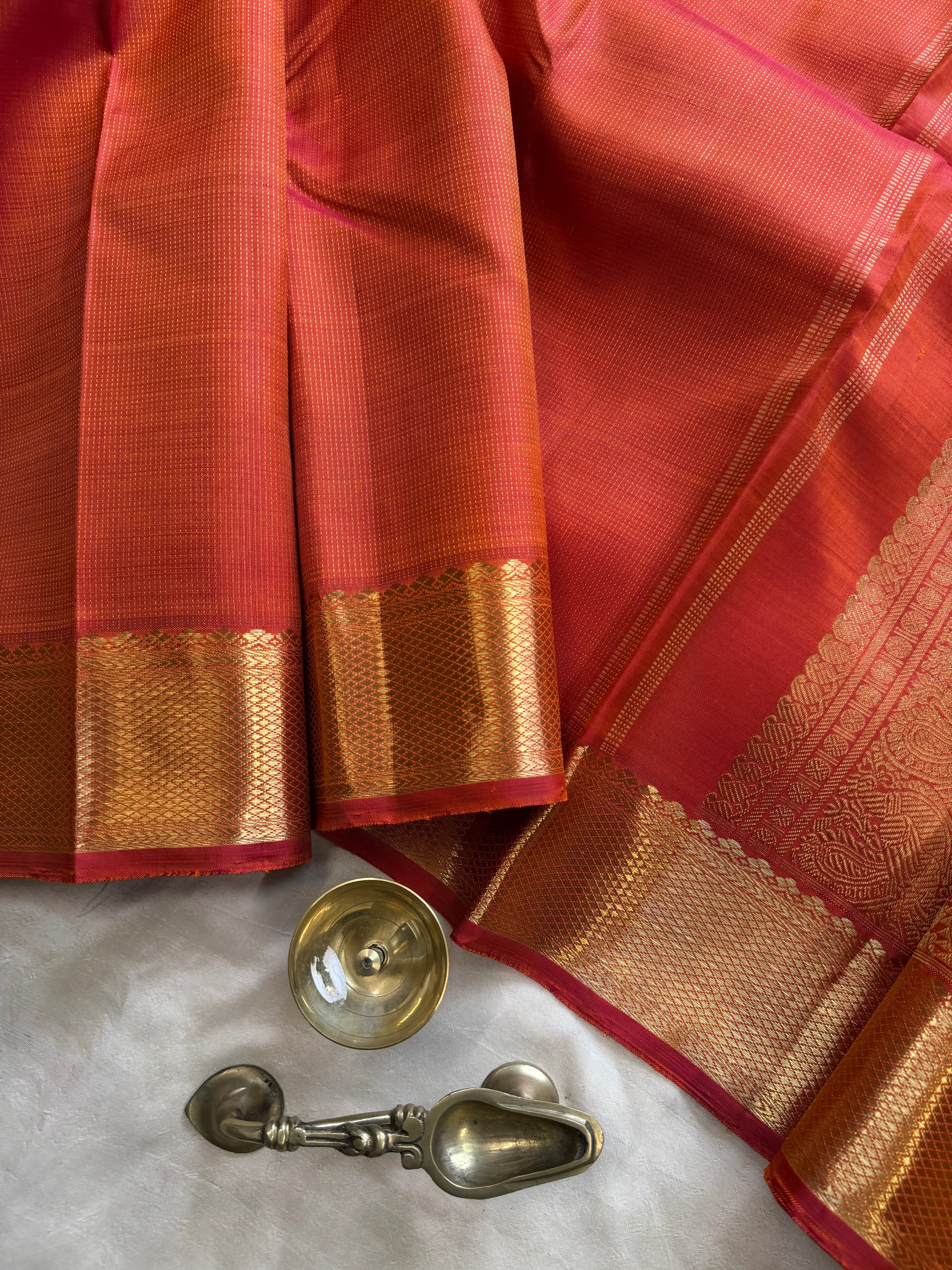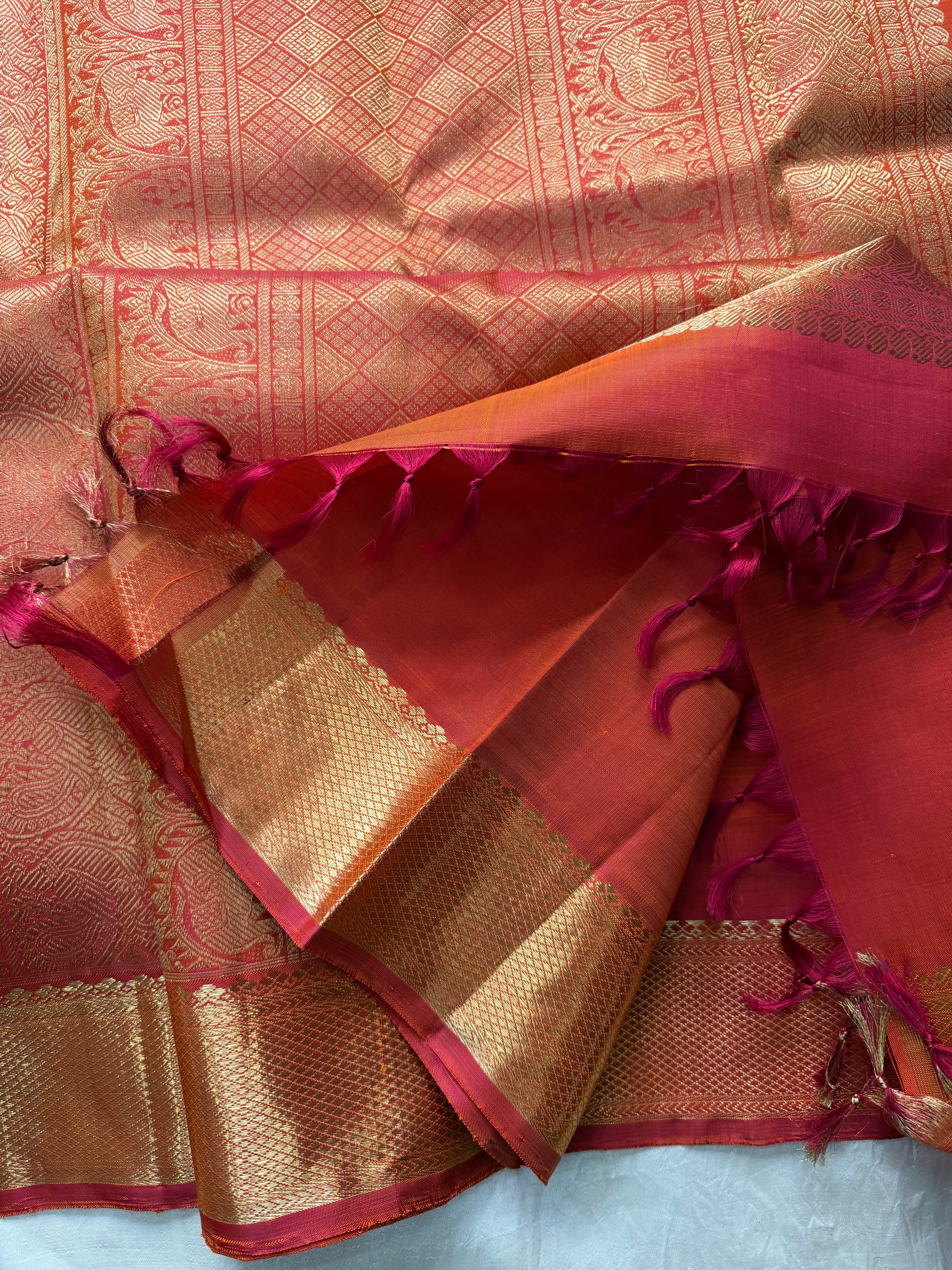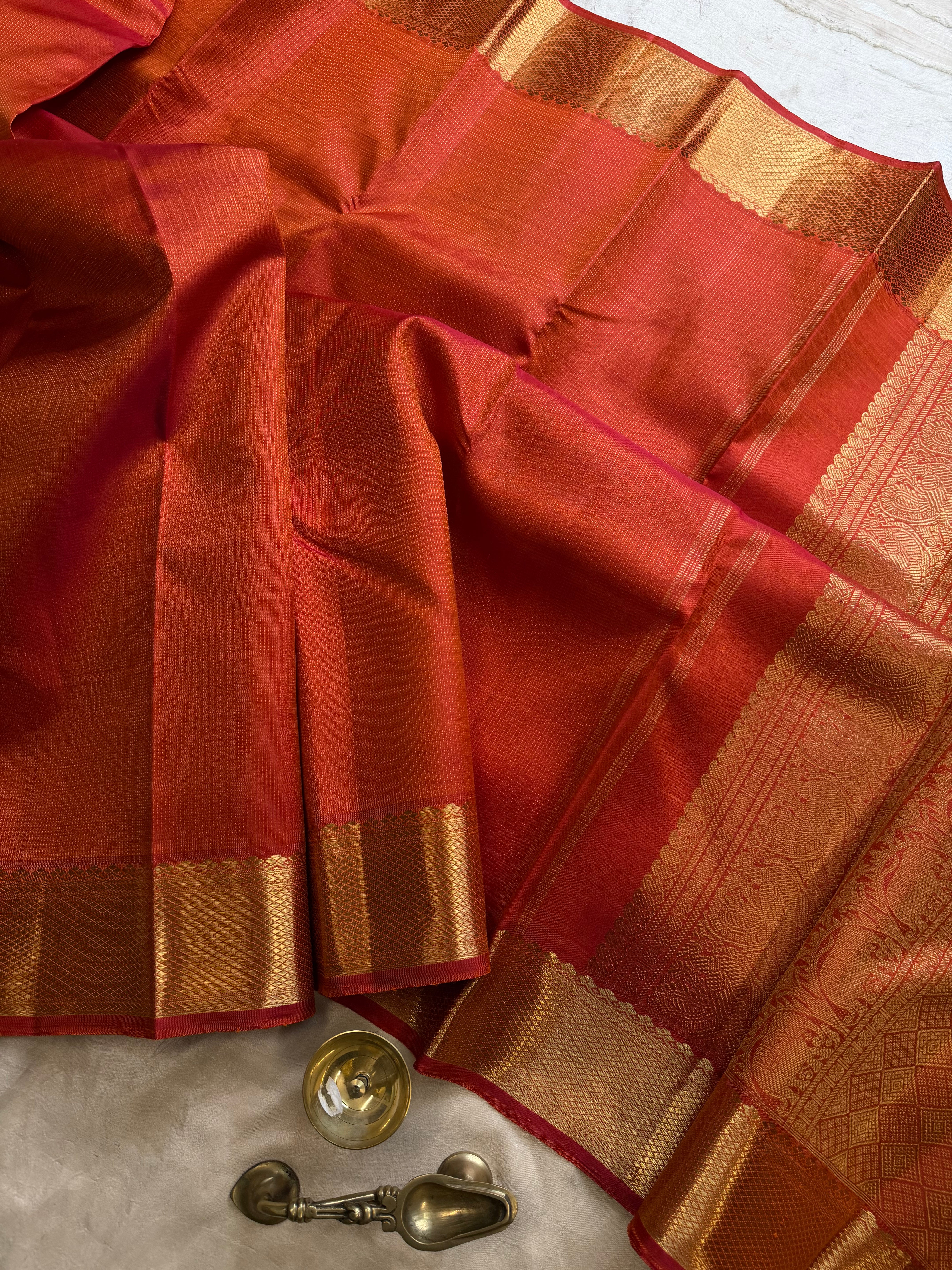 Rust orange Zari oosivanam/ Kanjipuram silk