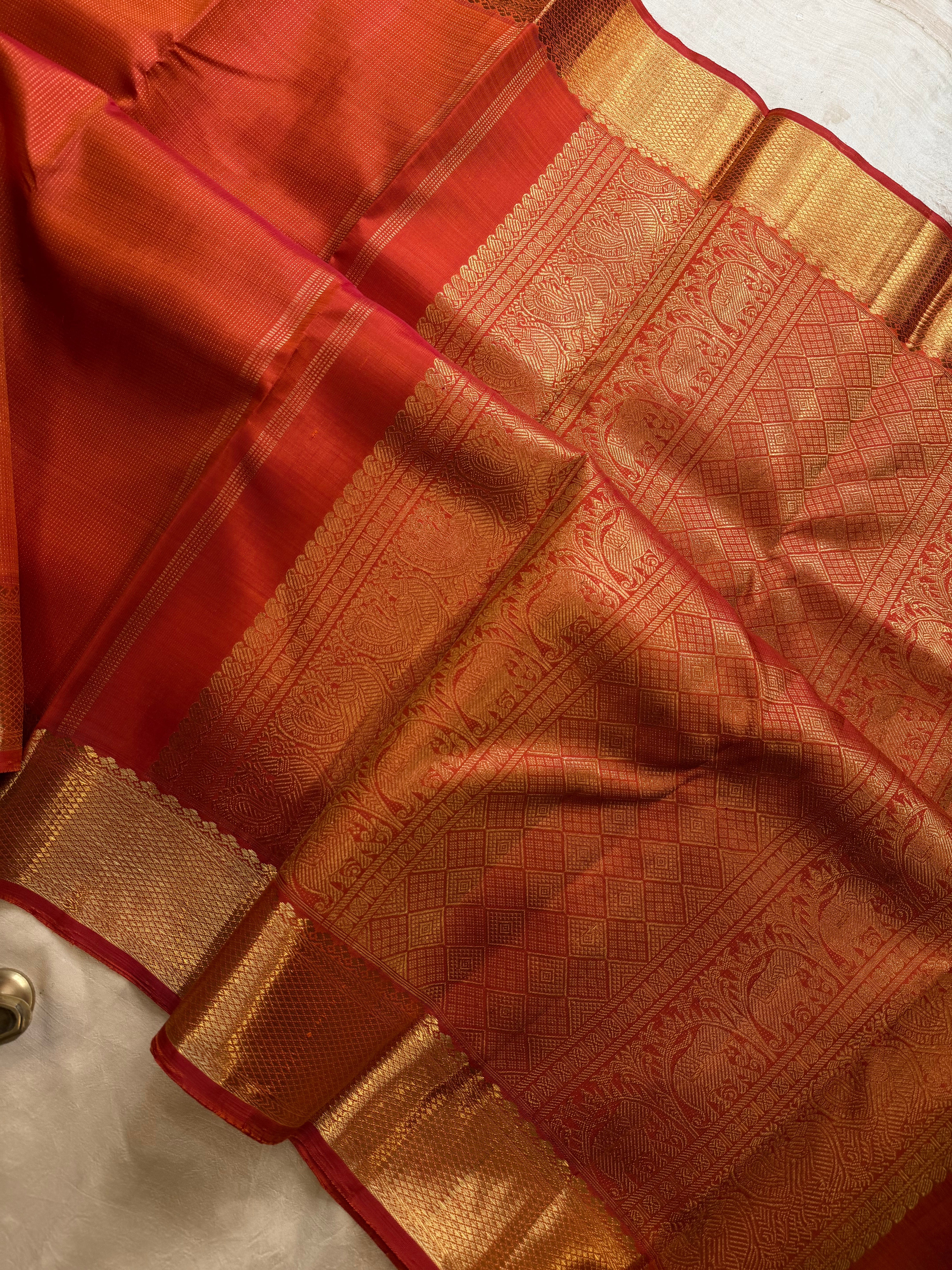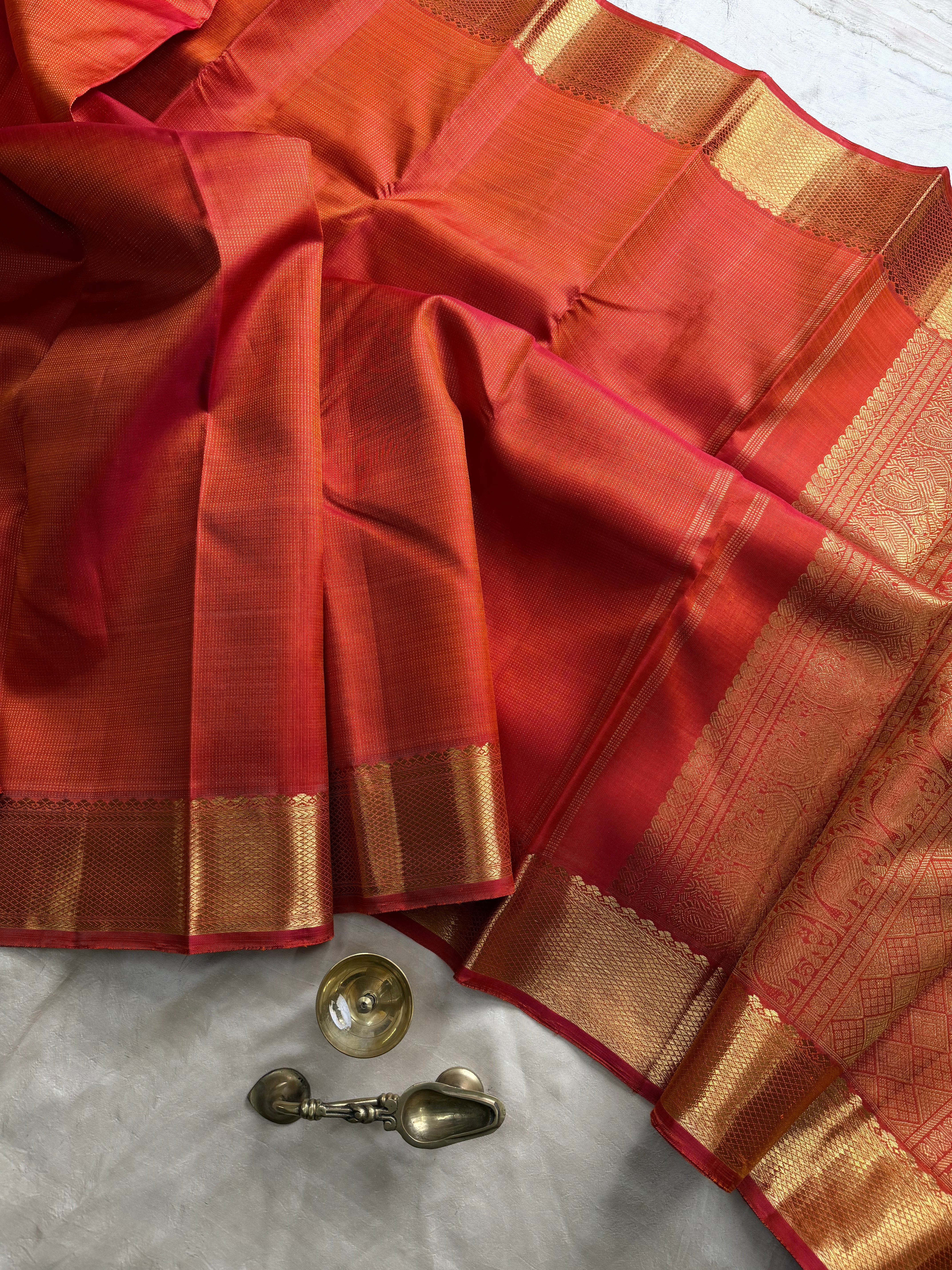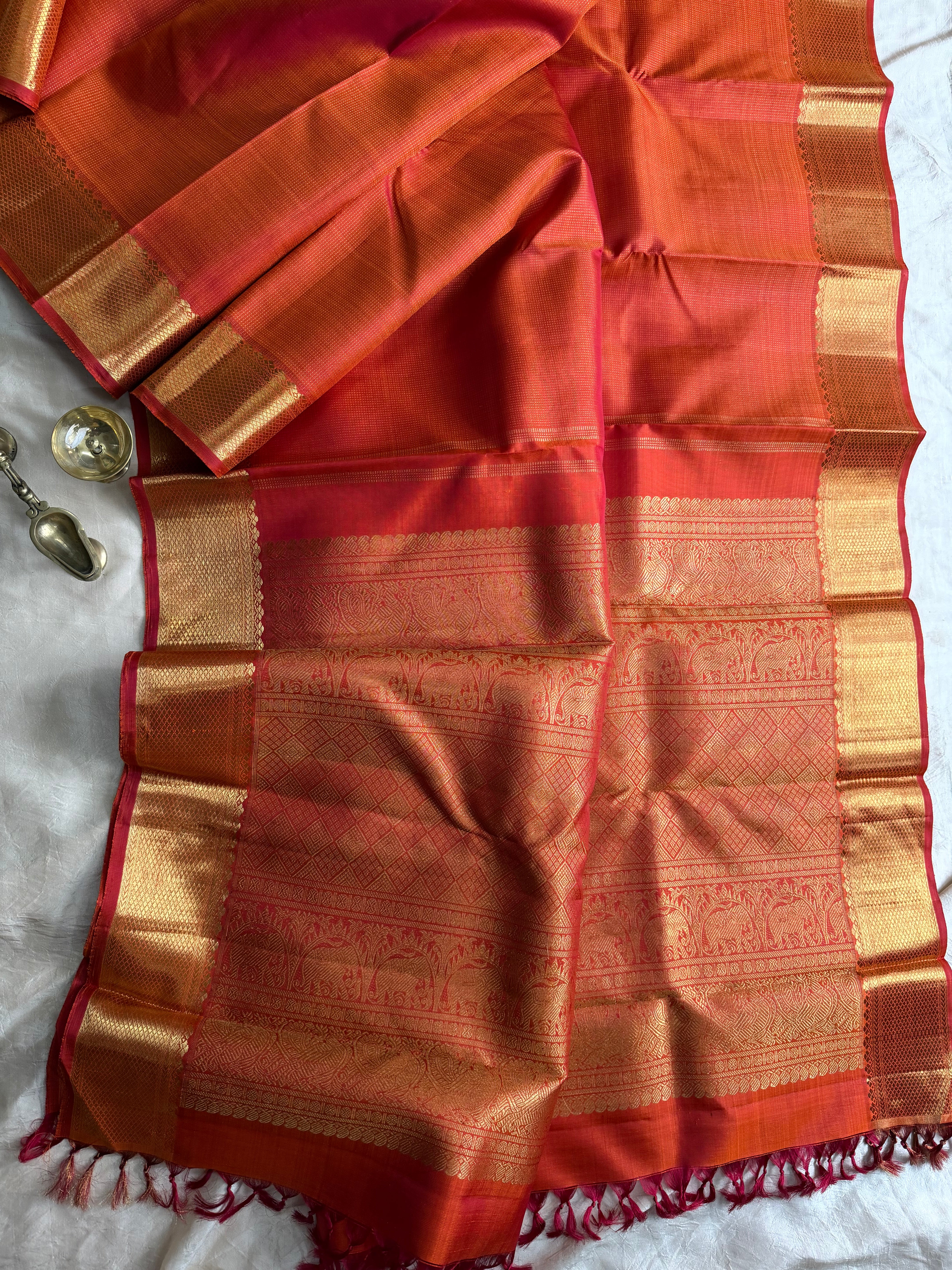 Rust orange Zari oosivanam/ Kanjipuram silk